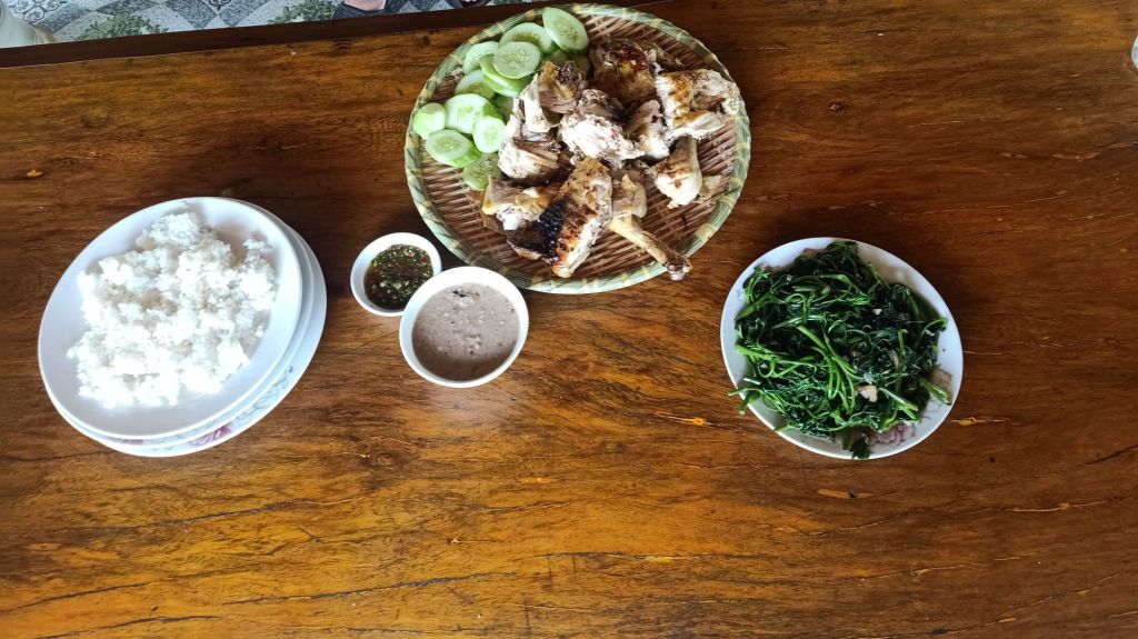 I got dropped off at The Villas, where I had left Bluey, and I cycled on to Highway 20 Homestay. Captain Caveman drove his motorbike up and we were given the end triple room in the traditional wooden house. It was really lovely and had a bathroom lay out which meant the toilet didn’t get soaking wet when taking a shower (always a bonus).