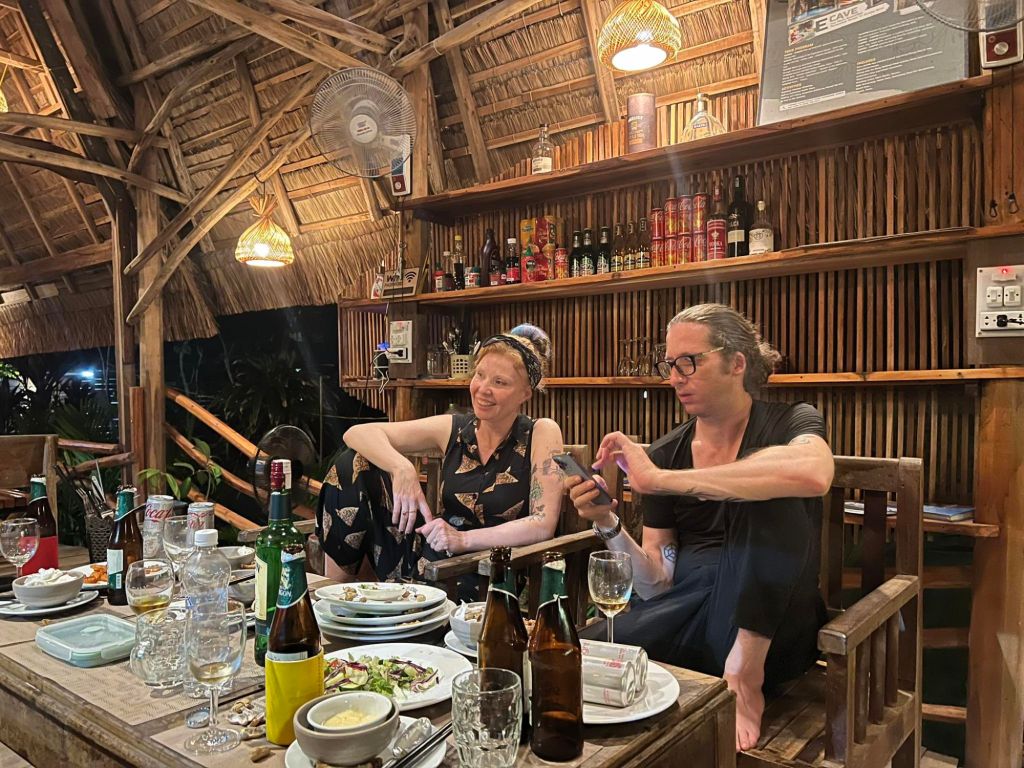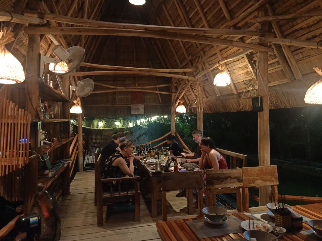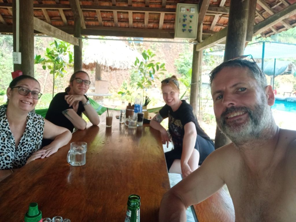 That evening we had been invited to Mountain House for Amanda and Greg’s farewell dinner with the owners, Ai and Hoai. Tatas and a customer from Captain Caveman’s Son Doong trip were also invited. Ai had prepared a massive feast and An, her brother, was giving out the beers. He was shocked that I didn’t want a beer but Captain Caveman had brought some Jameson’s whisky and I brought my boozy fruitcake. The meal was good and the Aussies were sad to be leaving, especially as they didn’t want to go back to their stressful life back in Australia.