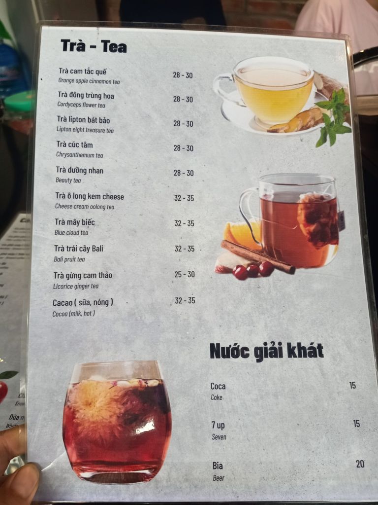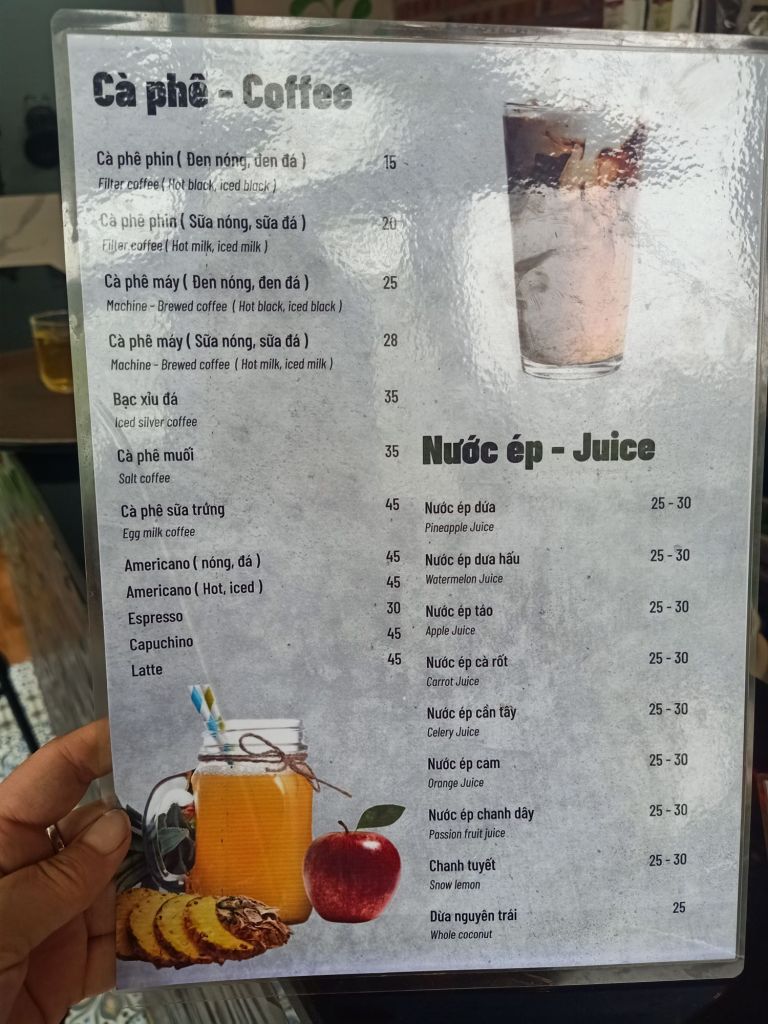 My next stop off was to The Villa’s to meet Captain Caveman, as we had 3 hours until our pick up car and Captain Caveman was peckish. He had lunch there and some drinks and, here’s what we had and the prices in Vietnamese Dong.