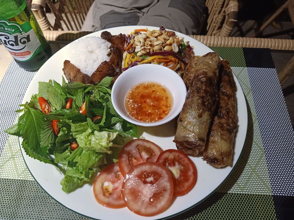 Eventually, the rain eased and we cycled back but only just with enough time to shower and change before dinner. Ngan had prepared spring rolls with salad, steamed rice and pork for dinner and the plate was massive. Captain Caveman had to help me out as I couldn’t fit all mine in. By 10.30pm I was in bed already suffering with a hangover and disappointed that I was now on 275 syns for the week!