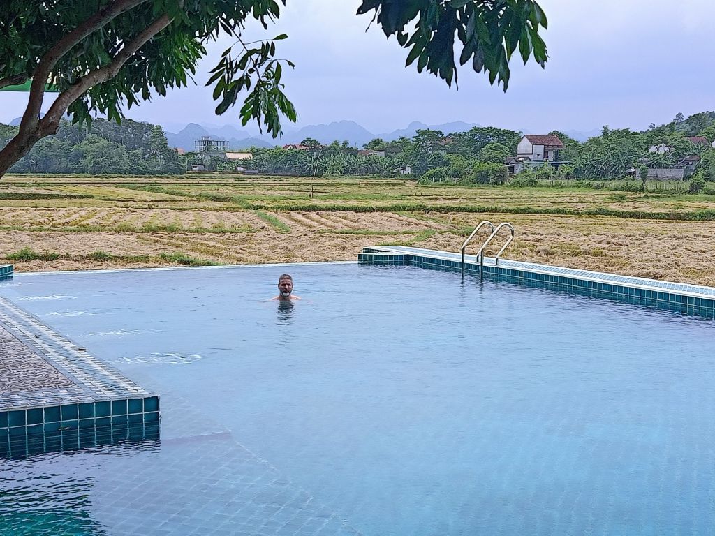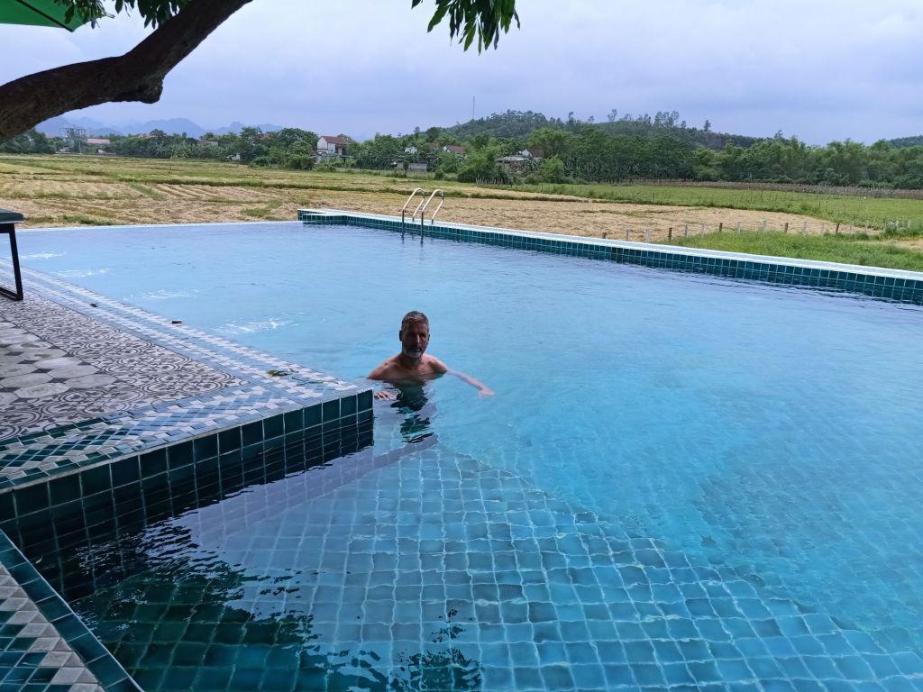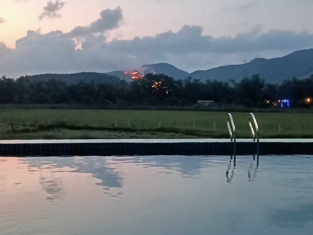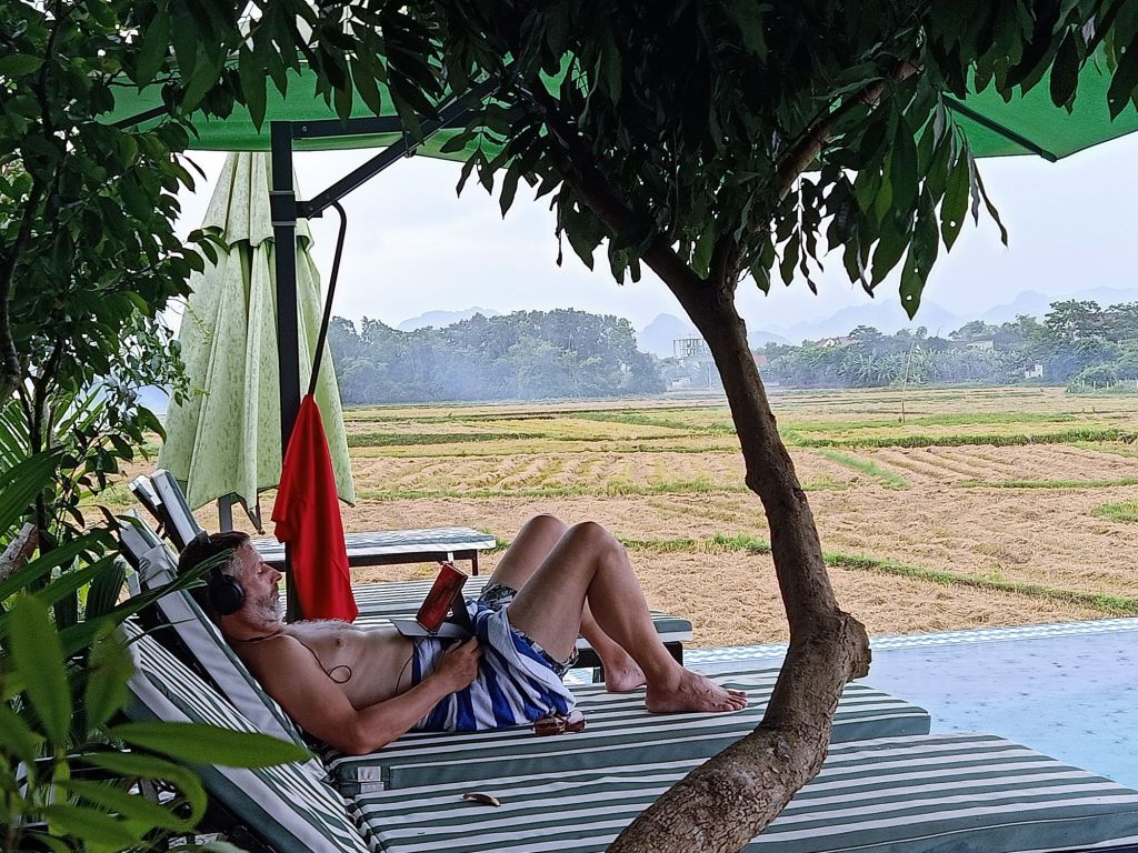 By 2.30pm René had made sure we had a cold beverage as we admired the view across the pool. We could also see farmers burning sections of field where the rice had been harvested. They do this to prepare it for the next harvest and it’s often done before rain is due so that the fires don’t get out of hand.