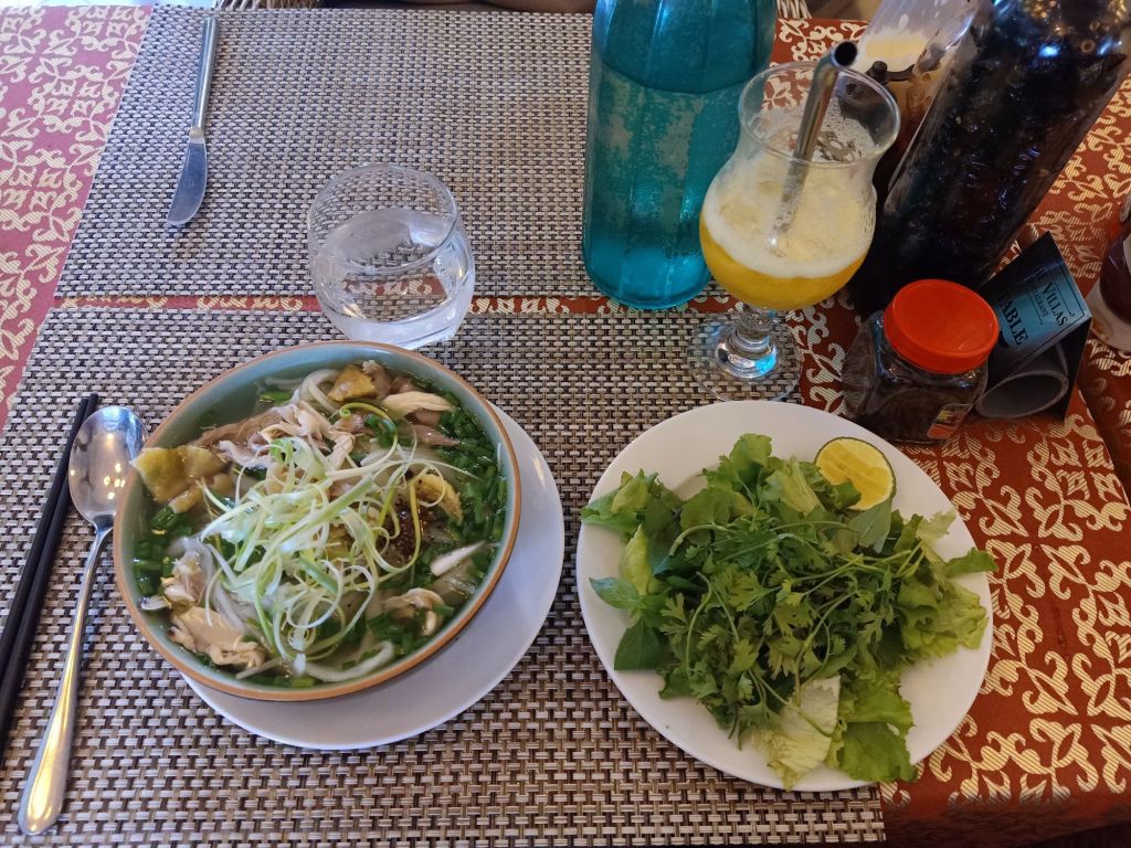 I went to The Villa’s for breakfast where I had a fresh passion fruit juice, chicken noodle soup with extra lettuce and a pot of Jasmine tea and paid 120,000VND (£3.71).