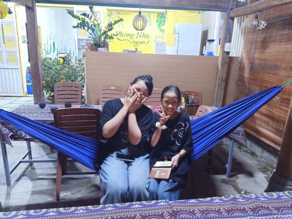 When I arrived back at Phong Nha Vegan around 6pm, Hoan was there but there was no sign of Chung. She eventually arrived with a pizza box from The Villa’s which she had collected for us to share for dinner. Hoan had decided to treat us as a thanks for helping her. There was a vegetarian pizza with a half cheese on and half not – genius, vegan pizza for Hoan and veggie for the rest of us. It was delicious and we also enjoyed some hot herbal tea and some fresh spring rolls for good measure. I left the vegan about 9pm and cycled back to Phong Nha Homestay for a much needed rest. I was looking forward to a chilled out day tomorrow too.
