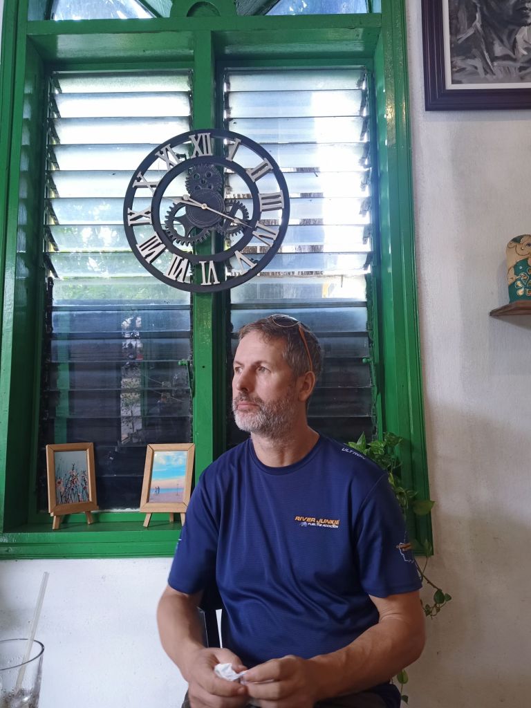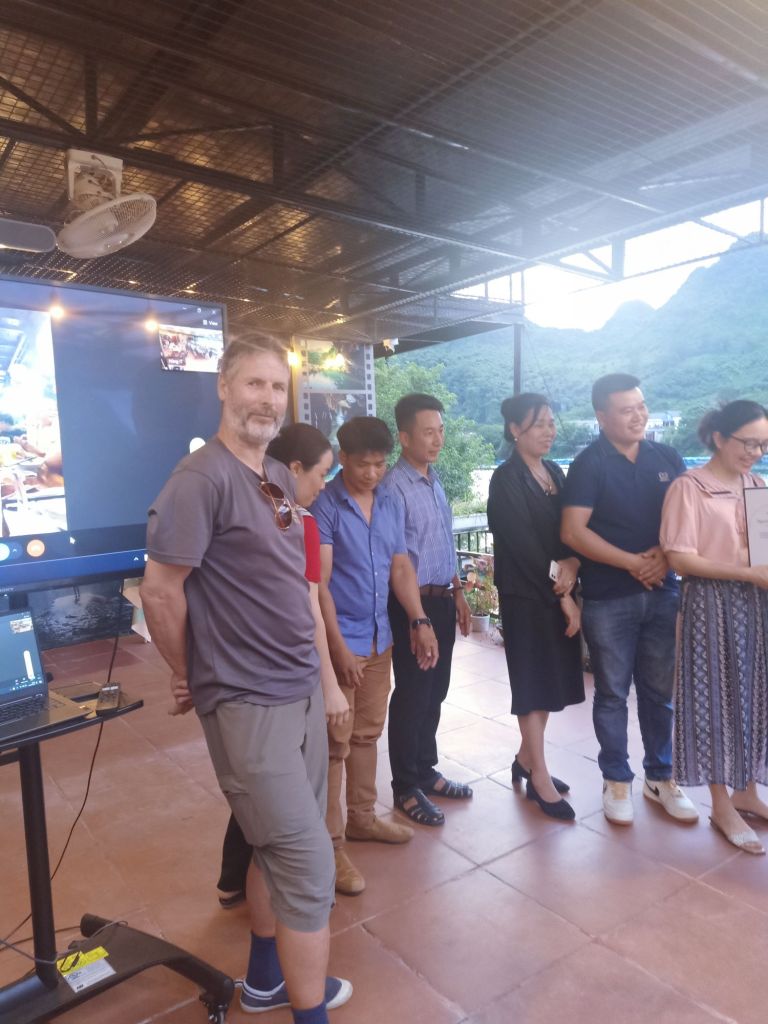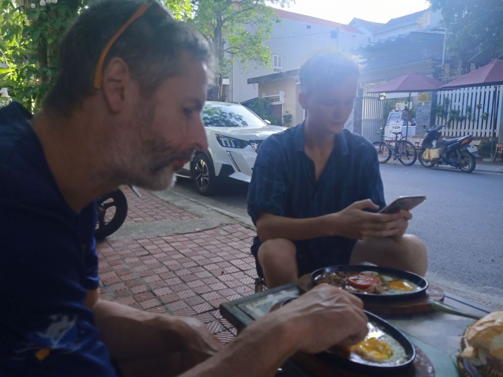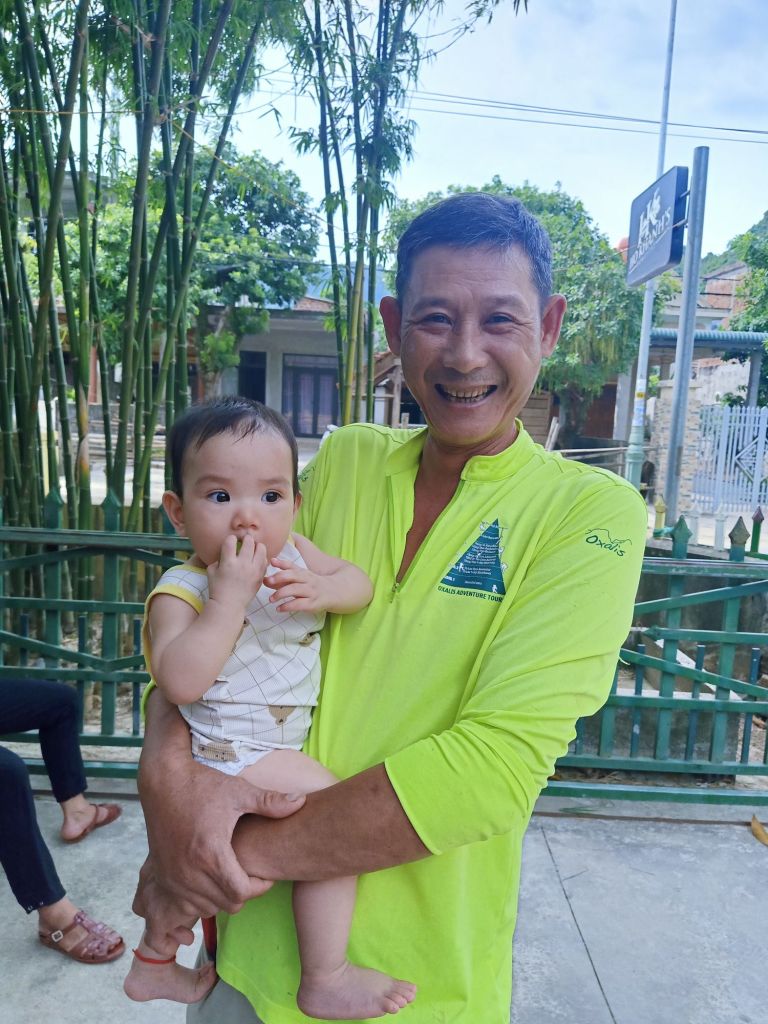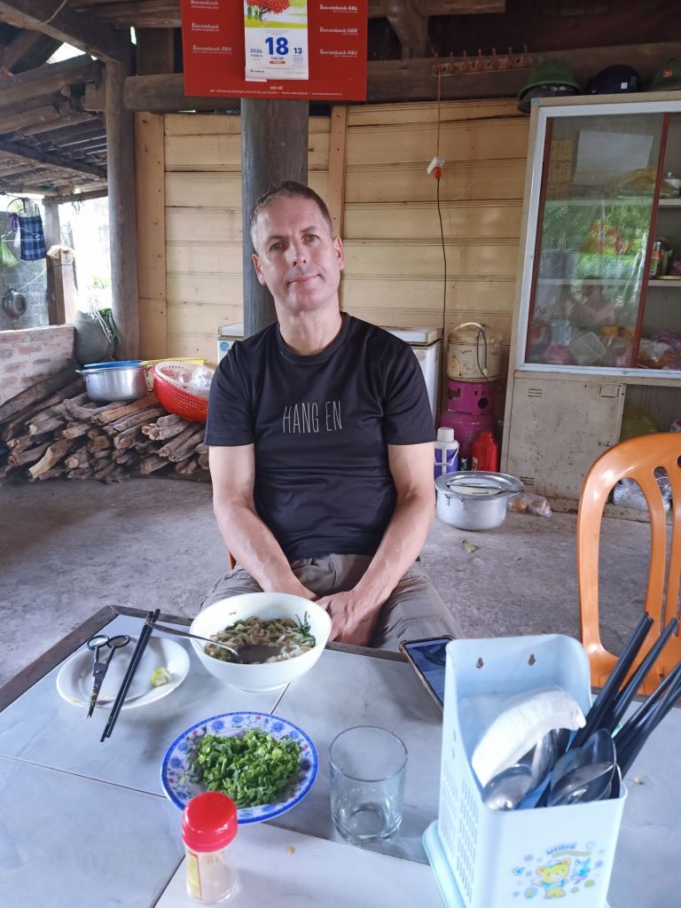Captain Caveman went to eat fish noodle soup at the cafe next door to Son River House Homestay on Thursday 13th June, before his next Son Doong trip. It’s far too spicy for me so I said I’d meet him at Ho Khanh’s, where his trip departs from, once they have collected the guests and team. When I got there I said hello to Nghia, Yen and Sexy Quang as well as some of the porters. One of the aunties was there looking after a young child and the guests turned up early. Usually they get off the bus to have photos taken with Ho Khanh, the man who found the cave initially, but today this didn’t happen and I was asked by the staff where Captain Caveman was. It is very unlike him to be late but he was cutting it fine. I called and messaged him but no answer and I wondered if he’d snuck off for a cheeky last game of Bridge. He turned up a couple of minutes later and was a bit peeved that I was chasing him. We said bye and I cycled down to The Villas for my breakfast.