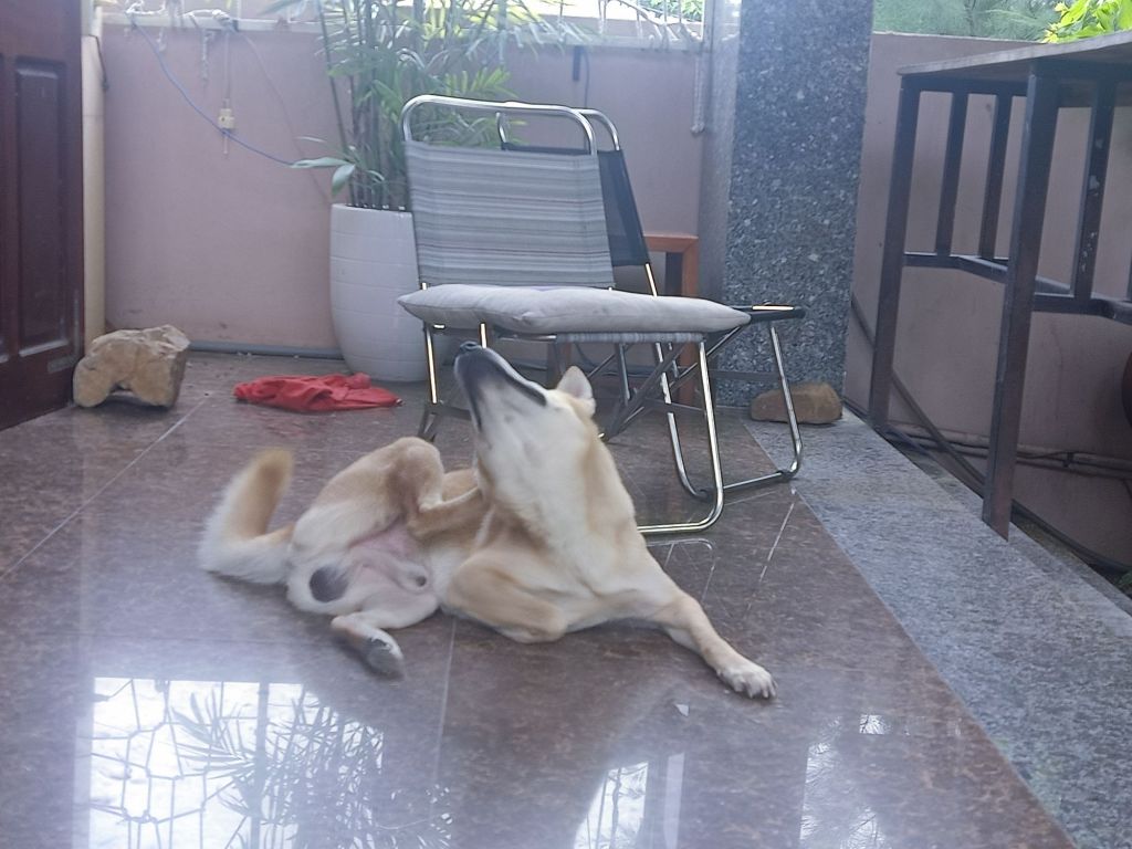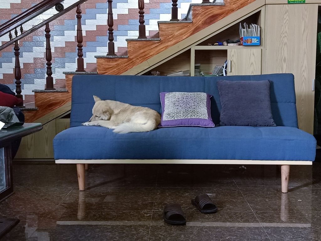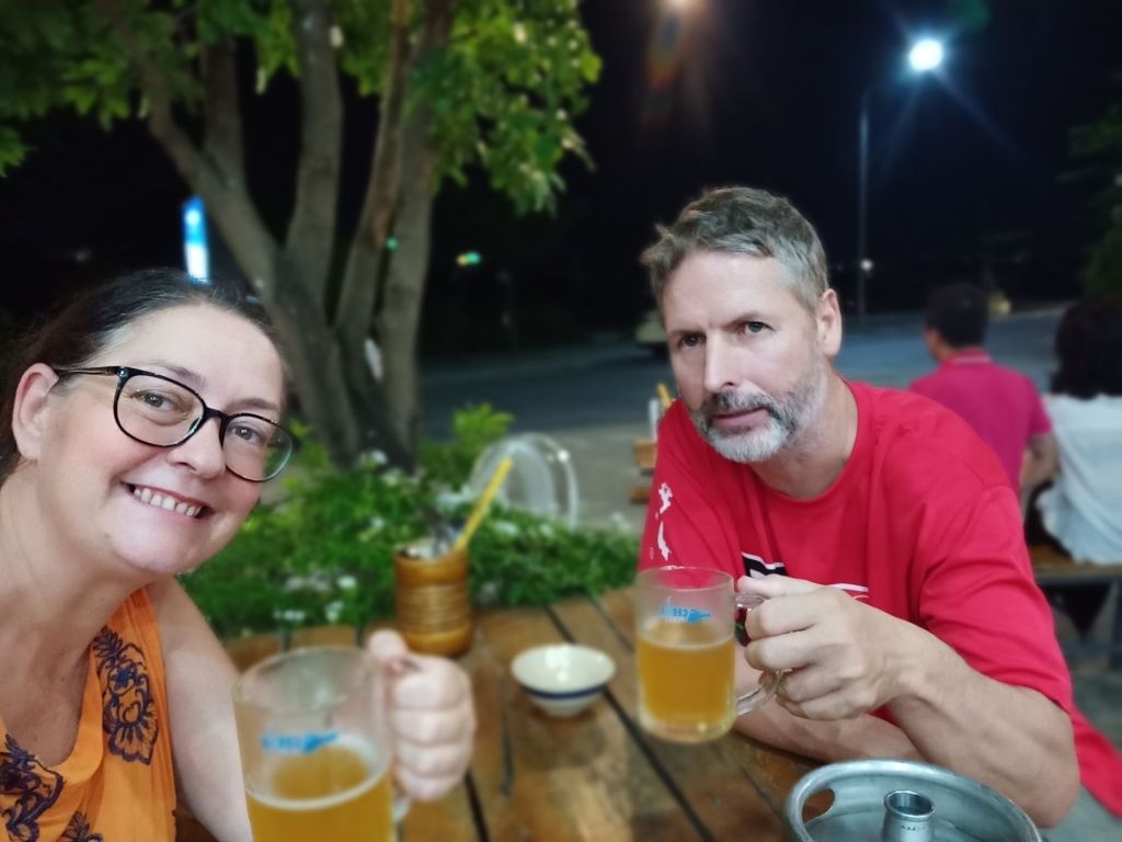Having had such a lovely day, we decided to finish off the evening with another meal out. We walked both dogs (separately) who were now very friendly and behaving nicely. Stu and the boys were due back tomorrow and were in Saigon tonight. Originally we had planned to leave on Monday morning, as Captain Caveman had his briefing that night. However, his tour had been swapped and he was no longer working tomorrow. We got a taxi to Khoi Bistro and had a really lovely meal with craft beer. Captain Caveman had a seafood omelette which, quite frankly, made my stomach turn but he enjoyed it and I had a pork dish as my initial choice of duck was sold out. It was busy with it being a weekend and there was a massive private party but the owner still found time to chat to us. Our bill came to 455,000VND (£13.80) which was very good value considering that included mussels and a 2 litre keg of beer. We really enjoyed it and to top off a fantastic day, when we got back home, Terror jumped up on to the sofa for strokes and kisses. Rodger took himself off to bed in our (Max’s) room and slept next to the fan at the bottom of our bed.