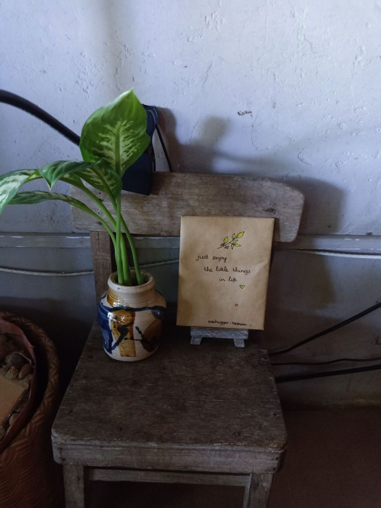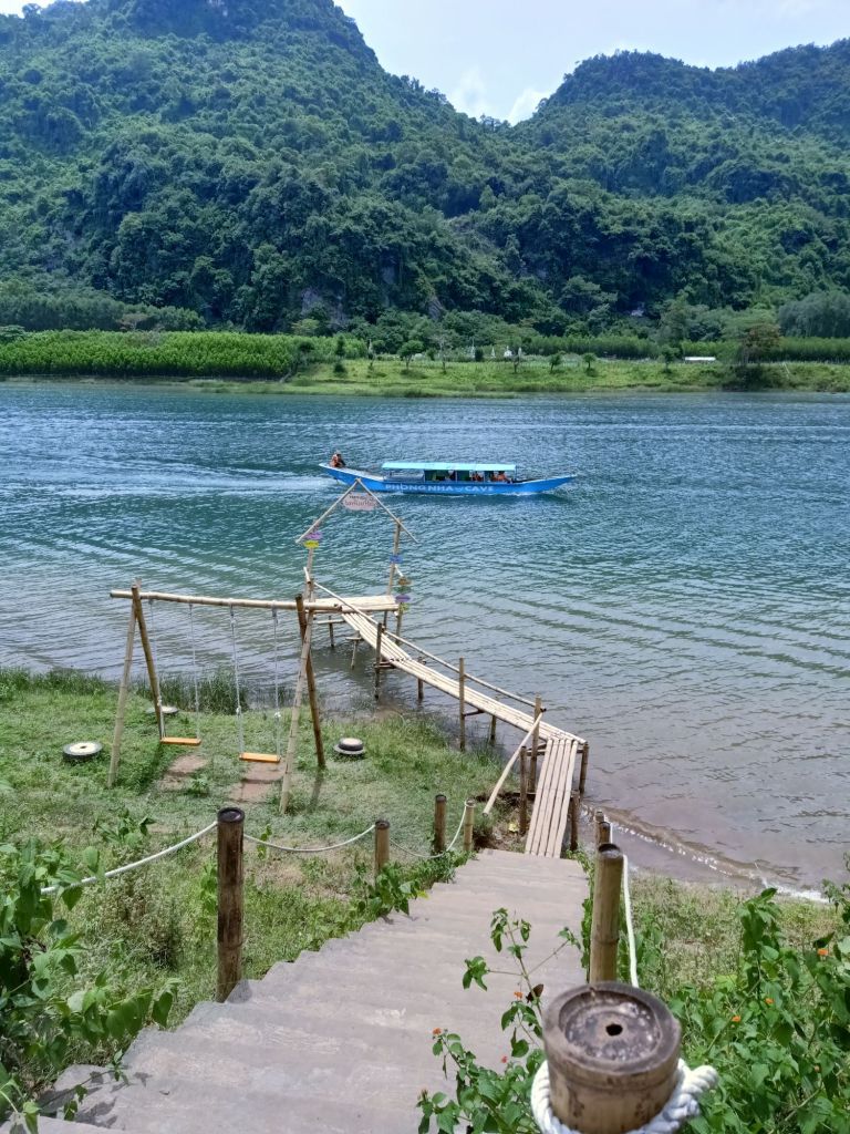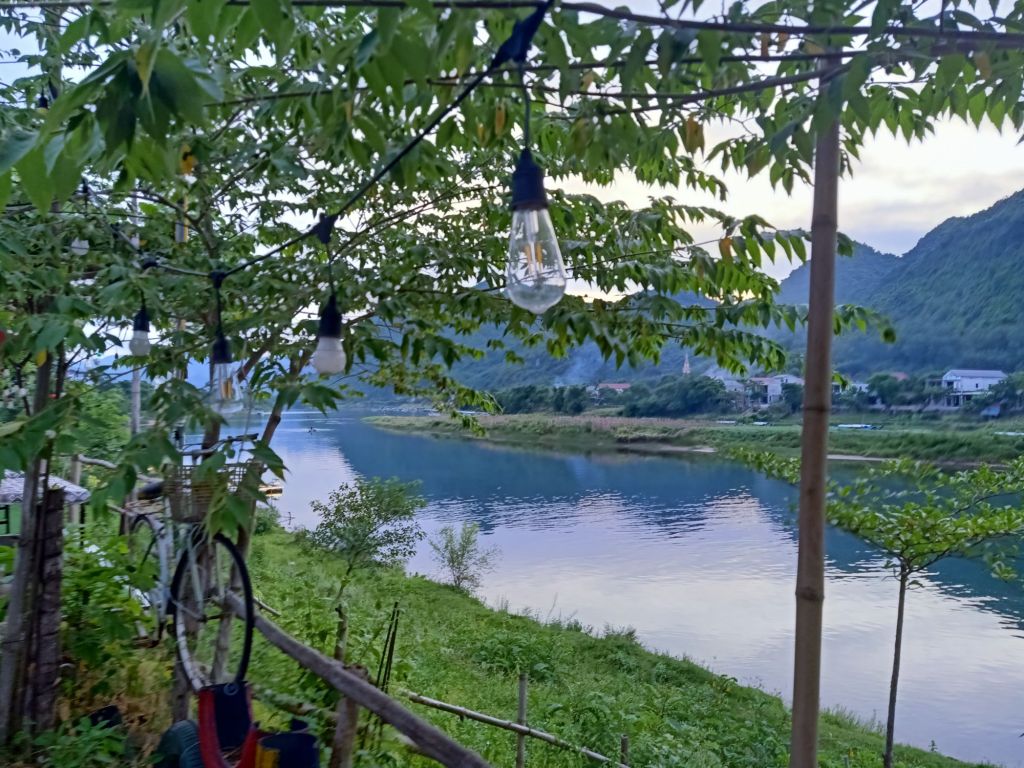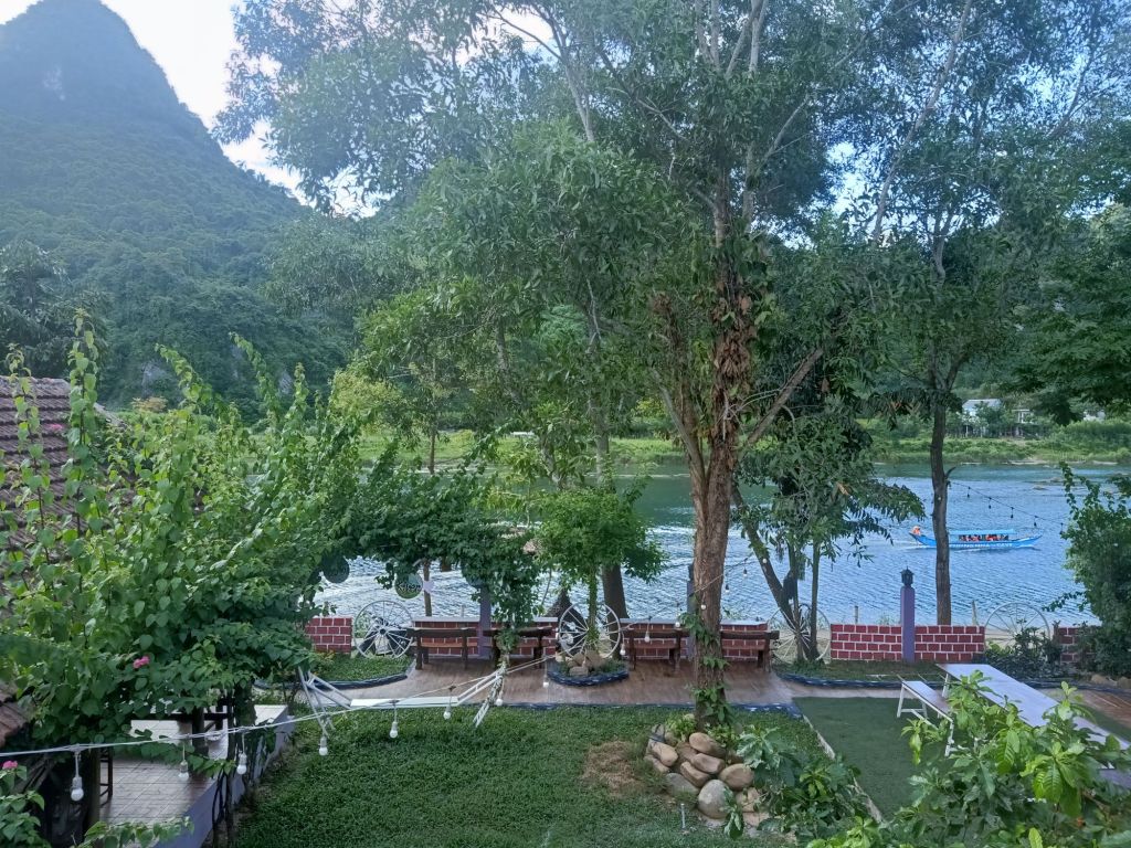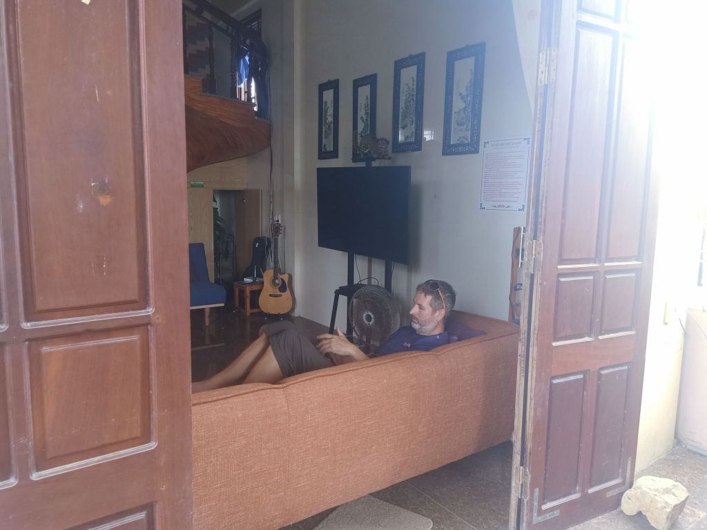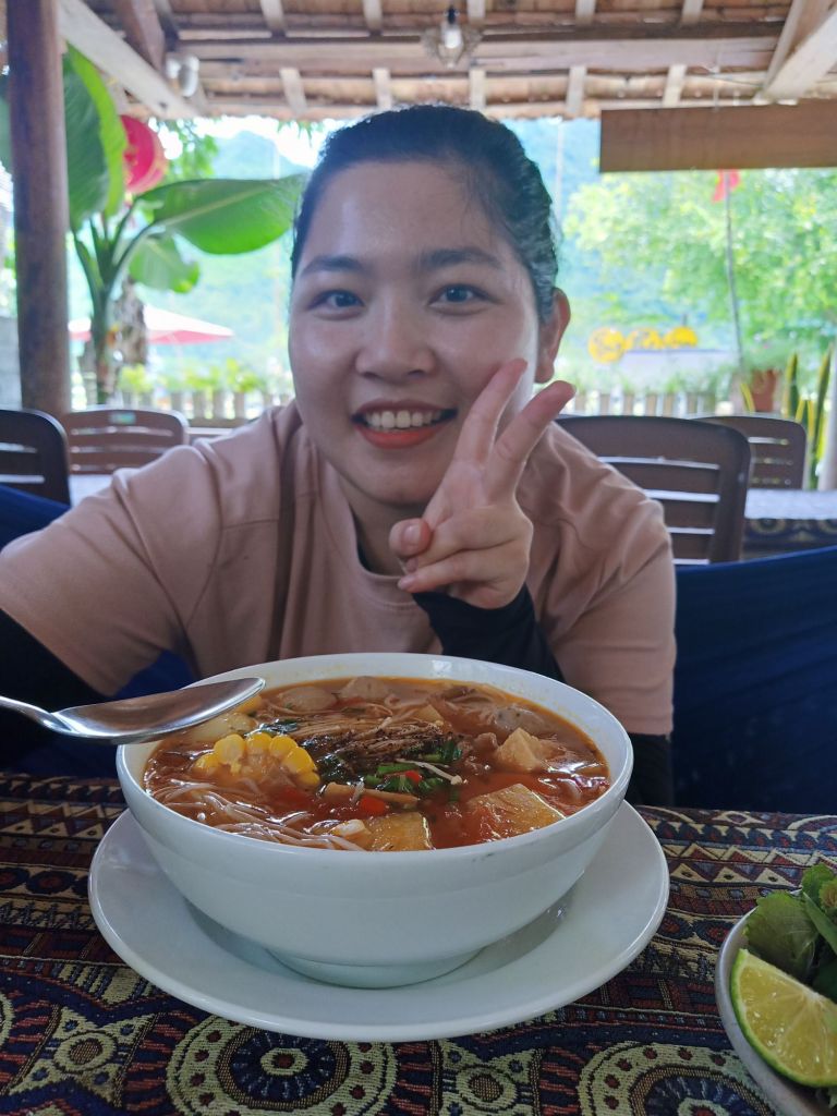 At Phong Nha Vegan, Chung had spicy noodle soup, I had Banh Canh and we shared some fresh spring rolls. Ha made me a mango and coconut smoothie which was so good. I would miss this a lot when I left. I decided to work in the AC of my room at the beautiful and peaceful Son River House Homestay for today.