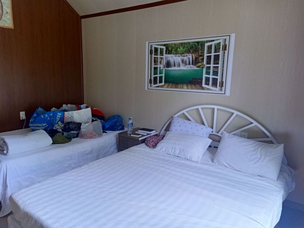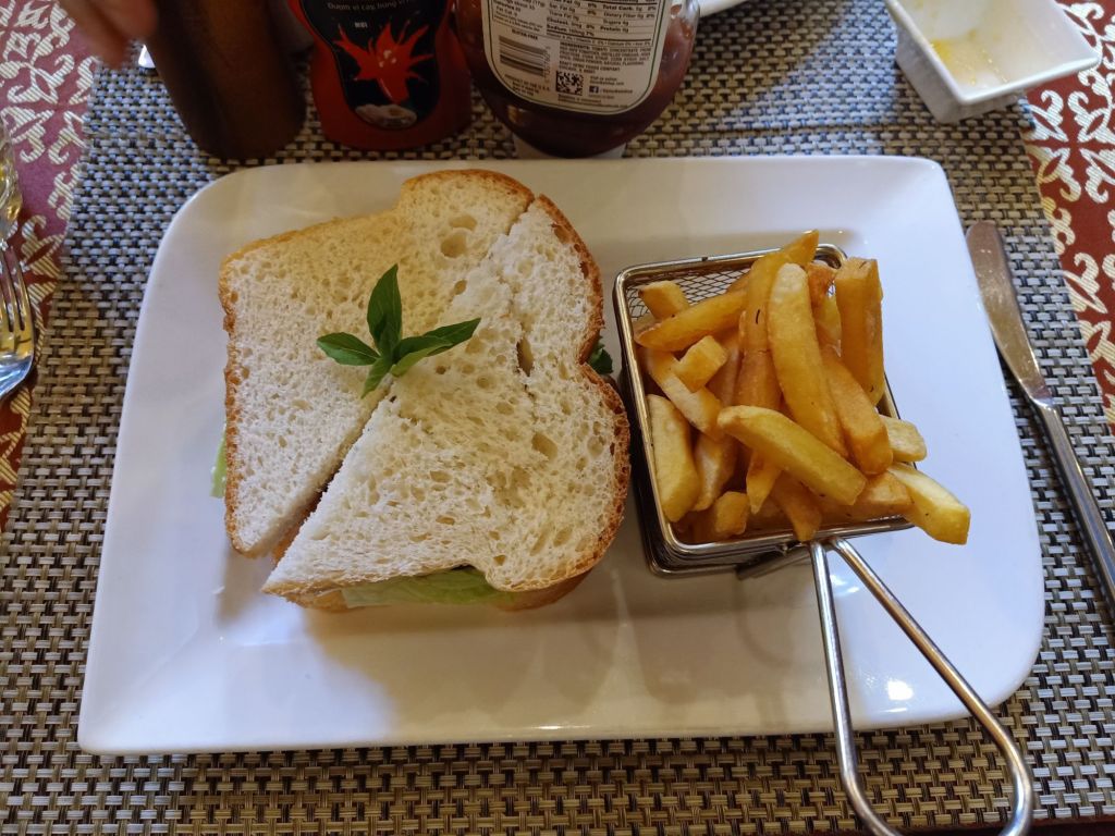 For dinner we decided to cycle to Ganesh for Indian food. We had a bottle of red wine, lamb samosas, onion bhajis, chicken tikka starter, garlic naan, saffron rice, chicken tikka masala and a daal for 798,300VND (£24.22). The food was fantastic but we did get a message from Chung to check if we were ok. The owner of the homestay was worried it was after 10pm and we weren’t back yet. We cycled back and put leftover Indian food in the fridge along with fruit and a bottle of wine as we didn’t have a room with a fridge. Our room was clean, tidy and comfortable with lovely views and good AC.