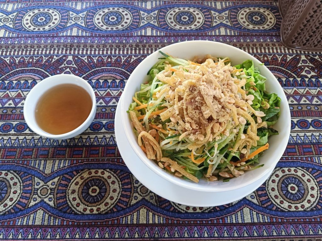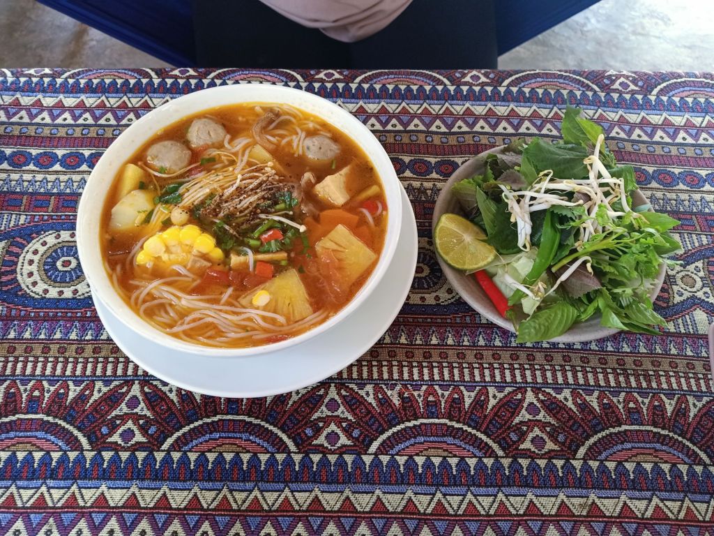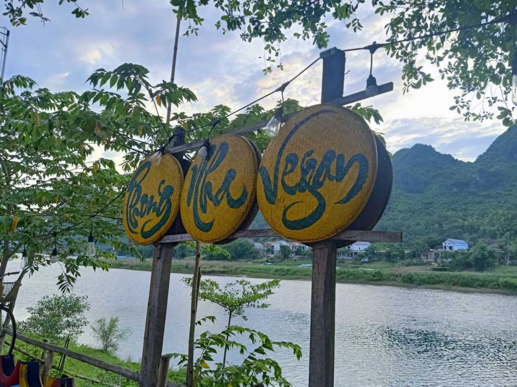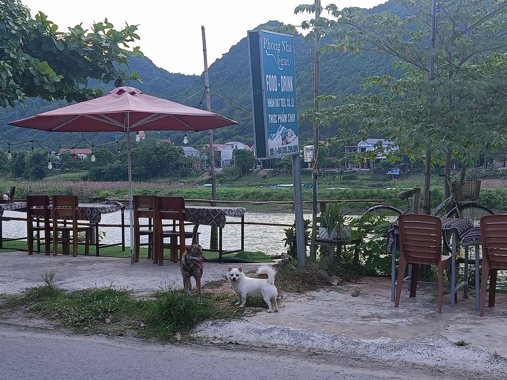 It was an early start on Tuesday 11th June as we joined Stu and Max for a final Mr Bull’s Bo Ne breakfast. It would probably be my last in Vietnam for this year and that was sad. I was going to miss Dong Hoi, our friends there and the cute dogs who were now our friends. Our lift to Phong Nha with Oxalis and Dung arrived 30 minutes early and we said goodbye in a bit of a hurry. Captain Caveman had booked me a train from Dong Hoi to Danang for in 10 days time so I hoped I’d get to spend one more night in Dong Hoi before I left Vietnam. We picked up 4 customers from the airport, Captain Caveman had a coffee for 30,000VND (91p) and then we got back in the minibus for the drive back home. Less than an hour later, after dropping the guests at Son Doong Bungalow, we were dropped off at our new and final accommodation for my last Phong Nha stay. We had decided to try out Son River House Homestay, which is near to the Glass House and Ho Khanh’s, right on the river. It is being managed by one of my best friends, Chung, so I was also looking forward to spending time with her. Check-in wasn’t until 2pm so we had already agreed to have lunch at Phong Nha Vegan with Dung as I had really missed eating there. We dumped our bags at reception, Captain Caveman got the motorbike from the Glass House and we rode to the Vegan.