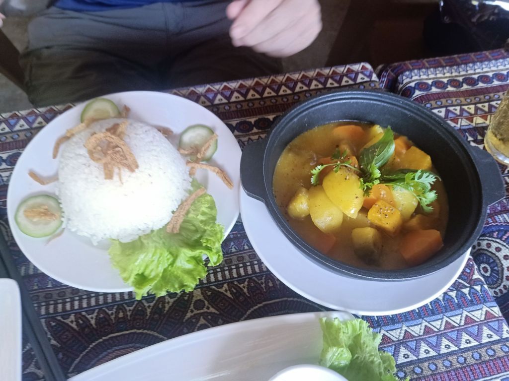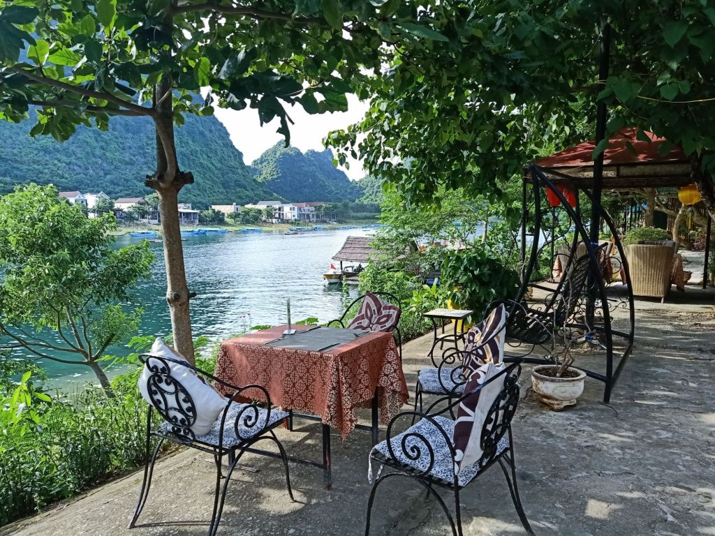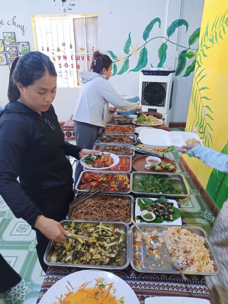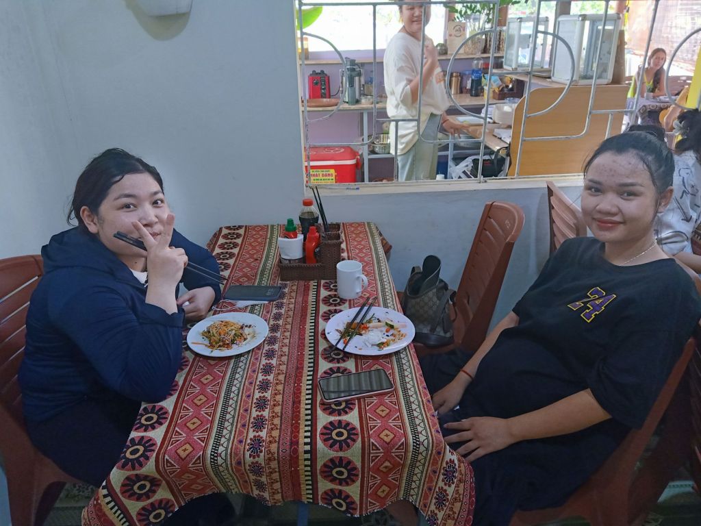 It was an early start on Tuesday 11th June as we joined Stu and Max for a final Mr Bull’s Bo Ne breakfast. It would probably be my last in Vietnam for this year and that was sad. I was going to miss Dong Hoi, our friends there and the cute dogs who were now our friends. Our lift to Phong Nha with Oxalis and Dung arrived 30 minutes early and we said goodbye in a bit of a hurry. Captain Caveman had booked me a train from Dong Hoi to Danang for in 10 days time so I hoped I’d get to spend one more night in Dong Hoi before I left Vietnam. We picked up 4 customers from the airport, Captain Caveman had a coffee for 30,000VND (91p) and then we got back in the minibus for the drive back home. Less than an hour later, after dropping the guests at Son Doong Bungalow, we were dropped off at our new and final accommodation for my last Phong Nha stay. We had decided to try out Son River House Homestay, which is near to the Glass House and Ho Khanh’s, right on the river. It is being managed by one of my best friends, Chung, so I was also looking forward to spending time with her. Check-in wasn’t until 2pm so we had already agreed to have lunch at Phong Nha Vegan with Dung as I had really missed eating there. We dumped our bags at reception, Captain Caveman got the motorbike from the Glass House and we rode to the Vegan.