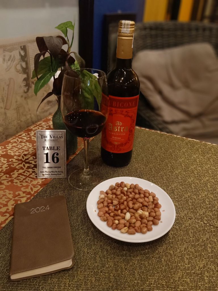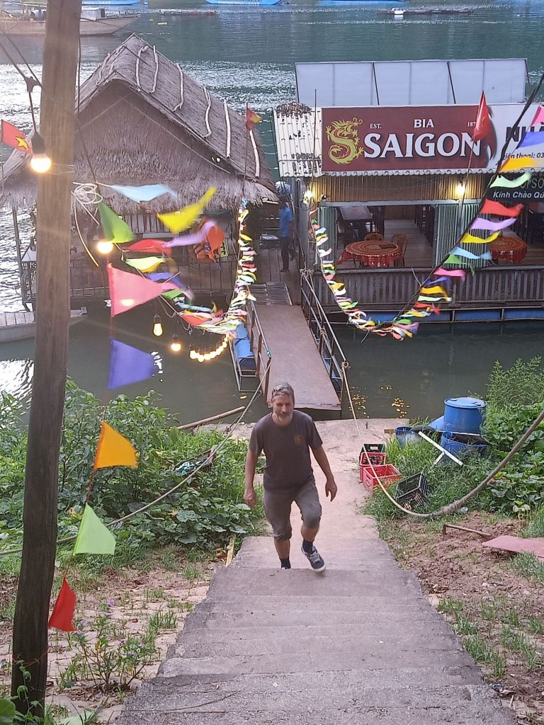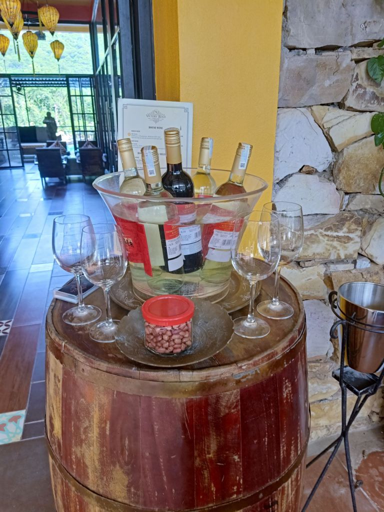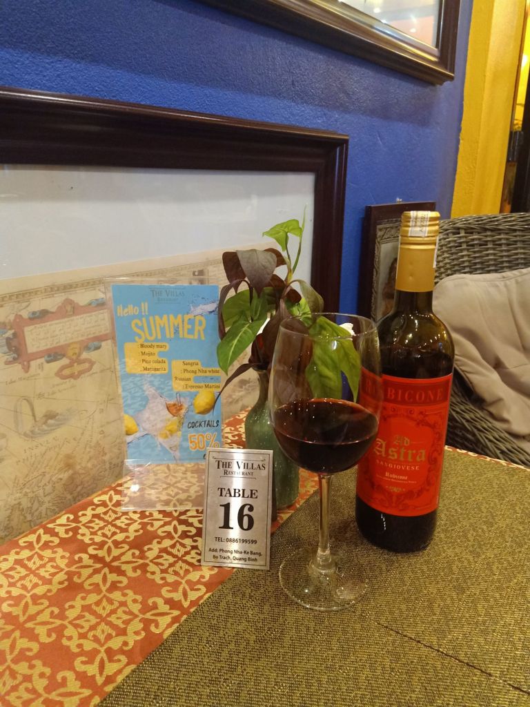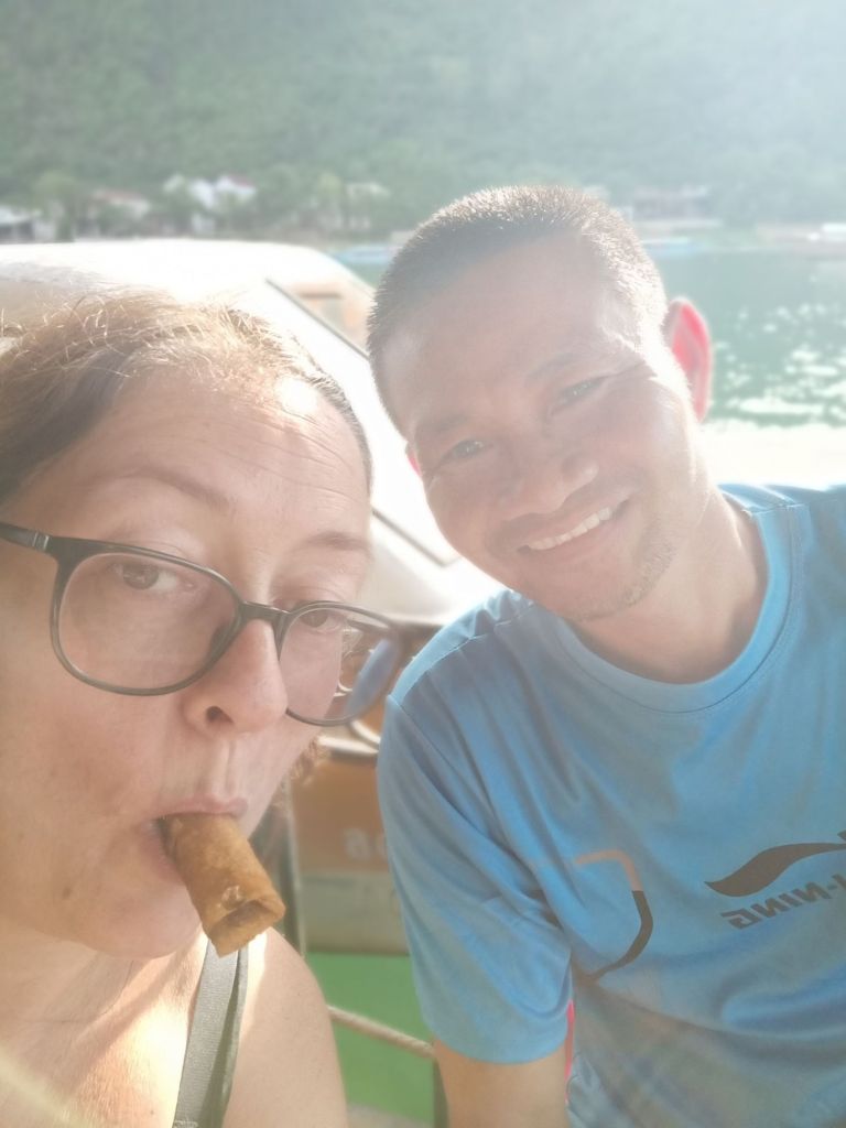 Captain Caveman went to his briefing for 6pm so I went to Phong Nha Vegan. Little May, the dog, was there with Lu from next door and came to greet me straight away. He wondered where I had been and brought me a dried leaf as a gift. I got on the scales to find I had put on 1kg while in Dong Hoi, which was less than I was expecting. For dinner I had fresh spring rolls and mushroom fried rice which was delicious. The Vegan girls ate Banh Trang Tron (which is not vegan) and it was quiet so I left about 8pm and went back to Son River House Homestay for wine with Chung and beers with Captain Caveman and Uy. We had some leftover Indian but no arguments. This was Captain Caveman’s last day off while I was here as he had 2 tours back to back and would be in the cave when I left Phong Nha.