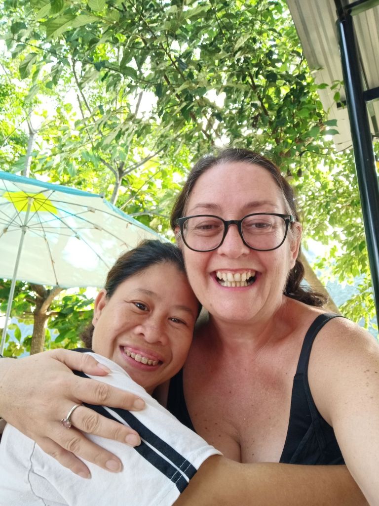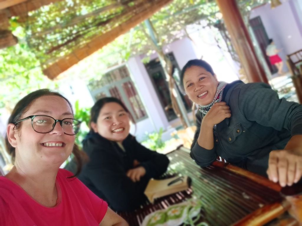 Our next stop was the Phong Nha Vegan which was amazing for my last buffet and farewell to everyone. I sat with Kim and her daughter while trying to get a blast of the cooler which was set to 39°C. The food was so good and plentiful but it was so hot I could barely take the heat. Kim recommended I try different dishes which was really nice and we even arranged for me to visit her in Saigon in a few days time. Back at the homestay, I said my goodbyes and Hoan arrived to give me going away gifts of a knitted mobile phone case, some sweets and a big bag of mangosteen. In the end, Chung moved my taxi for Dong Hoi to pick me up at 1.45pm as we were running late, and she promised to take Bluey over to the Glass House tomorrow. It was a sad, sweaty goodbye as I got in to the car and drove through Phong Nha with tears in my eyes.