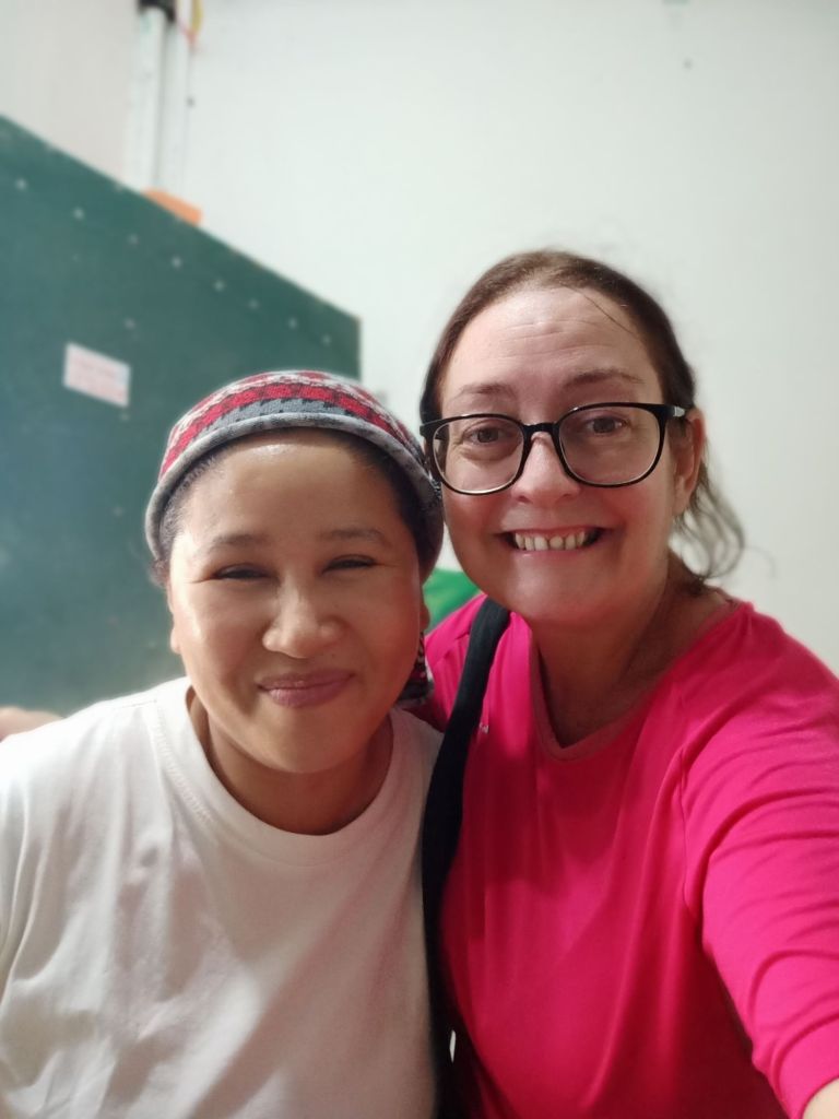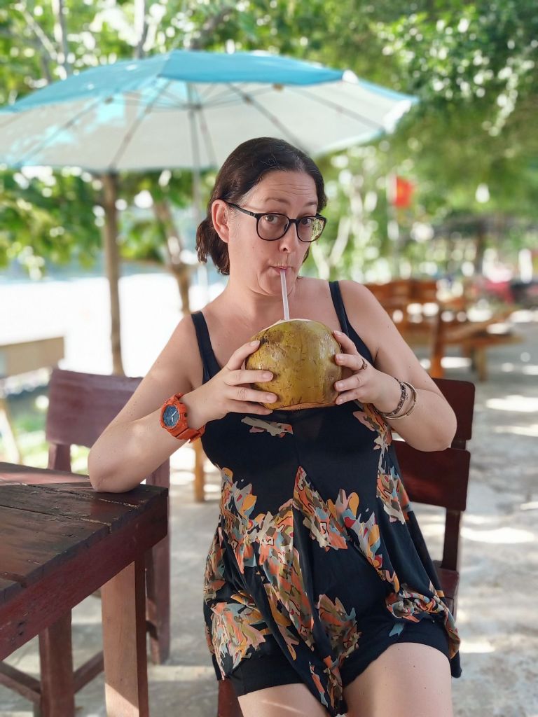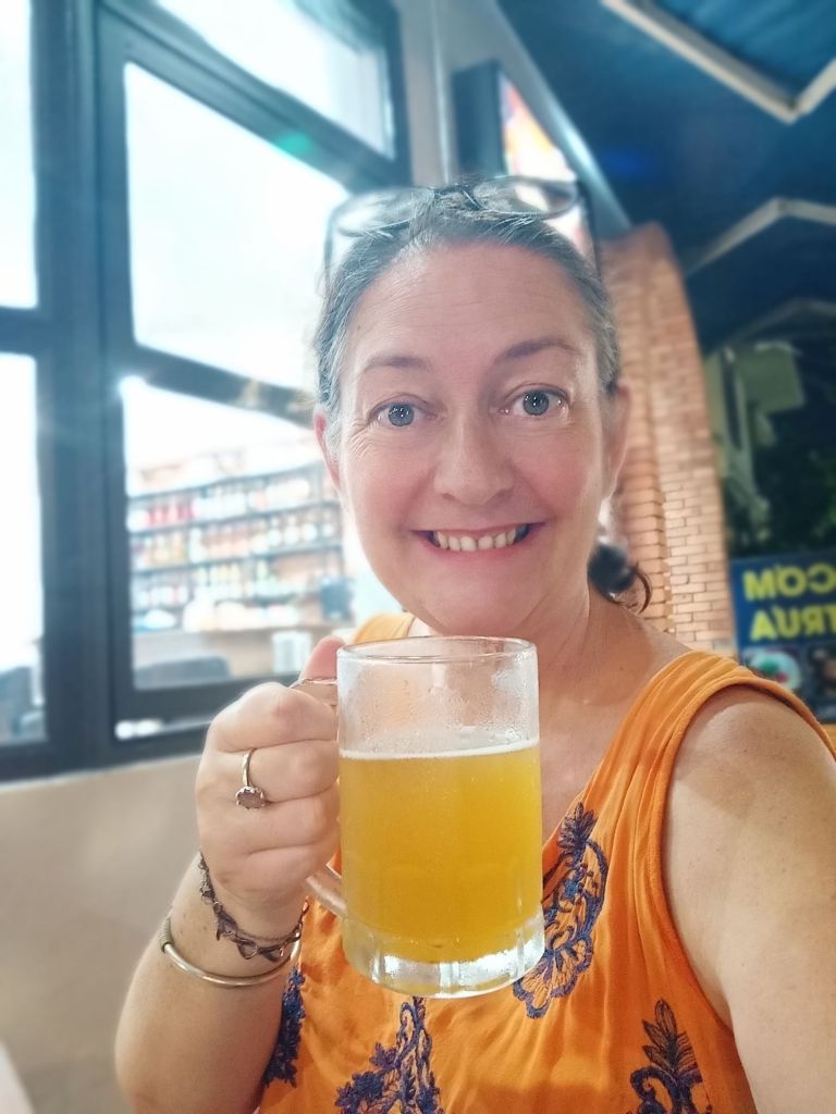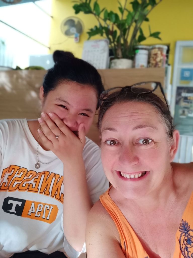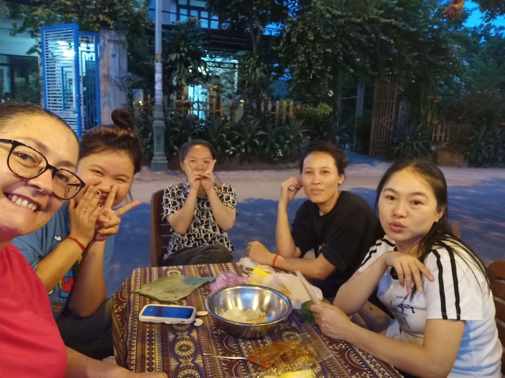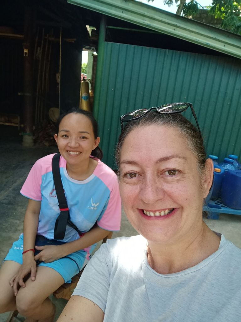 Wednesday 19th June was not only weigh day, but it was my last full day and night in Phong Nha. I had arrived in Vietnam 15 weeks ago and would be leaving after 4 months in the country, longer than I’d expected. I was up early so that I could be ready for an appointment before work and I did my measurements. My bust was the same as the previous week, I’d lost 1cm from my waist but had put 1cm on my hips. I made a note to get weighed later when I went to the vegan. I cycled down to see ‘Onion’ the hairdresser as Captain Caveman had booked me in for a cut and dye at 8.30am. She is actually called Nghien but it’s kind of pronounced like onion and that’s what a couple of the older cavers had called her. When I arrived, it was already getting hot, there was no sign of her. I bumped in to a young girl who was wearing sunglasses, a mask and a hooded long sleeved coat. This ninja-looking female spoke a little English and told me her mom was in town having coffee with friends. I’d also messaged her to say I was there but the reply came to the daughter to return at midday. There was no way I could take the midday heat while being in the hairdresser’s building so I asked for the same time tomorrow. The daughter didn’t understand so I just left and said I would message. Tomorrow I was leaving to go to Dong Hoi before lunch so that might be a bit of a squeeze, anyway. Disappointed, I cycled down towards The Villas and as I arrived Onion turned up saying I could cycle back to the hairdresser’s. By this time I’d already rescheduled my work and confirmed lunch with a friend. We agreed on tomorrow at 8.30am so I would just have to get up early. I worked from The Villas for the rest of the morning and drank a lot of water as the AC wasn’t on yet. At lunch time I logged off as I had invited Khanh Linh to join me for a catch up. We shared a Momma D’s pizza and a garden salad which was very filling. A member of staff popped the AC on and looked confused as to why it wasn’t already on. I had to try the Pina Colada as it was 50% off those on Wednesdays. It was very nice and I had a lovely time with Khanh Linh, who bought me a gift of a pair of jelly shoes. When I tried them on I was surprised to find they fit very well, too. Khanh Linh, who works at Jungle Boss, had to get back to work and it was very hot and humid outside. I also went back to work but finished before 5pm so that I could hurry back to Son River House Homestay for a shower. The plan was to be back at The Villas to meet anyone who was coming to help me celebrate my last night.