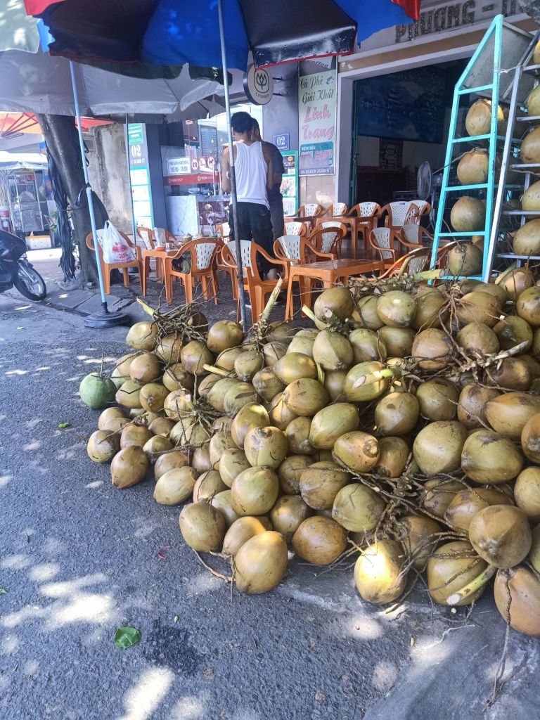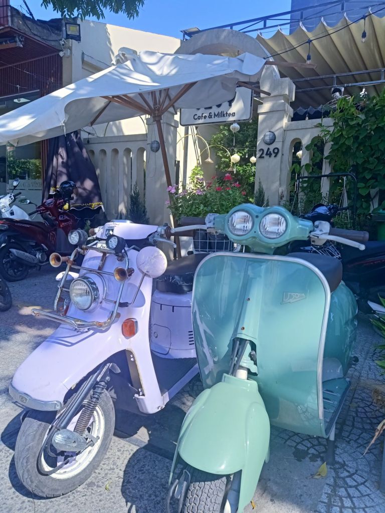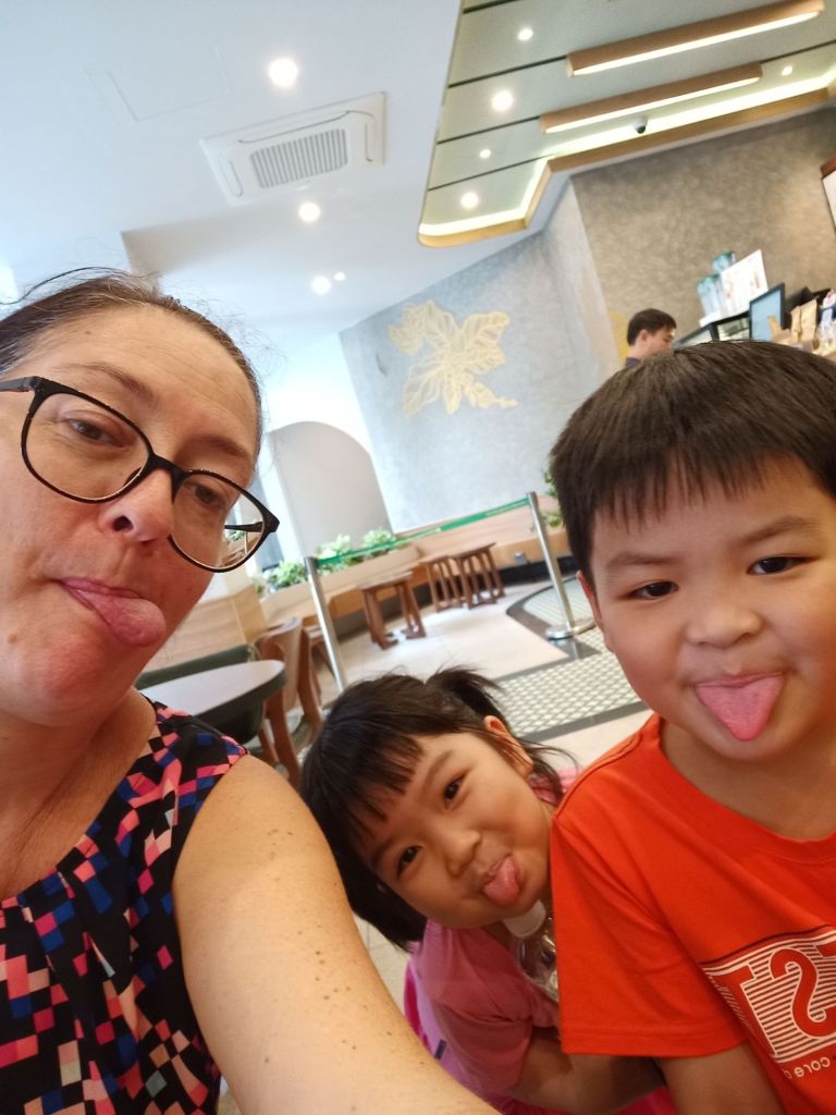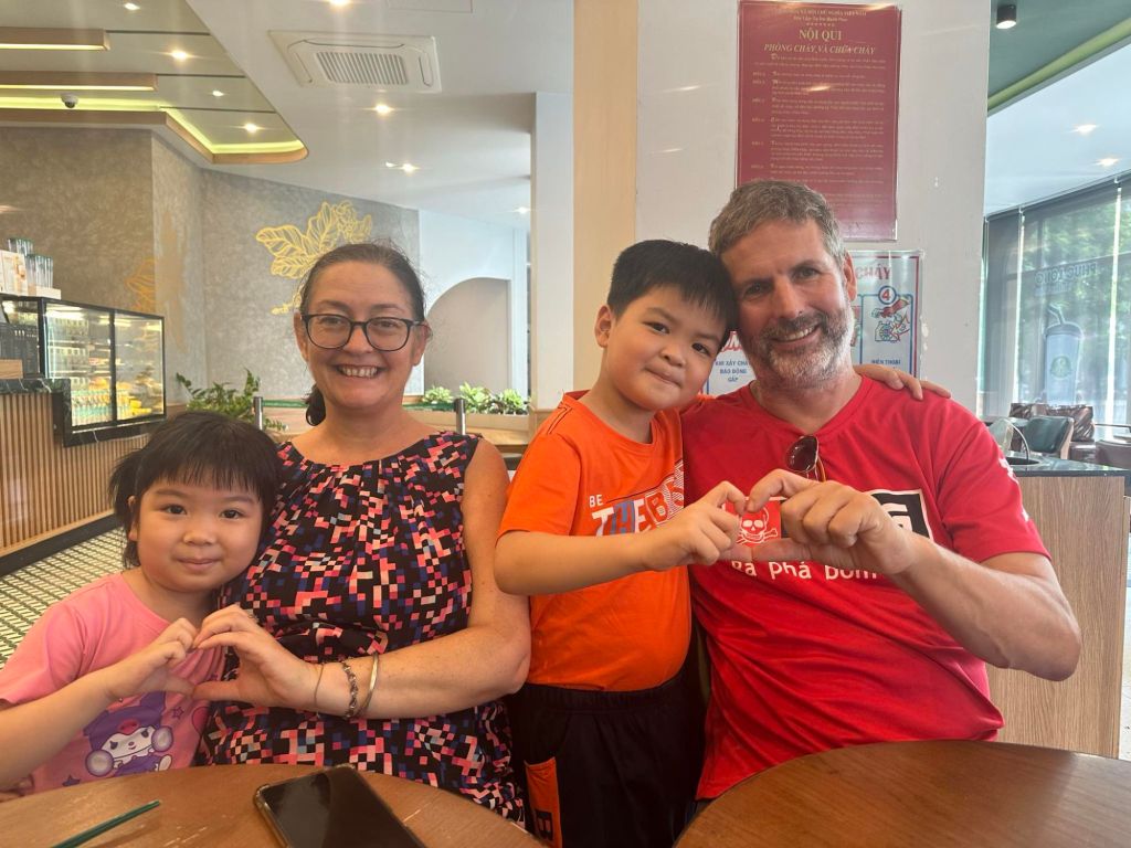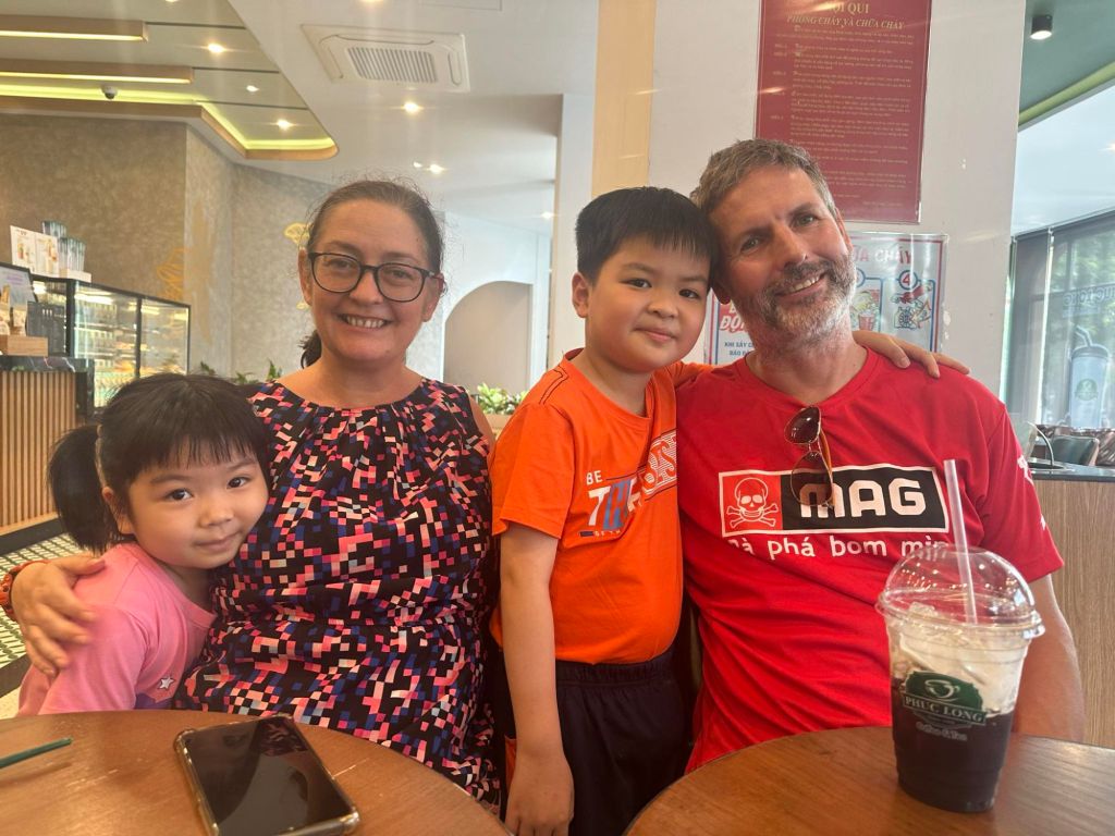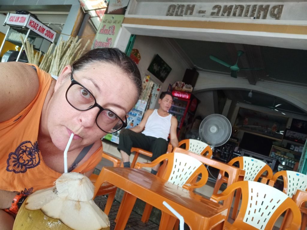 I was not expecting Thuy to pay the entire bill, which was so lovely of her, but she also wanted to treat us some more. We stopped by the market so that she could buy some fruit, including our favourite mangosteens. Our next stop was the Phuc Long coffee shop where we were treated to a coffee for Captain Caveman and a peach tea for me. Tin and Su were super comfortable around us by this time and were chatting really well to me. I’m not usually a child person but I loved these two and they were so cute as well as very clever. On the ride back to Stu’s house we joked about the stinky squid drying. When we stopped to get out they all smelled the stench and didn’t get out of the car so I did hugs from inside. It had been an amazing day and I felt very lucky.