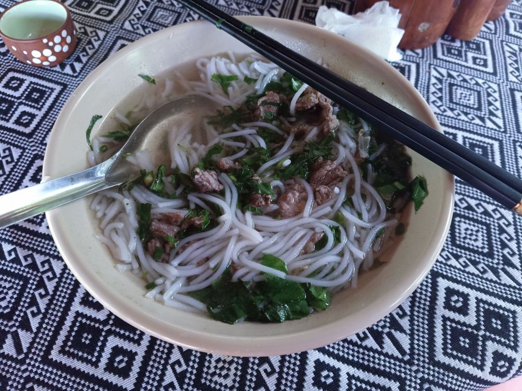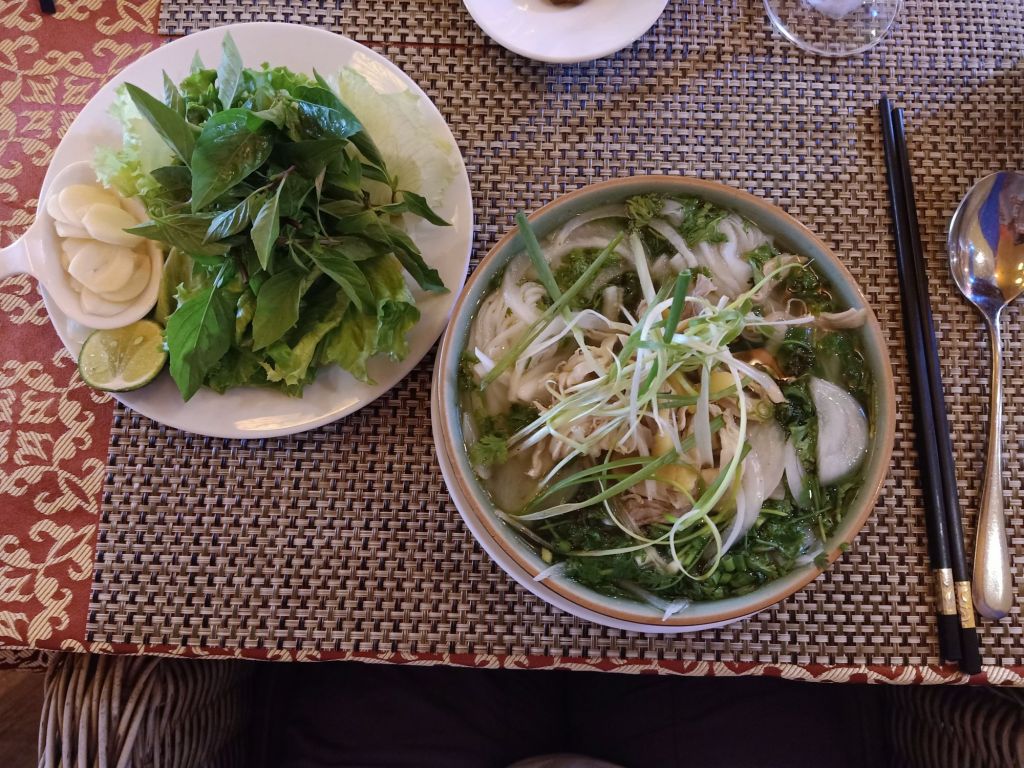 I was desperately craving a vegan pho so I ordered that along with fried spring rolls and mushroom La Lot skewers to share. Dung had fresh spring rolls and Captain Caveman had the curry with steamed rice. It was all lovely and I enjoyed my iced kumquat tea to wash it down with. It was good to see Ha, Cuu, Hanh and Yen again after being away for so long. We checked in to our upstairs room at Son River House Homestay after lunch and unpacked our stuff.