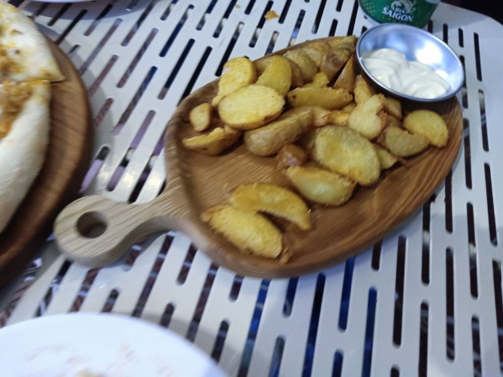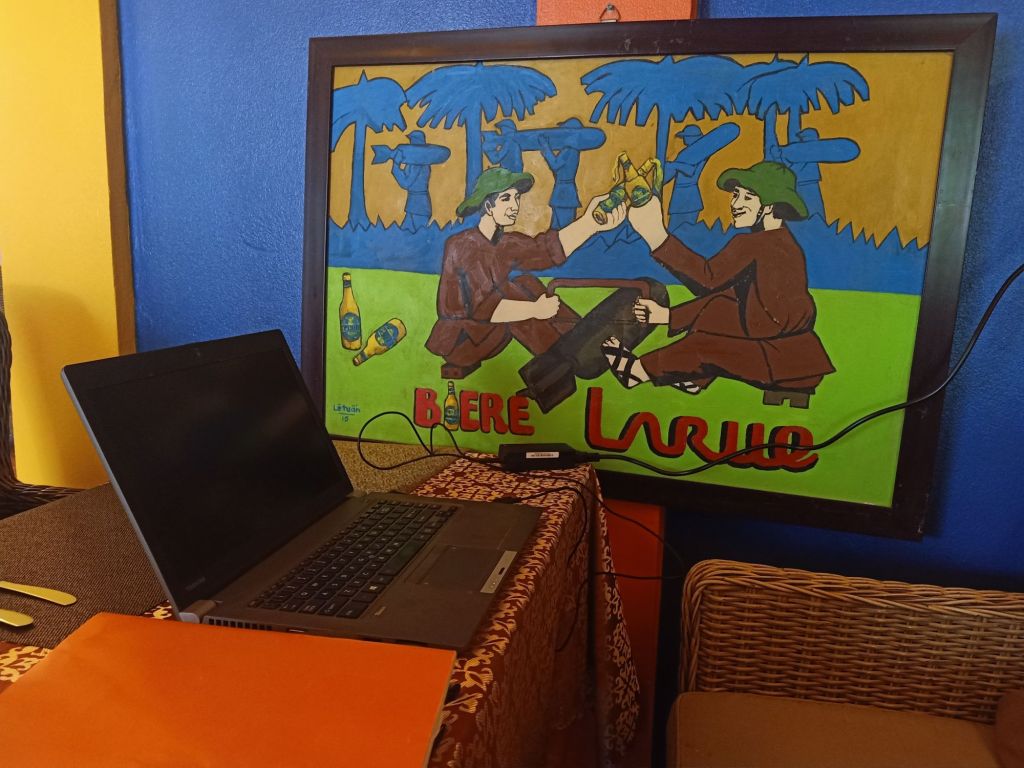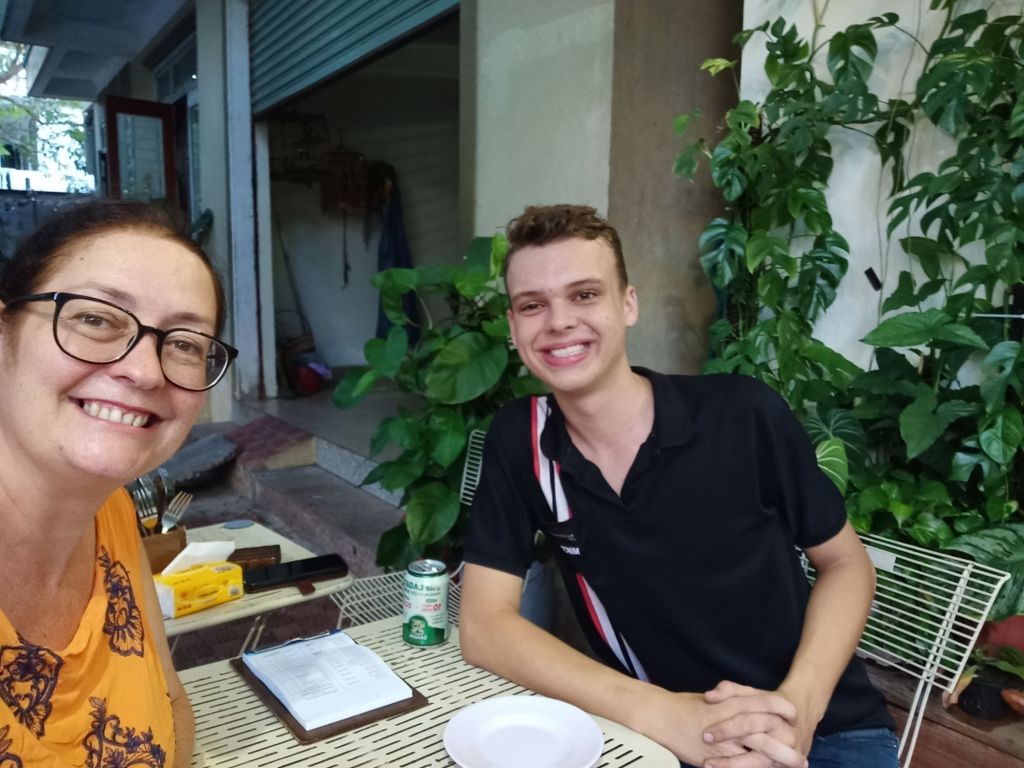 In the evening, I met up with Jack, Stu’s youngest son, for a last leaving drink and meal at Oregano. We drank a Huda beer, ate potato wedges and a Bolognese pizza, which we shared. We had 2 video calls with Stu who was in Ha Tinh doing a summer teaching job and was disappointed he couldn’t join us. The food, as always, was excellent and I’d learned they had wedges on the menu. I couldn’t eat it all so I took a couple of slices of pizza with me and Jack dropped me off at Dolphin Hotel on his way home. The cost of dinner for both of us was a very reasonable 250,000VND (£7.64). Back at Dolphin, I finished the half bottle of red wine I’d brought with me, from last night, and got ready for bed. My alarm was set for early tomorrow morning as I was getting the train to Danang.