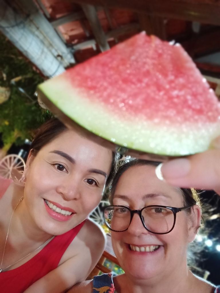By 9pm I was back at the homestay where Chung and the owner, Linh Giang, were waiting for me to have a drink to celebrate my first day at work. We ate juicy fresh watermelon and drank chilled red wine. I was introduced to Kim and her daughter, who were staying at Son River House too and we all had a good night together.