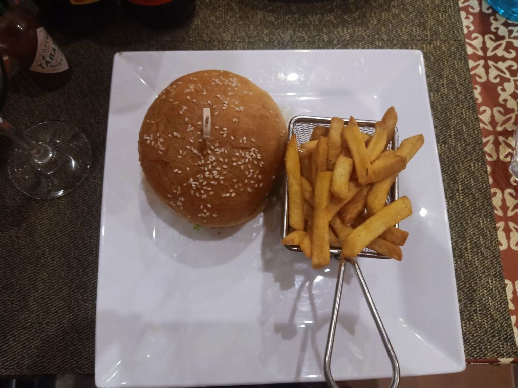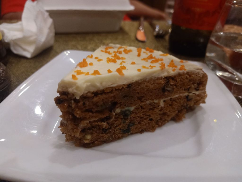 On the morning of Sunday 16th June I packed a lot of my stuff. Captain Caveman was due back later and would only have a couple of hours today and some of tomorrow for us to get organised for my departure. As we still didn’t know when Captain Caveman and I would be back in Phong Nha after this season, or what job either of us would be doing next year, I decided to take almost everything. I would have one suitcase to take anything I had still in Vietnam so I decided to put all the things I could live without in to a bag to give to Chung and Hoan. They could keep anything which they could make use of and give the rest to charity. It felt a bit weird not really knowing what would happen next year but I felt confident things would find a way of working out. I worked from The Villas again and had a treat of beans on toast with a pot of tea for breakfast. For my lunch I had fresh veggie spring rolls and I was still working when Captain Caveman arrived at The Villas. He’d had a good trip but it had been incredibly hot, meaning the group had been out a little later. I updated Captain Caveman on my new job, he was pleased but we didn’t have long to chat as he was off to Chay Lap for his gala dinner. After finishing work for the day, I treated myself to a bottle of wine and some peanuts while I waited for Captain Caveman to return. When he arrived he ordered a pizza as the food at Chay Lap is still below par and he never eats there. I decided to try the ‘new to the menu’ cheeseburger, even though I’m not a massive burger fan. Captain Caveman devoured his dinner and half the bottle of red wine, he was very hungry after his tour. My burger tasted very good but it was a bit chewy with it being beef. I let the manager know and she did say the Victory Road burger was better as it’s mixed with pork so that might have suited me better. Our total bill came to 890,000VND (£27) which included carrot cake. The Villas had started doing fresh cakes again and it did not disappoint! Maxime and his family were back in town to renovate the Nguyen Shack and had waited to say hello to Captain Caveman. It was almost 10pm when we cycled home, Captain Caveman was very tired.