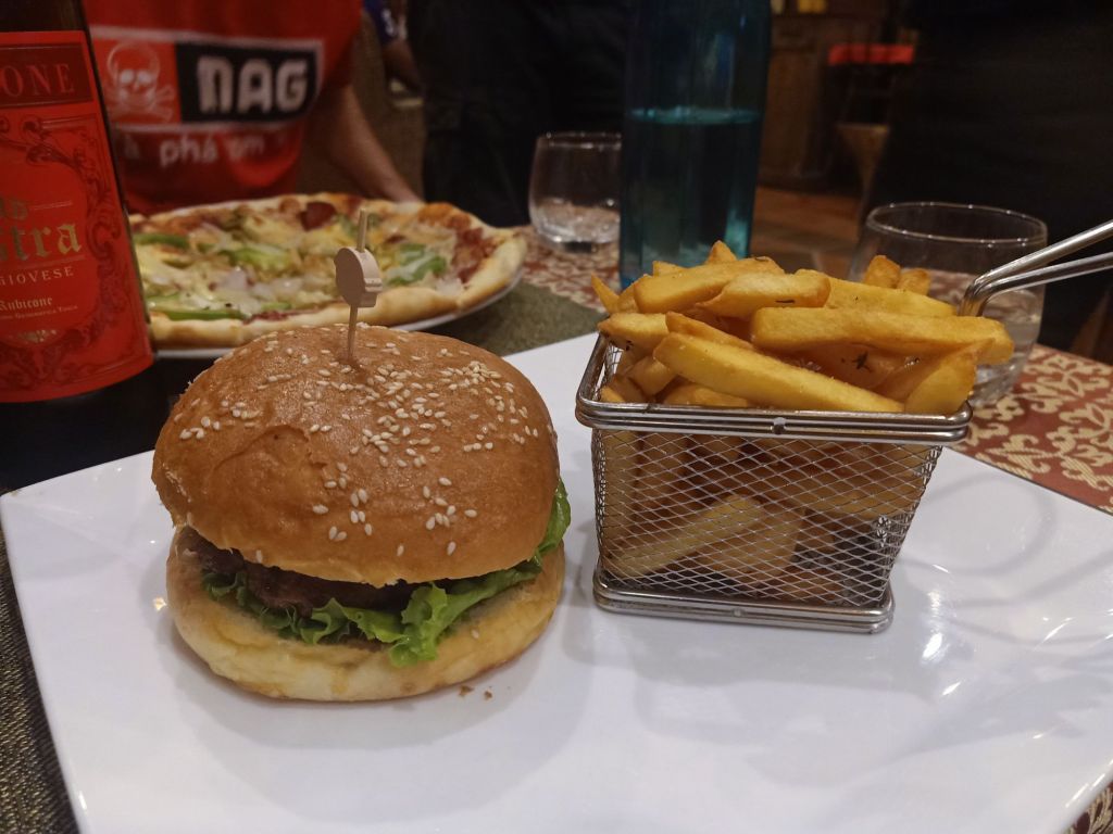 It doesn’t take a genius to work out that I completely ruined all plans for Saturday 8th June by being unable to function properly. The hangover was bad, Captain Caveman had to see to Rodger and Terror while I had to rearrange an appointment with my old physio and her family. I didn’t manage any breakfast and could barely drink my litre of water. At lunch time I was in no position to get on the back of a motorbike to go anywhere. Captain Caveman ordered a Tree Hugger delivery for lunch for us. I ordered the beef and vegetable rice plate, while Captain Caveman went for the burger. It cost 200,000VND (£6.13) for our meals and 2 drinks. We ran out of water so Captain Caveman had to venture out to get one of the 19 litre refills, for 25,000VND (77p). We made it out for walks twice in the evening, both Terror and Rodger were keen for a wander. Captain Caveman managed to buy a case of 24 beers for 270,000VND (£8.27) so he could fill up the fridge for Stu and the boys’ return on Monday. For dinner we went to Oregano where we had pasta and shared a Caesar salad before heading back home and going back to bed, me still feeling very rough!