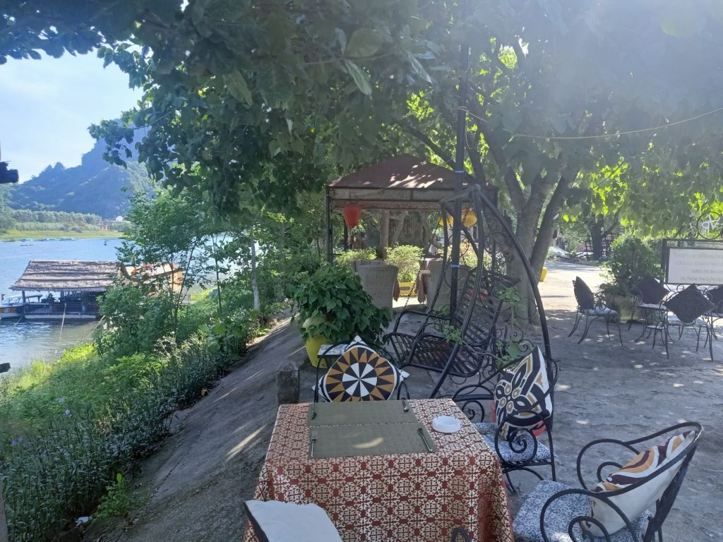 Nha Be Noi Song Son (the Vietnamese name) is so lovely, primarily known for its fresh seafood and catering to large groups, but is also great for a couple of pork spring rolls and a beer. The owner, Tuan, had been swimming in the river but came to join us, along with shaky-hand girl.