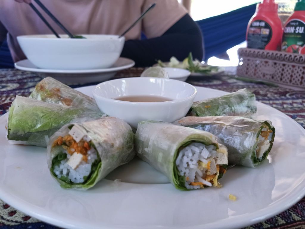 I called in at Tree Hugger where I had a mint and lime iced drink and some veggie spring rolls while admiring the view with a fan on. It was really lovely and cost just 90,000VND (£2.75) which was definitely good value.