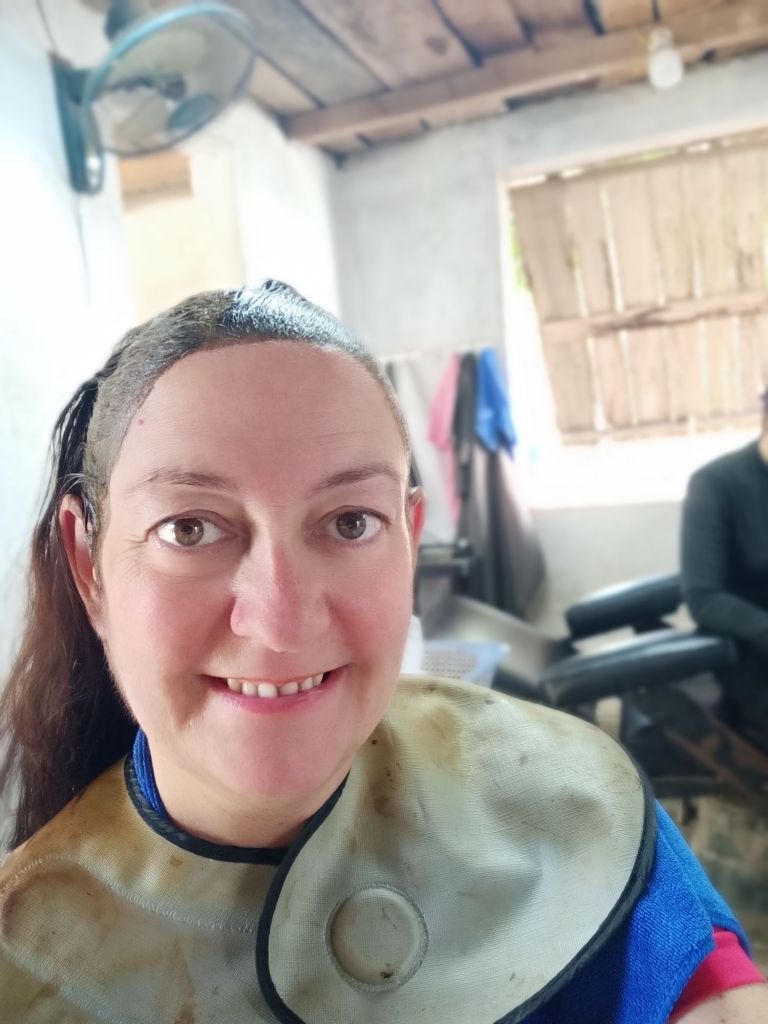 Once at the hairdresser’s, she cut my dry hair first while I sat in front of a fan. I was not entirely optimistic it would turn out well but the heat meant I barely cared about anything else but staying alive. Just 1 hour 15 minutes later I had the hair dye on and was told to wait an unknown amount of time for it to take. Next I got a hair wash, conditioner, face, head and shoulder massage and the blow dry I’d said I didn’t need in this heat. Onion was having none of me walking out of her establishment with wet hair! By 10.30am I was finished and my hair looked good. I headed back to check-out, where Chung had prepared our bill for the 9 day stay at Son River House Homestay. Captain Caveman was going to pay the 3,352,000VND (£101.79) by bank transfer when he returned from the cave. This included 400,000VND (£12.15) for the meal last night which was absolutely delicious. We did get a friend’s discount which was much appreciated and I would definitely stay there again.