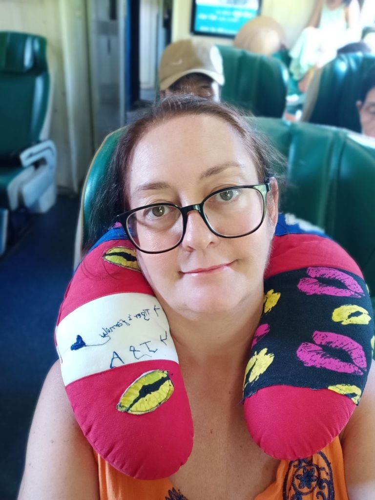 My train to Danang on Friday 21st June was due to leave Dong Hoi at 7am. By 6.20am I was outside Dolphin Hotel, having had a lovely sleep, waiting for my Grab taxi. The fare was 41,000VND (£1.26) and took less than 10 minutes. When I got to the train station, I found out that the train was delayed by about an hour. I was meant to be arriving in Danang at 12.30pm so I was glad I had leftover pizza for my journey. At 8am I was waiting on the platform for the SE1 to arrive. I was in Coach 1 and had Seat 6 booked which had cost Captain Caveman 257,000VND (£7.90) – not bad for a 5.5 hour journey. On the first part of my journey I was sat next to a quiet Vietnamese lady who slept. Once we got to the next stop, she got off and a couple with a kid got on. By 11am the train was rammed and chaotic, every passenger competing for who could watch silly reels on there phone the loudest. The child behind me started climbing on the chairs and making strange and loud noises which eventually tipped me over the edge! I had a proper Inbetweeners moment!!! It was only after I’d loudly told the kid to shut up and tutted that I realised he was deaf and had special needs!!! Within minutes I was sat next to the Mom, instead of the Dad!!! They switched seats in disgust and the kid was being even louder!