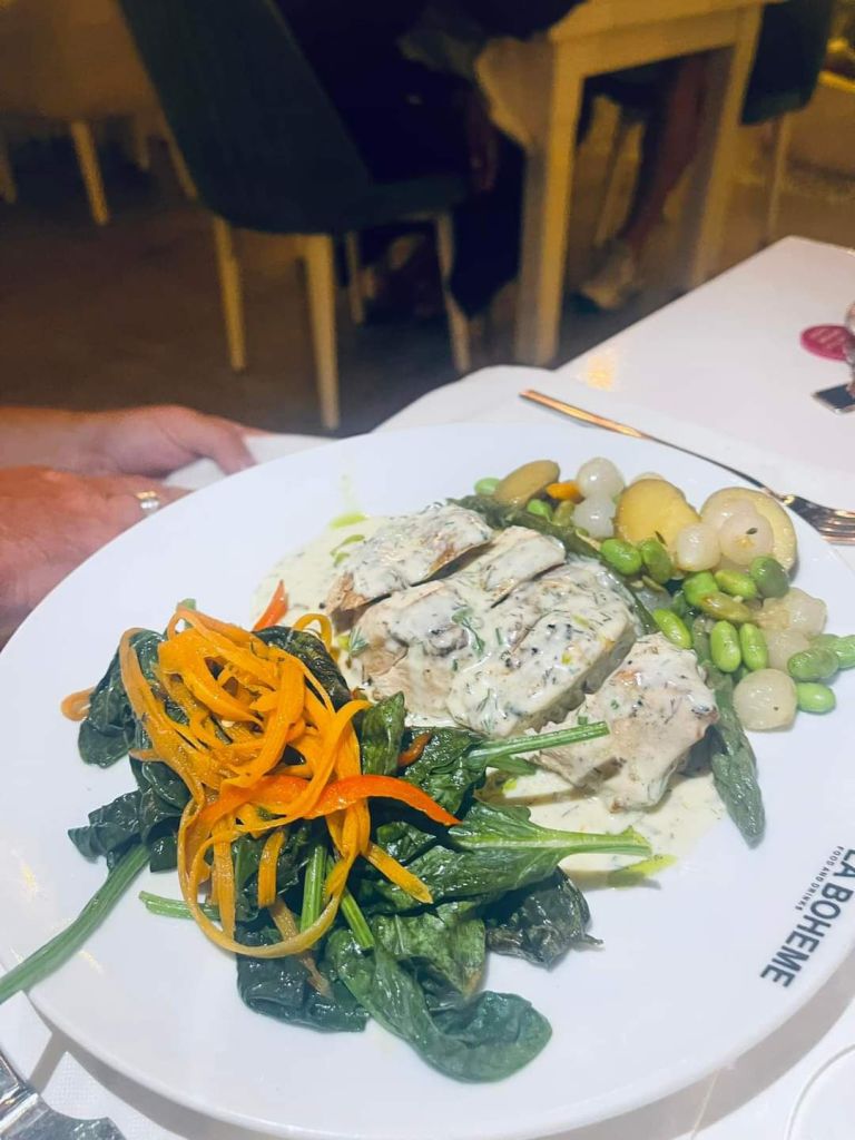 At Jamie’s, the guys were back and we were booked in to celebrate Mark’s birthday with a fancy meal out at Le Bohème that evening. I had to close up my outdoor office as the wine was being poured and the guys were having a dip in the pool. Nanny Kay and Hannah joined us at the villa for a cheeky pre dinner drink. When we arrived at the venue, there was a lady outside having some sort of allergic reaction which Mark and Hannah went to help with while ex nurse Nanny Kay and I swerved the situation and went on inside.