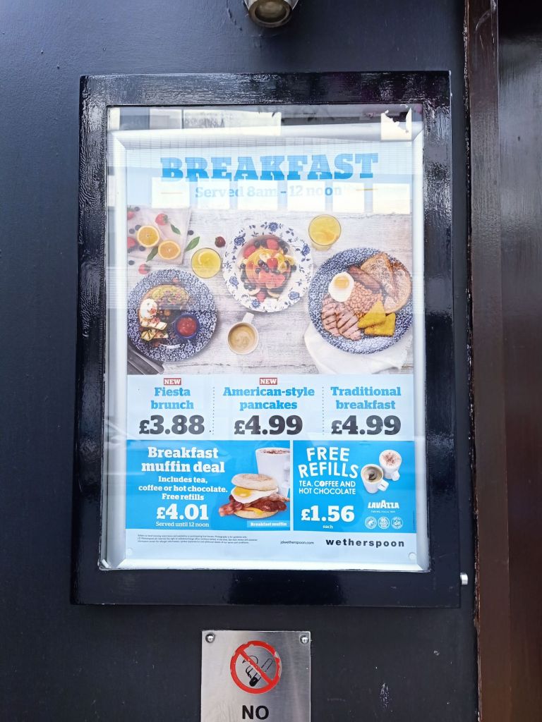 Briony’s plane was delayed by at least a couple of hours on Thursday 25th July so I got on with work until I heard from her to set off to go to meet her. I’d also bought a bottle of pink prosecco and a punnet of strawberries to welcome her for just £10 from M&S. I knew she’d be jetlagged and possibly hungover or hungry. Louisa was on standby to meet as she had the day off and we were all just waiting excitedly on Briony’s arrival. I eventually went to the Mercure hotel to meet Briony and she looked so good. America had been kind to her, her hair was a different colour and looked great. She had got a taxi from the train station as her suitcase was so heavy. We drank some Prosecco and ate a few strawberries as we messaged Louisa to say to come join us. She had missed a bus so had to drive and we said we would meet her at the car park. As we shared how excited we were to be drinking tap water again, Louisa was on her way and we walked towards a strange looking multi story car park. It was very windy and really cold for both me and Briony so we messaged Louisa to say we had gone to find a warm pub. Once again, I found myself in town looking for a pub that was open in the day time on a Thursday. Briony and I could only remember the Benjamin Huntsman as we’d had many a cheap drink in there over the years so we headed there. I dont think Louisa was enamoured with the choice of bar but Briony and I were very pleasantly surprised. You can pay cash, they have wine on tap and the prices are good as it’s a Wetherspoons. This time it was Briony’s turn to go for a pie, I chose the curry deal that is on the Thursday Curry Club and I had the spinach and chickpea curry with rice, poppadoms and a naan bread, plus another wine for £11. Louisa went for a coke, some chicken nuggets and onion rings and ordered it all on an App where the order arrives, miraculously, to your table.