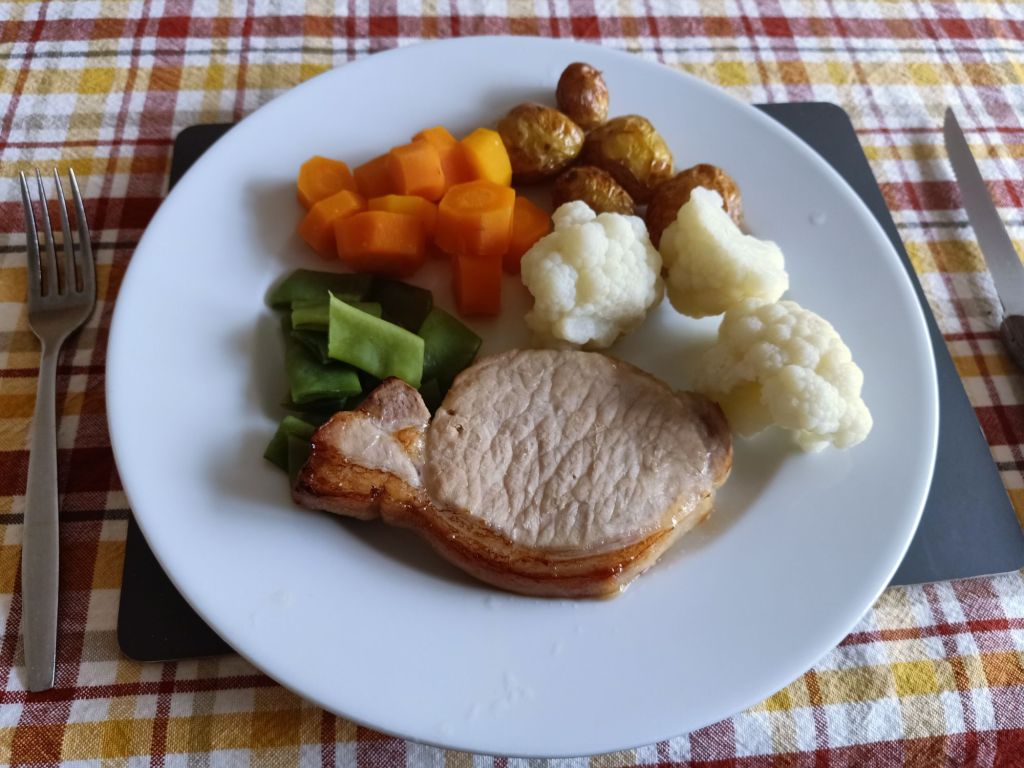 I was pleased with my purchases and even had some size 12 items which actually fitted. The next shops were to look for a birthday gift for my niece’s 18th birthday and I had a bit of an idea. On the way, mom and I found a 2025 diary in the market for £1 and bought one each. I took my G-Shock watch to the jewellers to see if they could fix it and the nice young man in F. Hinds said they would have a look. I bought a couple of trinkets in Card Factory for £3.49 and then found a useful gift for April. I decided an Air Tag with matching key ring so that she can connect it to her keys and track with her phone. I did keep the receipt in case it wasn’t suitable. Back home, Dad was out of sorts and moody but I’m guessing it was because we had been out having fun without him. We had invited him but he didn’t want to come and even when Mom cooked a nice dinner he was being a bit odd and wouldn’t speak to us. I did more work in the afternoon while mom chopped the vegetables. Dinner was amazing and we had pork with vegetables – I was on 558 syns for the week, though, so I was definitely going to have put on weight tomorrow.