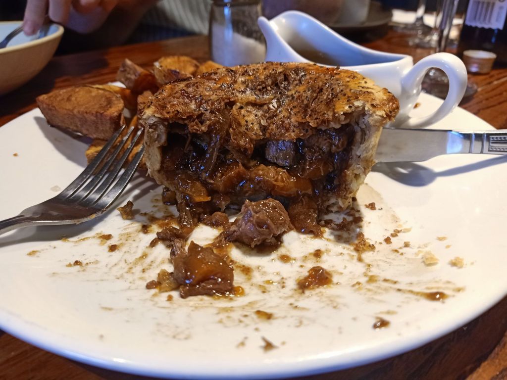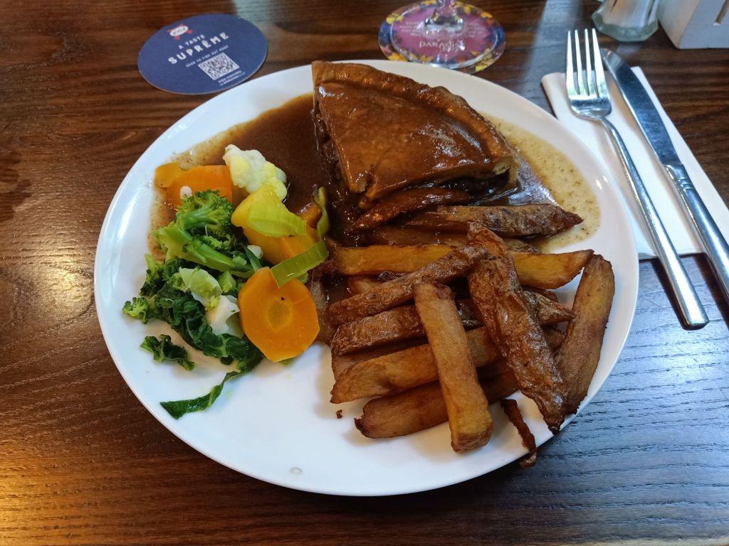 I got weighed on my parents scales on Wednesday 24th July to find I had put on just 0.15kg (0.3lb). This was amazing, given the amount of eating and drinking of unhealthy proportions I had been doing. My measurements were not quite as lenient but still not what I was expecting or deserved; Bust and waist – no change, Hips +3cm! I sang ‘My Hips don’t Lie’ by Shakira and decided the prawn fried rice I’d forgotten about yesterday would be an ideal breakfast choice. I also calculated my spending and really needed to reign it in a bit. I’d got some foreign currency but I really wanted to save that to meet my minimum amount for residency in to my Turkish bank account. I knew August was going to be my tightest month in a while and September would be the highest for paying for stuff. I worked from 8am until 1pm as Ma & Pa had invited me out for a walk with them. Compared to when they are in Dalyan, they don’t really go out to pubs much so this was going to be a nice treat for them. They had suggested we go on a walk, as the weather was still fairly nice, to Ridgeway and have a late lunch at The Bridge Inn. The walk there was lovely and when we got to the bar I ordered a Guiness but the pump wasn’t working, so I asked for cider and that was off too. Remembering I had tried Madri lager before, I had that and we sat down to peruse the menu. I chose unwisely for my Slimming World plan, with a steak and ale pie, Mom went for steak and Dad plumped for salmon. When the food came, it was so delicious and I loved that pie! We were joking about fitting in a pudding as I was stuffed but Mom ordered me a sticky toffee pudding and Dad an apple pie. I thought she would share mine but she didn’t but I did manage to eat it all – it was amazing! The prices weren’t bad either; my pie was £12.95, Mom’s steak was £19.50 and Dad’s salmon £16.95. The puds were £5.95 and £6.50 which were the most expensive desserts on the menu but they were huge portions and really should’ve been shared. The pump was back on so Dad and I got a cider to round off a brilliant lunch which my parents very kindly treated me to. Back home, we rounded off the afternoon with wine. At dinner time, I was too full for anything proper so I opened the pickled onions I’d bought and had them with some cheese and a mini sausage roll. Tomorrow I had more excitement planned as my friend, Briony, was currently on a flight from America and we had planned to meet up in Sheffield.