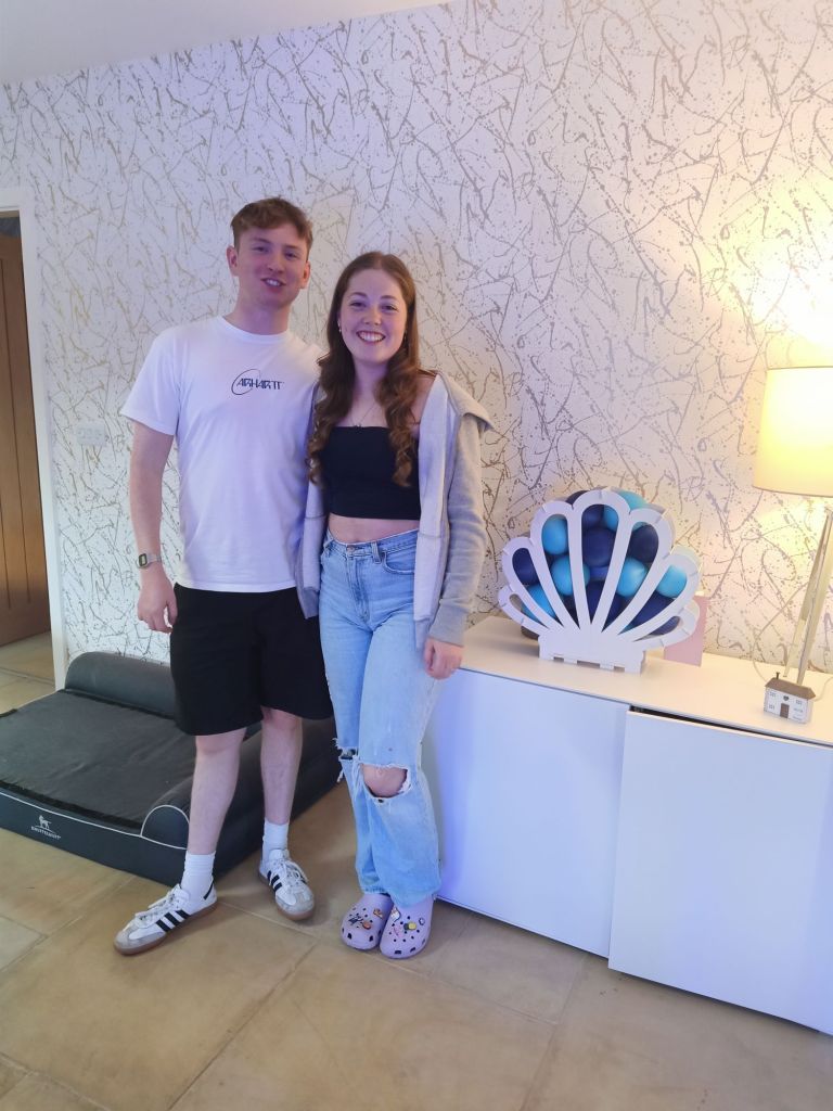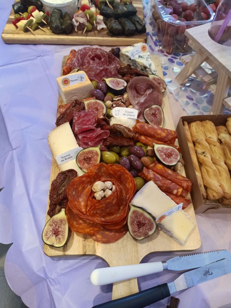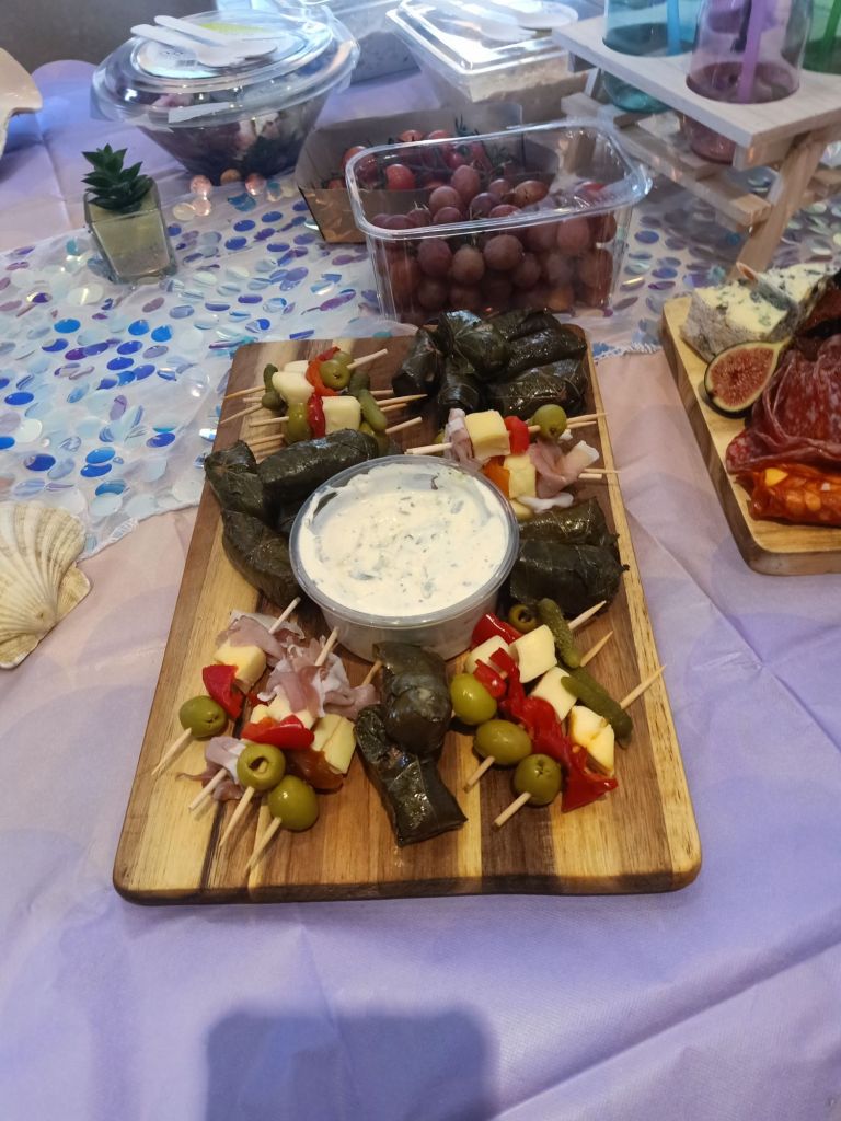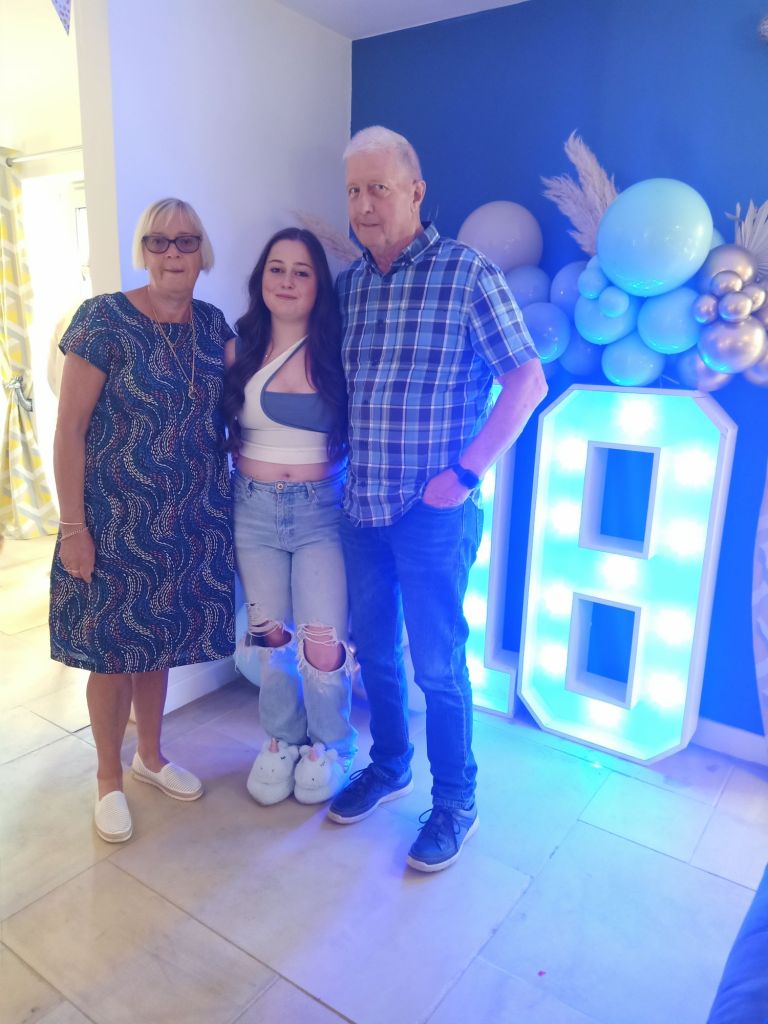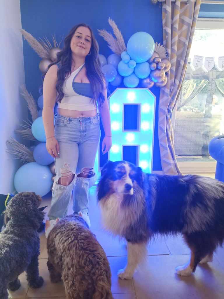 Gayle & Neil were throwing a party for April’s 18th birthday on Saturday 27th July from 2pm. My parents and I were all excited and there was talk of what we were wearing, how we were getting there and even which door we would be leaving from. I carried on trying to get as much work done as possible but I could tell Dad was excited to be going. Before we left for the walk up the hill, wearing sandals, out of the garage door, I had some beans on toast (I was too busy for breakfast) and had a quick video call with Captain Caveman who had returned from the cave yesterday. At Gayle and Neil’s we were unfashionably bang on time and the birthday girl was still getting ready. It wasn’t her actual birthday yet so we put the presents and card on a table to be opened another time and admired the lengths my sister had gone to, to trim up the house. It reminded me of when I see American’s having a party as there were nicely arranged balloons and a light up massive number 18 in the living room. The table was ladened with treats and nibbles, outside was fizz in an ice bucket and more garlands/swathes of balloons on the pergola. The kitchen was jam packed with so much food that I wondered who was coming to ‘the small party just for close family’. We all had a glass of champagne, avoiding the larger champagne flutes which Gayle went for. April came out to say hello and fixed herself an Aperol spritz while Gayle, in her lovely summery dress, wrestled with Sumo, the dog, over a cardboard box for empties. Morgan and her boyfriend, Harry, joined April and Harley and I got to meet Harry for the first time. I was already eyeing up the beautifully presented charcuterie board and macaroons while I helped myself to a top up of Prosecco. By 3.20pm I was in the kitchen videoing the extravaganza as Gayle did some last minute preparation while chatting on. There was lots of red wine I noticed too and I was intrigued as to what the shell full of blue balloons was for – maybe a party game was coming later!