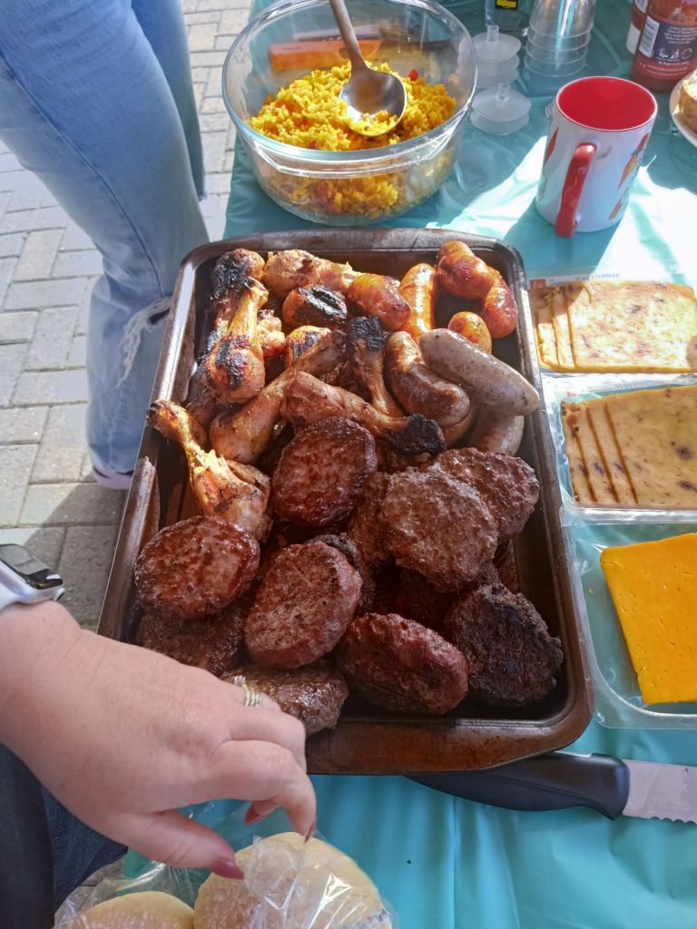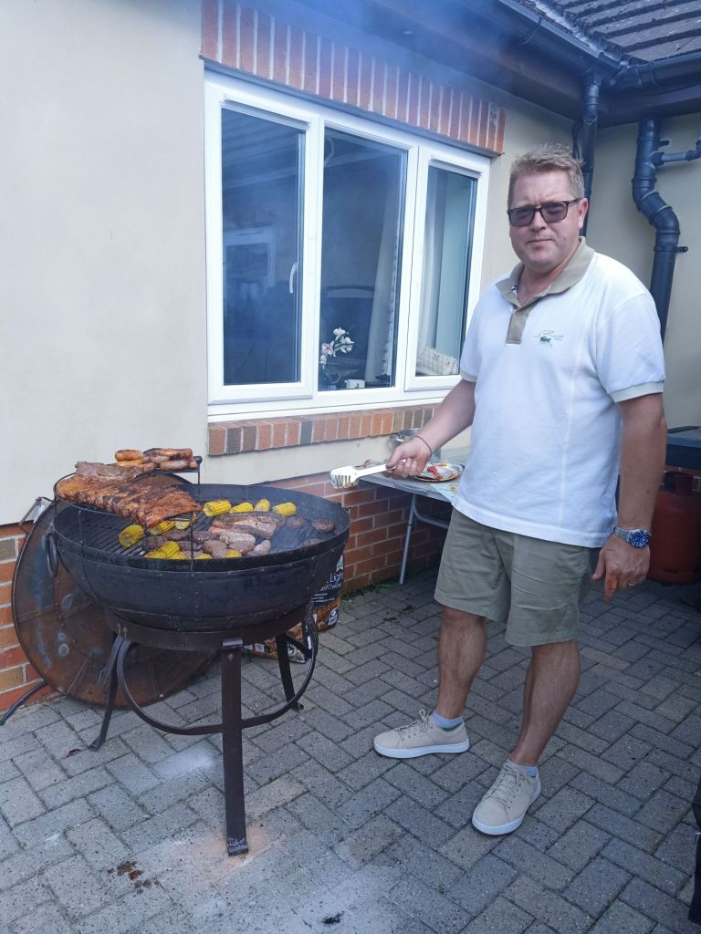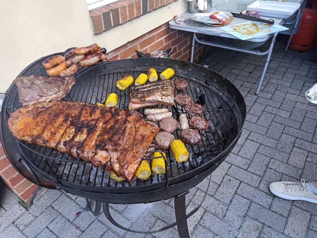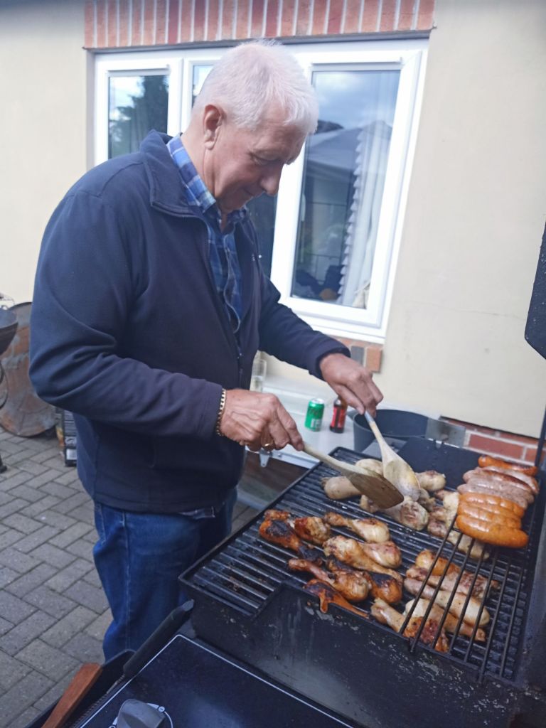 Jill and Rita, our aunties, arrived just after we had finished the piñata. They brought their new dog, Seacole, who joined Sumo, Milly and Holly. Neil was on with the massive BBQ mission and the food was fantastic. My diet was once again on hold as I wolfed down a burger and a hot dog. I got caught out by the chillies in the rice and had to have more Prosecco to get over it. By this time Dad had switched up to a larger champagne flute and I noticed Mom had slowed down on the booze. I went on to red wine as I ploughed through the cheeses and meats. Around 7.30pm I realised we hadn’t taken any birthday photos so we did our best to get a few group and individual photos. Of course, I took so many where Dad was messing about and would not face the camera.