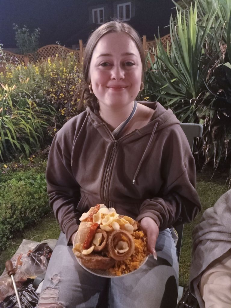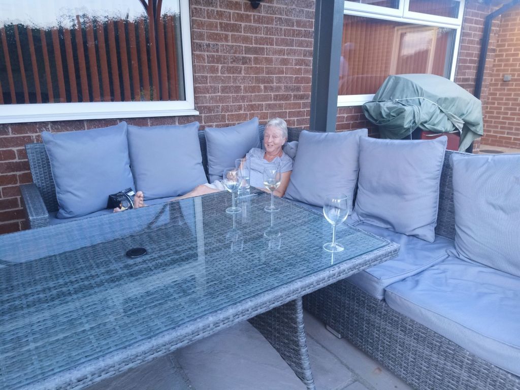 As April had to get to work, we all decided what a good idea it would be to go to the pub where she works. Gayle had to pick up her car from the garage too so she was going to do that and meet us at the Queen’s Head. I got my emergency midget gems out in the car on the way back and we shared them. Sumo was super tired and was trying not to fall asleep as he put his head on my lap. When we arrived at the pub, I got the first round in; Mom had a pint of John Smith’s, Dad a cider, Neil a Moretti shandy and me a Coors – it was only £17 for the 4 drinks. Morgan arrived after and April twisted he arm to have an Aperol Spritz which I bought for £8 (not bad for a cocktail). When Gayle arrived, I asked if she wanted a soft drink or an Aperol Spritz and she said yes to the cocktail and Neil had another shandy but neither drank them straight away because they realised Gayle’s car had been pranged and they had to take it back to the garage. We stayed in the beer garden for more drinks as Mom wanted to get another round in and we also got some pork scratchings and crisps between us all. It had turned out quite an expensive day for Gayle and Neil as we said bye and Neil dropped us off. We sat in the garden, Dad had to get the cushions out again, and we had some wine meaning I was on 320 syns for the week already and still had one more day to go before weigh day!