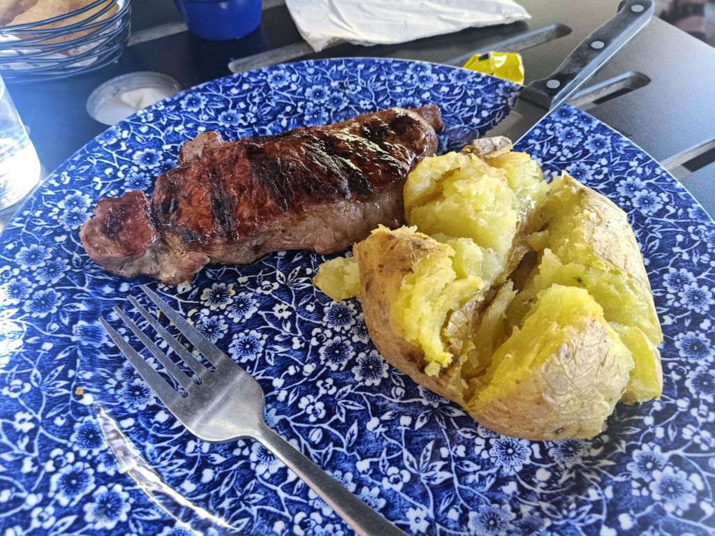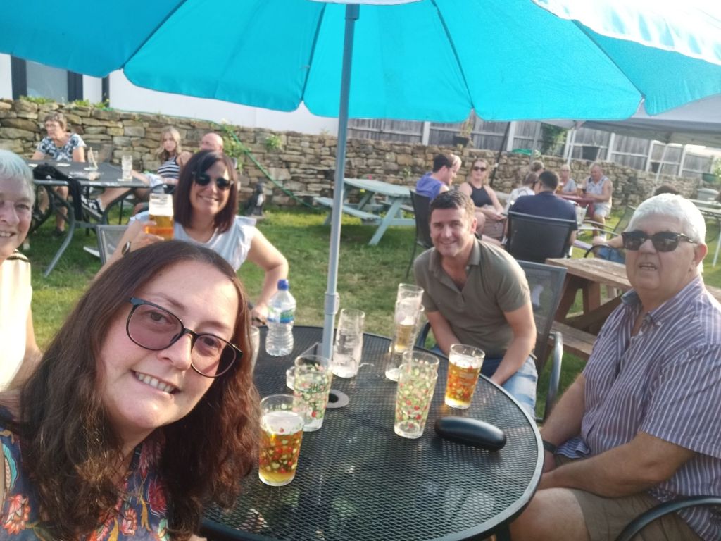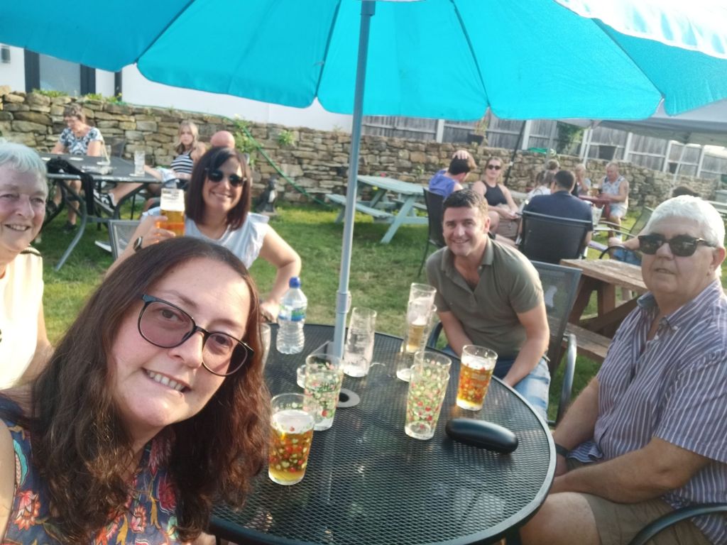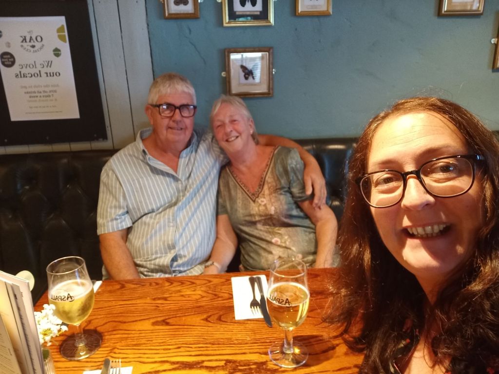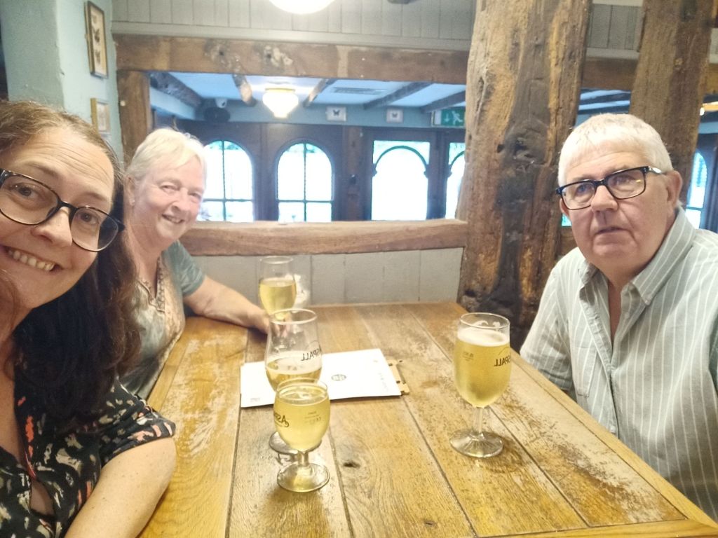 I woke up to a message from Captain Caveman on Monday 29th July who had booked me a National Express bus. I would be leaving at the weekend and going from Sheffield to London by coach for less than £10. The train would’ve cost around £70 so I was pleased with that bargain and that I would be able to get my heavy bags to Claire’s without any hassle. I had tea and a toasted teacake for breakfast and did just an hour of work as I was off on a family walk today. Gayle and Neil had invited Ma, Pa, me and their kids on a walk in Derbyshire with lunch at The Maynard Arms. I’d not been since my old boss, Lindsey, got married there so it was definitely a while ago and they had renovated it again since. Me, Ma & Pa got in the car which Neil was driving and had Sumo in, while Gayle came in Morgan’s car with April. The route we walked was familiar to the rest of the family whereas I didn’t really recognise it. It was a nice walk which finished with a hill to reach the pub. It was a warm sunny day and none of the outdoor tables had full shade so Neil and I had to take the sunny seats – I didn’t think I’d be needing sun cream on in England. I’d forgotten to bring my phone as I’d left it on charge so Mom lent me hers to take a few photos, which was good. Dad and I ordered the steak sandwich, Mom chose duck, Neil I think had a burger, Gayle ordered a poke bowl, and the girls went mad with a greek sharing plate, extra chips and extra halloumi. We shared some bread and olives to start with. The food was very nice and I really enjoyed my steak sandwich which came with cheese and fig chutney. I also had a glass of red wine and we had a laugh at Gayle and April who were arguing, mainly because they were both hangry. It got very sunny and even Mom was in the sun by the end of the meal. When I went inside to go to the loo and get the bill, we found out that Neil had quietly already gone in and paid. What a treat and to give an idea of cost as I didn’t see the final bill here’s what I had with the prices in pounds; Steak sandwich £12.95 Skinny fries £4.50 Tap water Free 1 large red wine £8.00 Total £25.45
