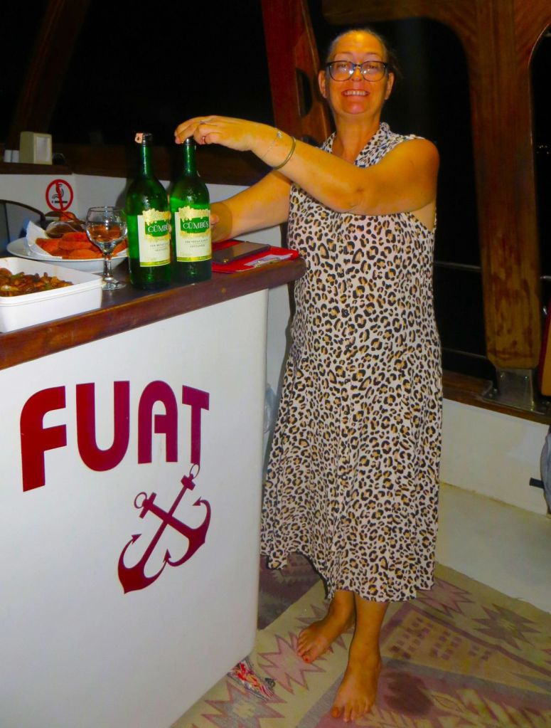 Our ladies moonlight boat trip started at 4pm and we met in the tea gardens. We sailed across to Köyceğiz and got off for a walk, where Vanessa, one of the other ladies and I all strolled to the tea gardens at the end of the promenade, then back. As usual, we got to swim until sunset and we had a bit of a laugh swimming around the boat and chatting to everyone. There was a delicious meal and some Sultaniye wine to share, plus I had another couple of wines. We got back just before 11pm and I’d spent a total of 1,750 lira (£39.24) for 7 hours of fun, food and drink with some lovely ladies.