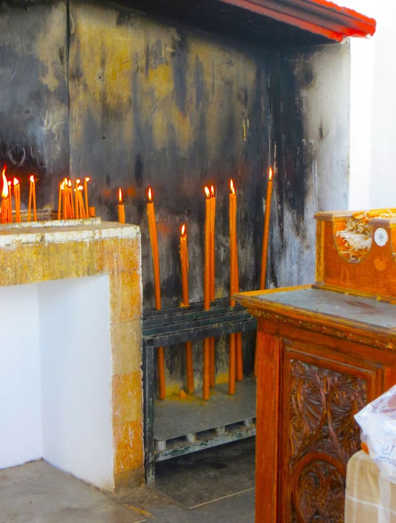 My travel buddy for the day already had a list of things she wanted to see while on the island of Rhodes, and was very keen for us to take the bus to Tsambika Monastery. We walked from the port, along the harbour and via the boats filled with stuff made from shells. The bus ticket from Rhodes Town to Tsambika Monastary on the 11am no.23 bus cost €3.30 (£2.76) each. The bus was in, we only just made it and I think I remembered where we should get off to head for the monastery. On a few of my visits to Rhodes, I had gone past it on the bus on my way to Lindos or Lardos.