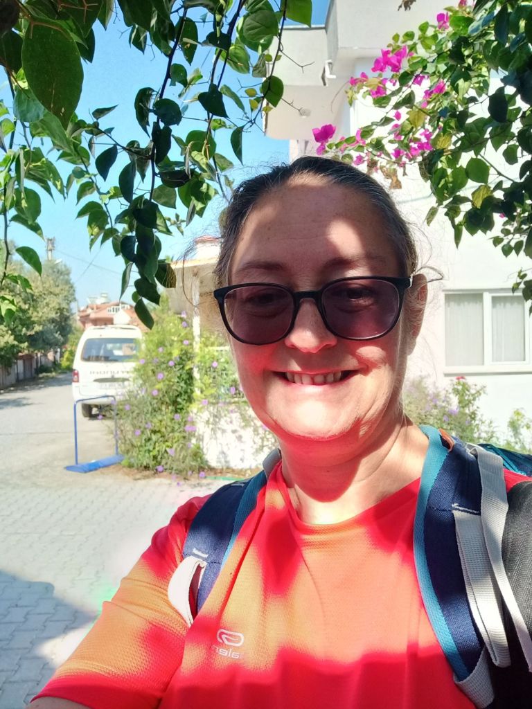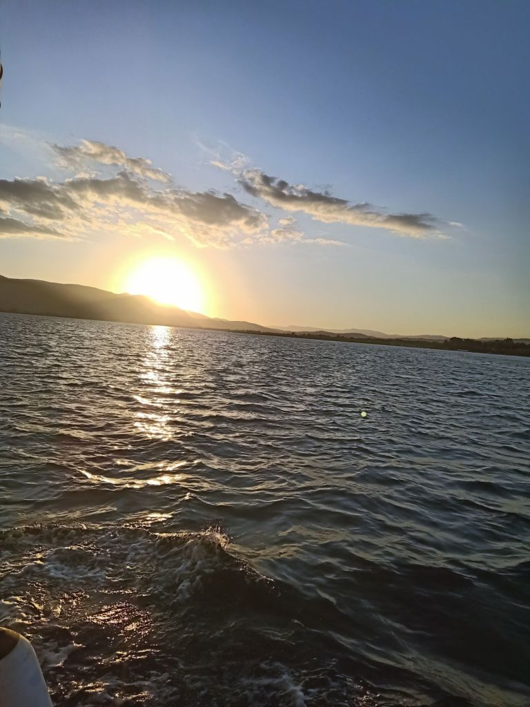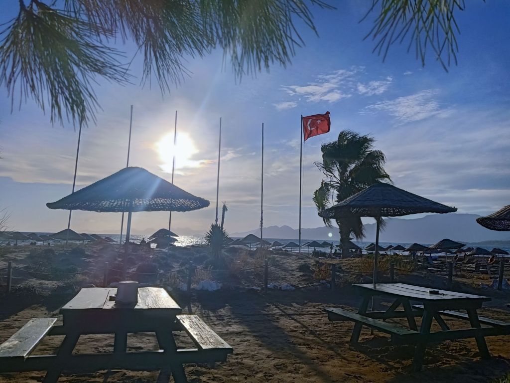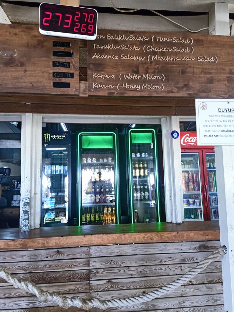 Meanwhile, Gayle & Neil were off on a weekend trip with Murat to Datça early this morning. My friends Kelly, Clare & Louisa were on their way to their respective airports and then to Rhodes. I finished work and then went to the bank so that I could put a load of cash in to the bank to pay on to my credit card. Captain Caveman had decided that it would be best for him not to use his Vietnamese card to pay the money for my hotel stay and that he would transfer it to my Wise account instead. I had transferred it and paid extra on to my credit card so that it was in credit, ready to pay the hotel. When I went back to check out, the receptionist said she could only accept cash, even though I had specifically booked this hotel to be able to pay on card. It was now a bit of an inconvenience as I had no cash and there was over 14,000 lira on my credit card which I had no intentions of spending on anything else! I had to ask a friend if I could transfer some money to her and her pay the hotel when she arrived tomorrow. After sorting out the payment and transferring money to my friend in the UK, the owner turned up and said it was ok to pay with my credit card, but it was too late. I got picked up by a friend, with my big rucksack and all my luggage/laptop for Rhodes and we drove to the beach. I was reluctant to leave all my stuff in the car but I also really wanted to get in the sea after a stressful morning. I paid the 100 lira (£2.24) parking fee on my card and then we went to the beach café for a late lunch. My friend ordered a tuna sandwich and a diet coke, while I had a chicken sandwich, a bottle of water and a Turkish tea for 375.00 lira (£8.41). The food was hot and tasty and not a bad price for what we had – I noticed a sign which said the café closed at 6.30pm. The sea was super choppy but the sun red hot as we got in for our swim and stayed in there for ages, mainly jumping the waves. I thoroughly enjoyed splashing about and trying not to lose any of my bathers as it was a top and bottoms combo. It was gone 7pm by the time we had got back to my friend’s place, cracked open the wine and got a bit of a picnic out on the balcony, in time to watch the sunset. It was an early night, the alarm was set for 4.30am the next day, as we were off to Rhodes, via Marmaris.