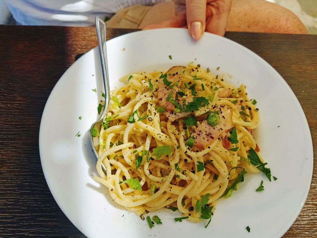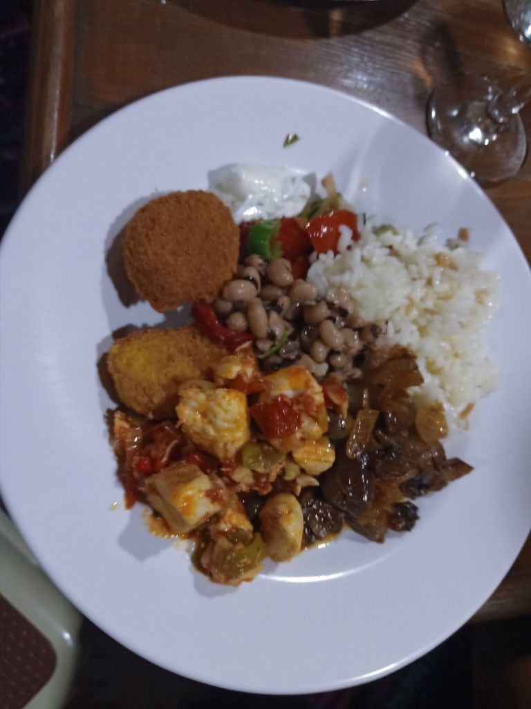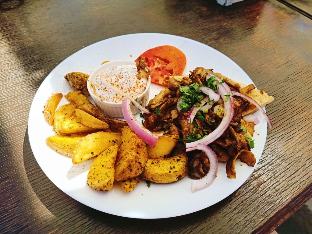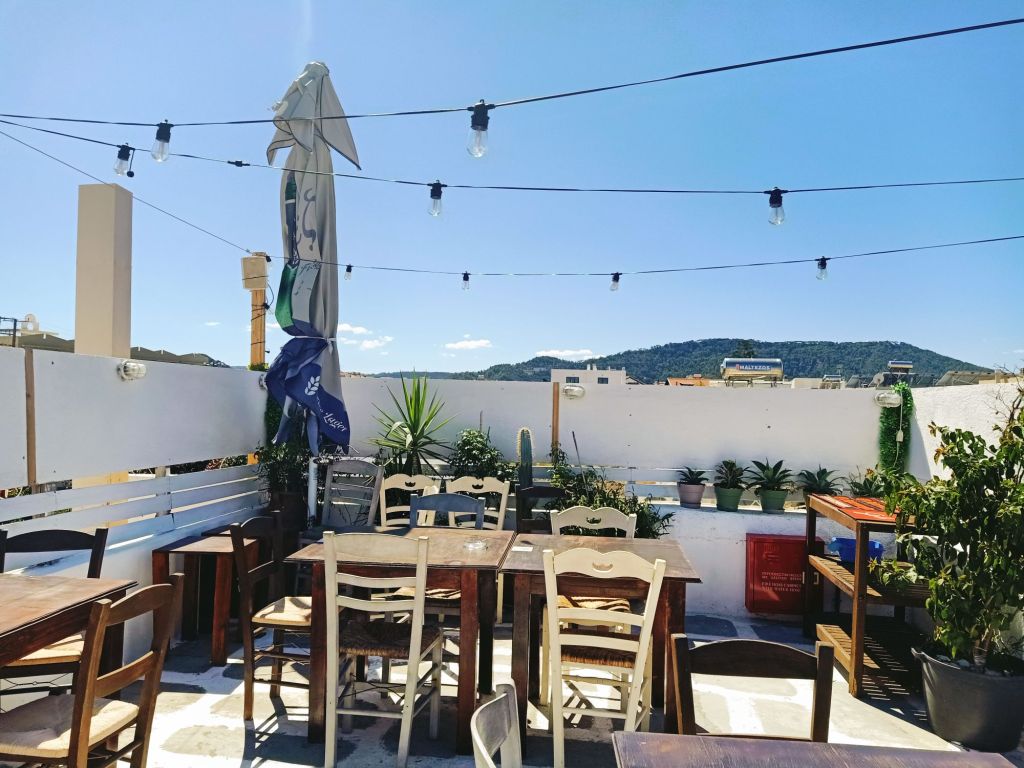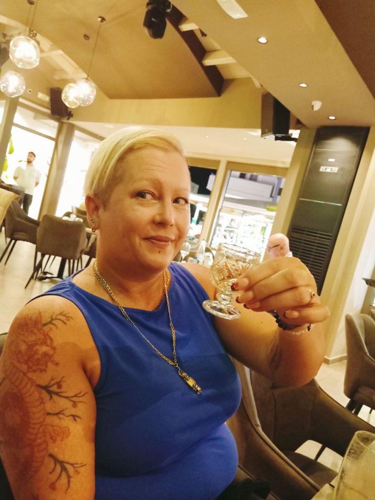 My day on Tuesday 17th September started with a healthy breakfast but would not continue in that vein – it was probably a good thing I was missing the Dalyan Fat Club tomorrow! I ate a banana and a plum with my cup of tea, then got on with work. At lunch time the girls were going for a walk so I decided to close the laptop and join them. On our walkabout, we spotted a lovely rooftop bar and went in for some lunch and a drink. Kompologaki restaurant also had sunbed rentals by the beach across the road and we had nice views of the sea from our corner rooftop table. There were lunchtime specials on so we ordered from that menu where it came with a beer or wine included in the price. It had one of those QR code readers to view the menu so we used that and I made a list of who wanted what so that I could go back downstairs and order, here’s what everyone chose; Kelly: Pasta Carbonara + beer + Sprite + Mai Tai cocktail Louisa: Gyros plate + beer + Sprite Clare: Gyros plate + wine + soda water Jo (me): Gyros plate + beer
