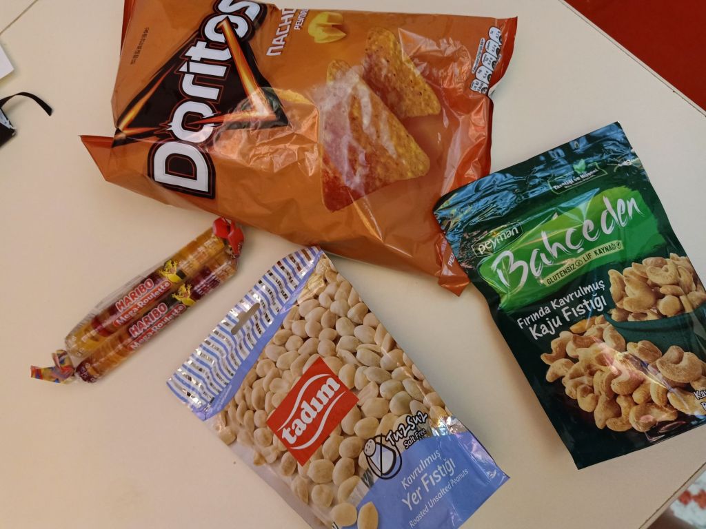 Migros Supermarket Dido Trio chocolate bar 13.50 Dido Lemon chocolate bar 14.00 Popcorn 21.50 Total spent 49.00 lira (£1.08)