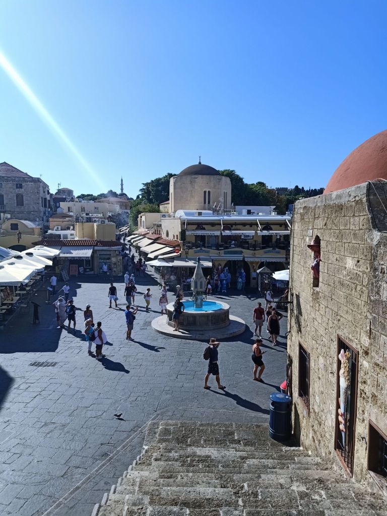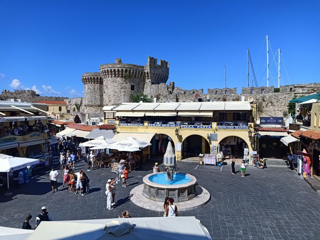 By 3pm I was ready for food and a drink. We sat upstairs at Archipelagos and ordered a glass of rosé wine for €7 (£5.85) each and a main meal each. I chose the pork skewer for €16.50 (£13.80) and my friend went for the beef stifado at €17.50 (£14.63). The food was lovely but we were only just going to make it to the ferry port in time to check in. I retrieved my left luggage and bought another bottle of water for 1 Euro then it was time to say farewell to my travel buddy. We had enjoyed a great day out in Rhodes and I was glad she had finally had someone to suffer the monastery with her.
