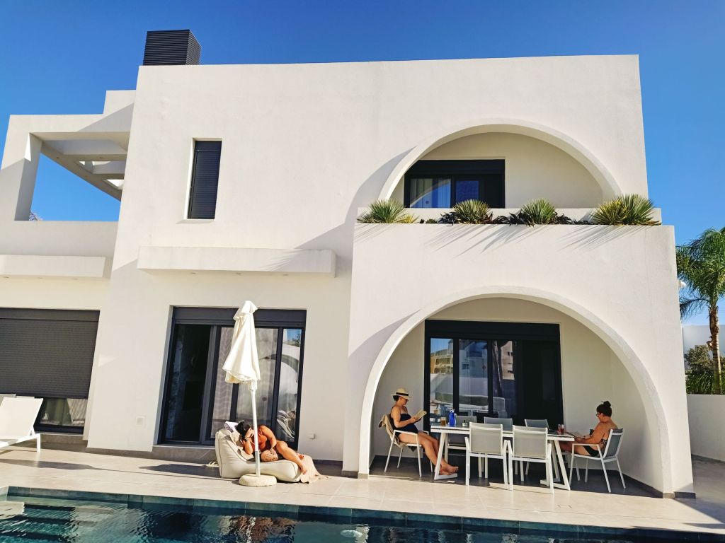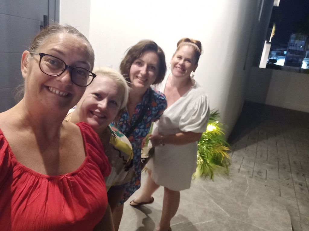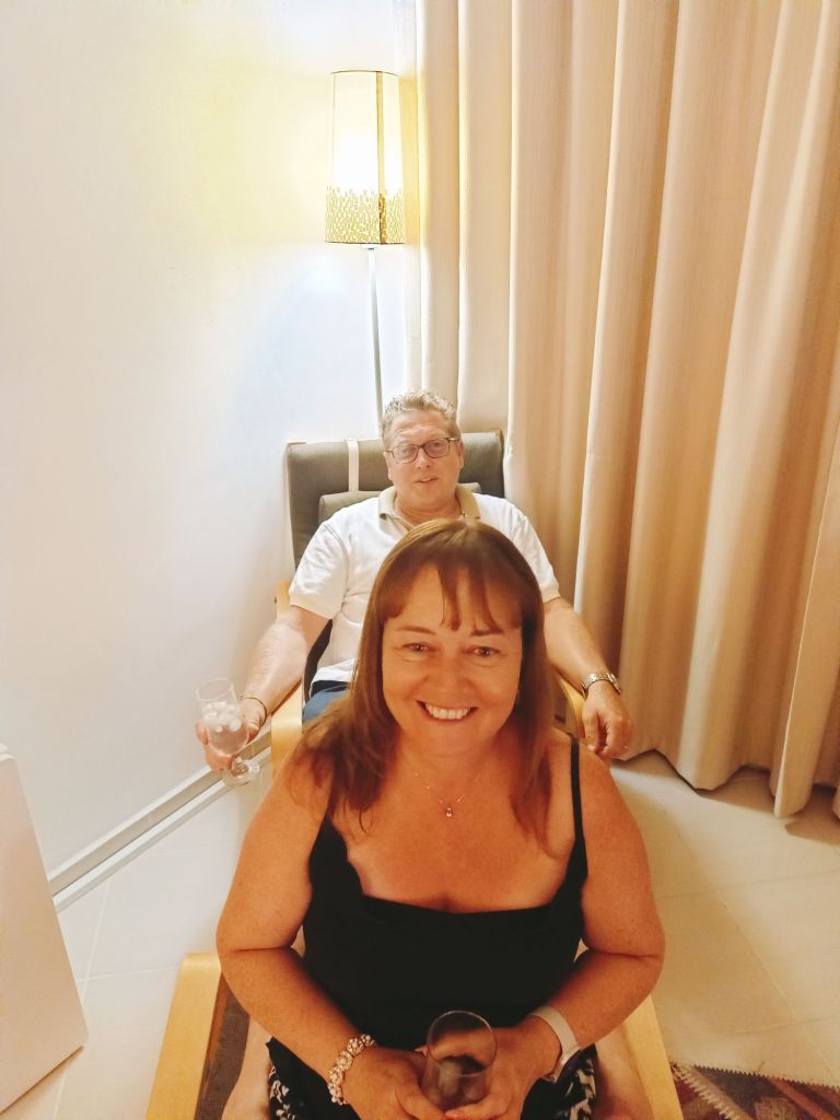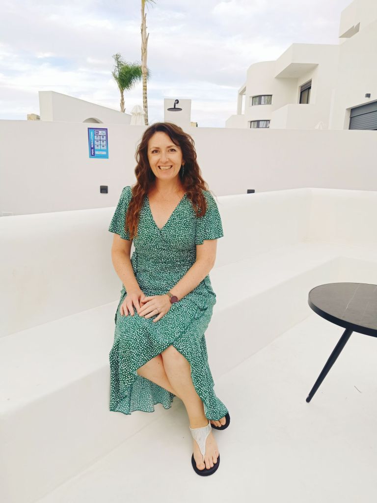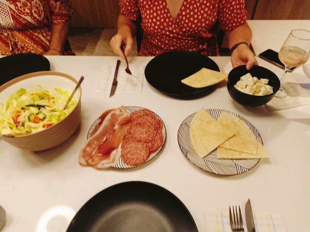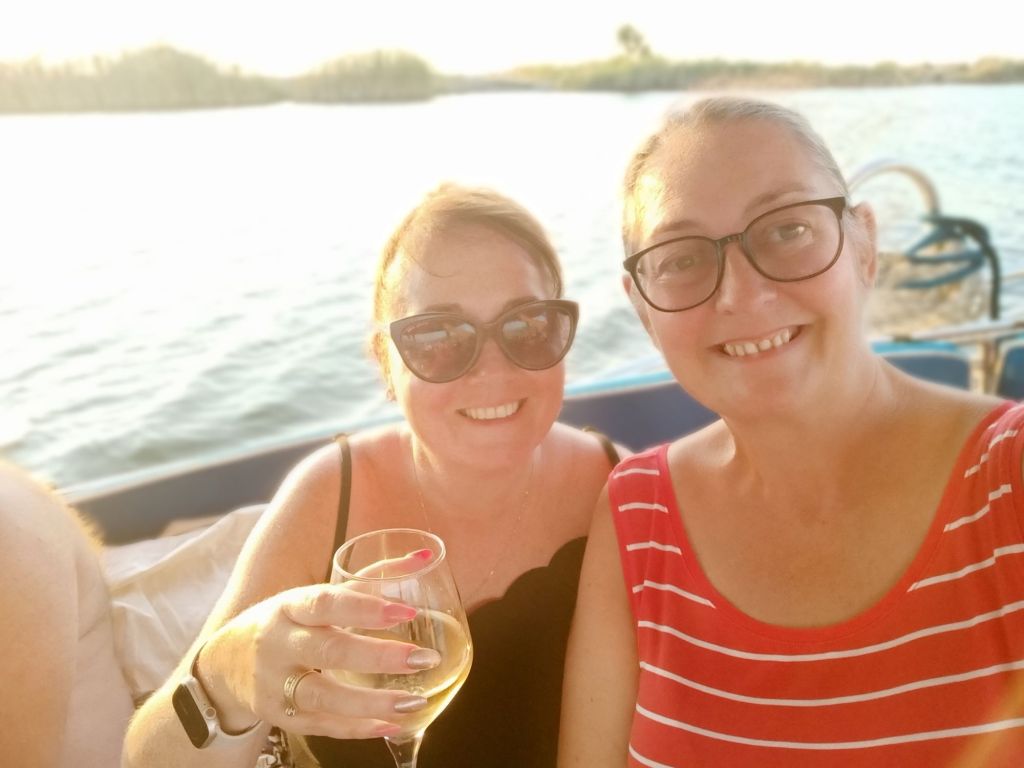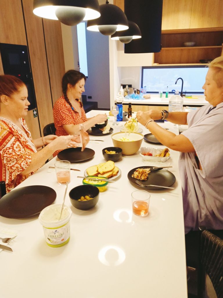 On the way back to the villa, we called at the supermarket for provisions too. Back ‘home’ I did a bit more work while the girls relaxed by the pool. I was happy to close the laptop and join them for crisps and a wine in the early evening. One of our other friends, Liz, was on her flight to come and join us. We were looking out for her plane, which would be flying directly above us. As we were waiting, we got a bit peckish and started our buffet for dinner, Kelly plated up some for Liz so that we didn’t eat it all. Clare took a video of the BA plane which Liz was on as she came in to land and we were all super excited when she arrived. There were hugs, tears and extraordinary footwear. Wine was had but not the fizz in the fridge as that was for when we went in the Jacuzzi in the main bedroom – oh wow, I hadn’t realised there was one! The rosé wine Clare and I had bought went down a treat and I even got to wear some fancy shoes of Liz’s while we caught up on her news. It was like having the band back together and I was so happy that Liz got the short straw and had to share my twin room for the next 4 nights.