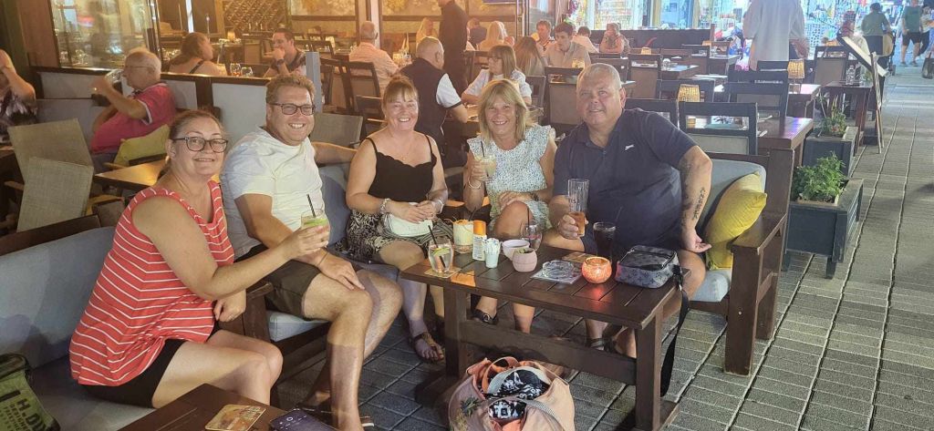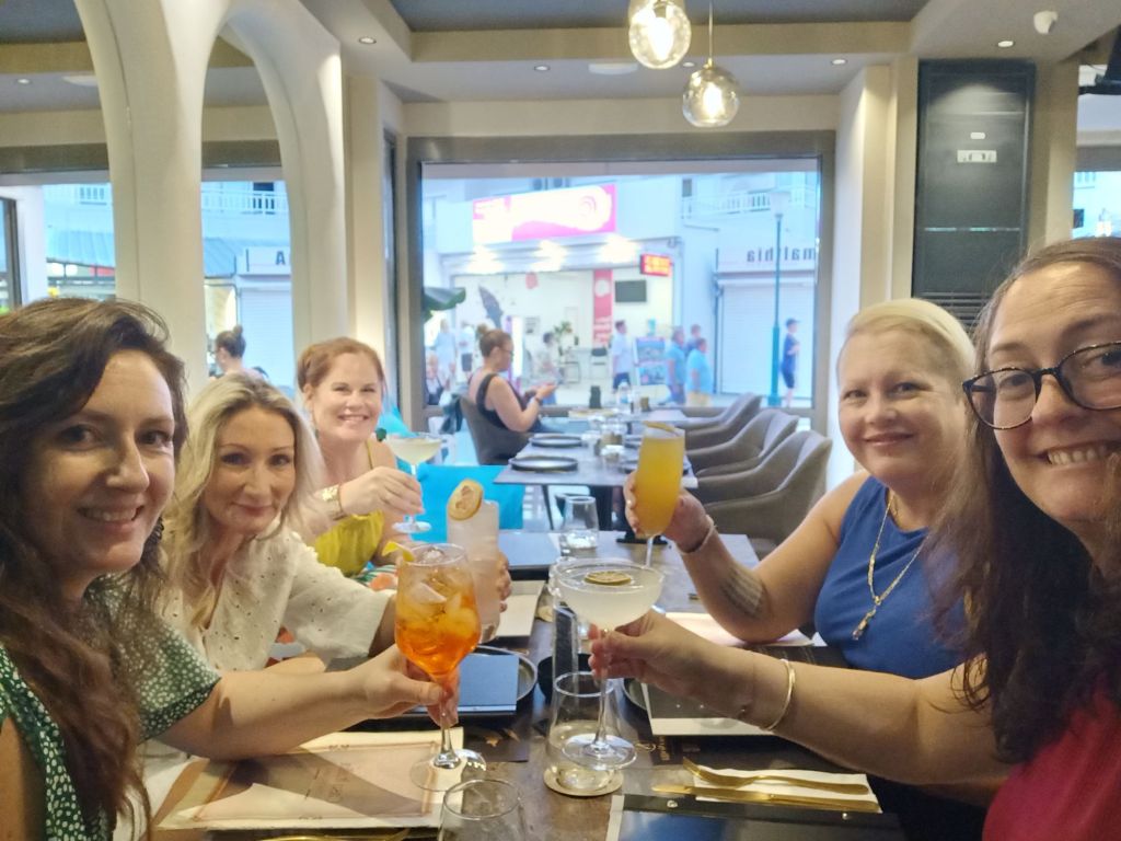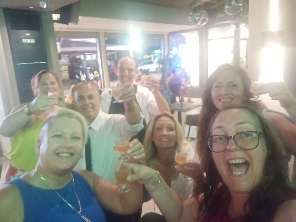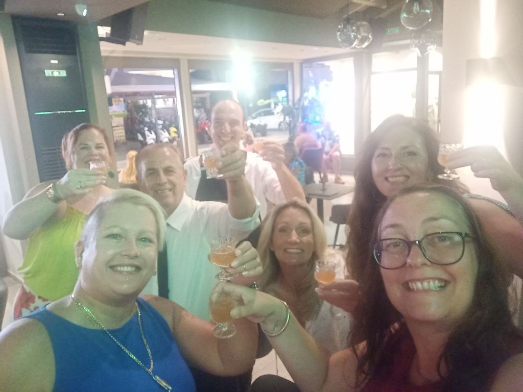 The food was excellent and the service on our VIP table, second to none. We ended up having more cocktails instead of wine with our dinner and I threw caution to the wind a little having 2 more drinks. At the end of our meal we were brought out free shots of something ridiculously sickly sweet. As we were getting the bill, one of the girls had already paid and it was on her! Wow, I was both grateful and speechless. More free shots were had and a group photo with the staff before heading back to the villa. Of course, that would have been the best thing to do at gone 10.30pm but it was Liz’s first night out and she really fancied another drink somewhere. While Louisa and Kelly headed back home, Clare and I accompanied Liz to a bar which I think was called Blaze Bar. It had a band on and we must have been a bit tiddly as Liz ordered a Bloody Mary, Clare had a cocktail which looked like Sex on the Beach meets a Pina Colada and I, very foolishly, ordered a draft lager. The band was a lot better than we were expecting with 3 members who looked like famous people with our beer goggles on. We joined in on the singing and stayed until closing time. I paid for the round of drinks and had one of the best nights in years for just £20!! It was gone midnight when we got back and then Liz and I stayed awake talking for a few hours – at least I didn’t have to worry about getting up for work in the morning!