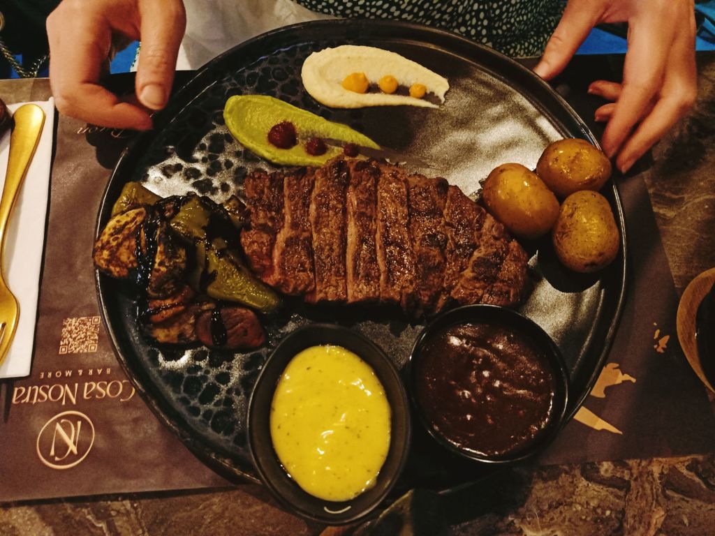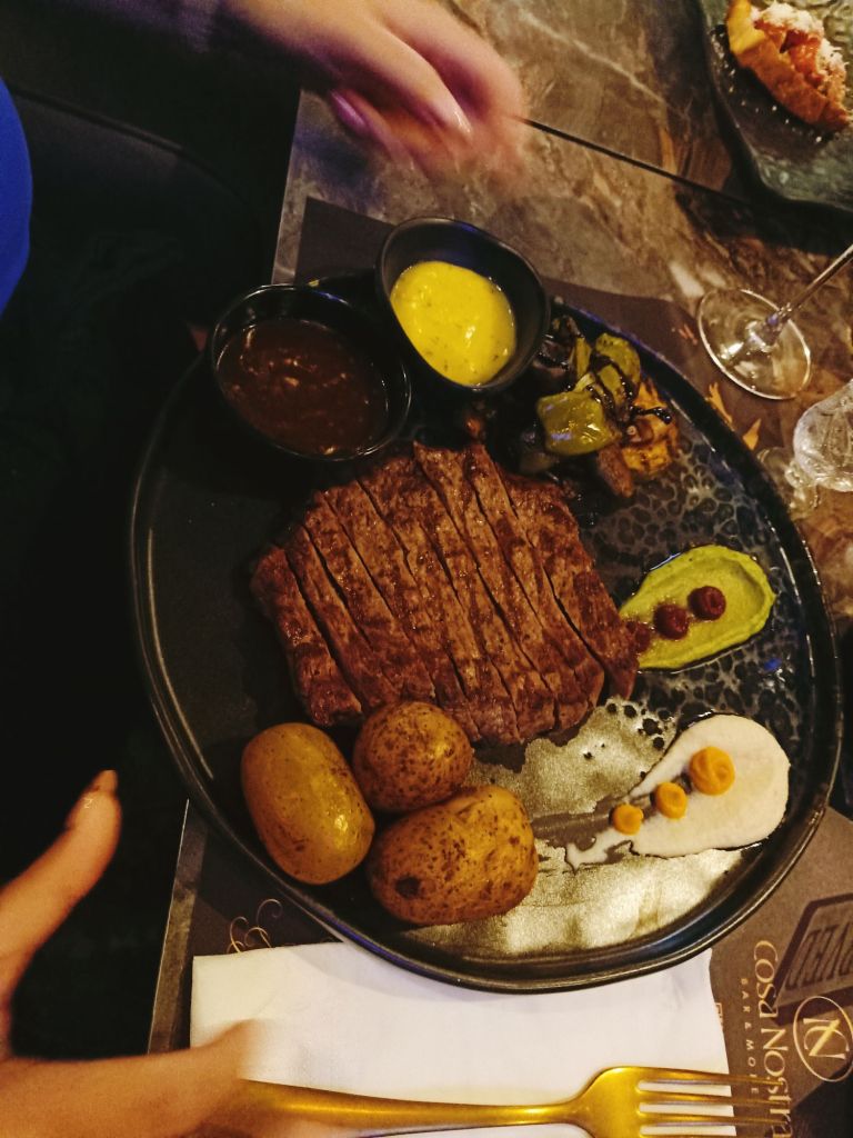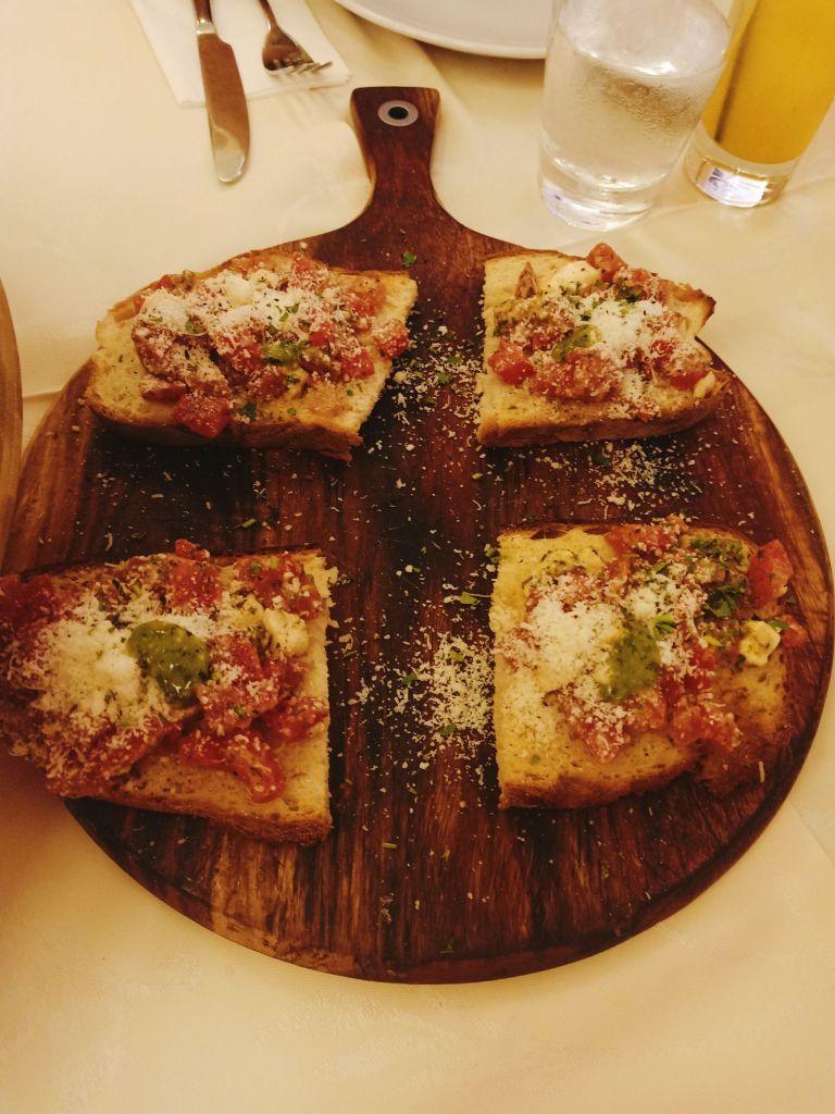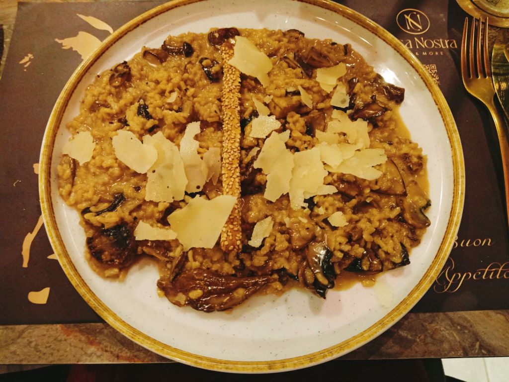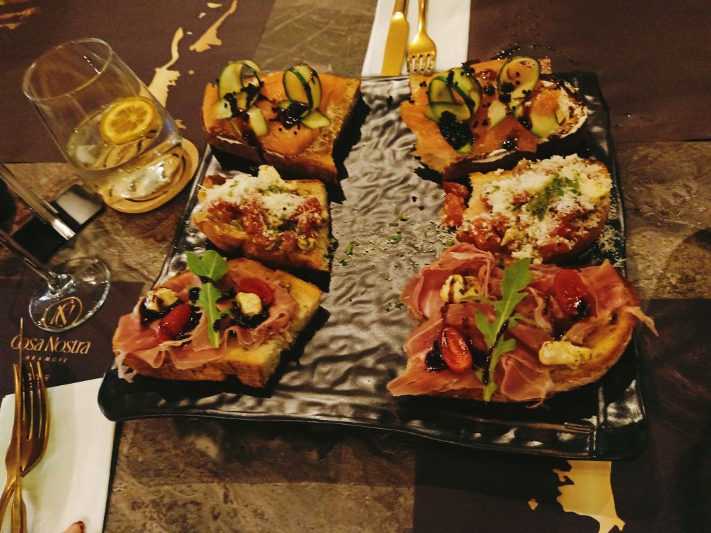 Clare had took the liberty of booking a table for the 5 of us at Cosa Nostra and it certainly did not disappoint. I was very conscious of being on a budget but I ordered a margarita cocktail at €12.50 (£10.41), a Gnocchi starter at €10.50 (£8.75) and a mushroom risotto at €18 (£15). The steaks started at €45 (£37.50) so I avoided those and we all shared some fancy bruschetta with various toppings.