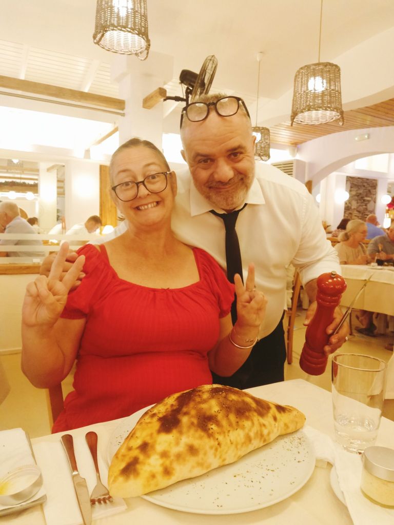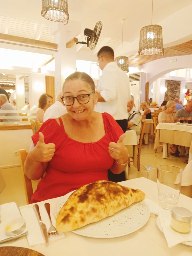 Thursday 19th September was my last full day with my friends in Ialyssos as I was leaving Rhodes early the next morning. Tonight would be our last night together and all the girls were really looking forward to us celebrating the end of our (too short) holiday together. When I woke up, I felt like absolute death and could hardly clean my teeth without puking. Liz did a walk, the girls all went out for brunch and it took me until 2pm to force down a slice of buttered toast and a cup of tea. The girls had fancied trying out Casa Italia tonight and I pretty much had to drag myself out of bed to attend the evening’s meal out and I am so glad that I did. Casa Italia is owned by Costas, the same owner as Cosa Nostra, Creamland and Kostas Village Taverna. As we arrived, Louisa, Kelly and Clare were walking ahead and didn’t notice Costas who came to chat to Liz and me. He was a very nice man and you wouldn’t have known he owned all the restaurants, very humble. Once seated, the manager was not happy with where we had been plonked and moved us to a nicer table. The girls were on it but I could not face any alcohol and stuck to water. We shared garlic bread and more of the fancy bruschetta. Liz ordered shrimp linguini, Louisa spaghetti Bolognese, Clare the burata on a huge plate of prosciutto, Kelly a rather lovely salad and I had to have the ham and mushroom calzone. When the food came, it was absolutely marvellous but my calzone was so big that I had to take half home with me, with a piece of the garlic bread, for good measure.