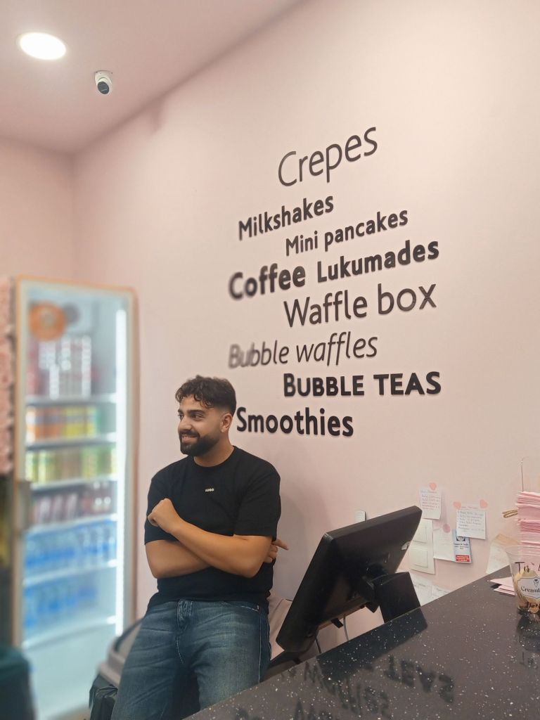 Şok Supermarket Water 9.75 Biscuits 17.00 Turkey ham 22.00 Cheese slices 28.50 Total spent 77.25 (£1.70)