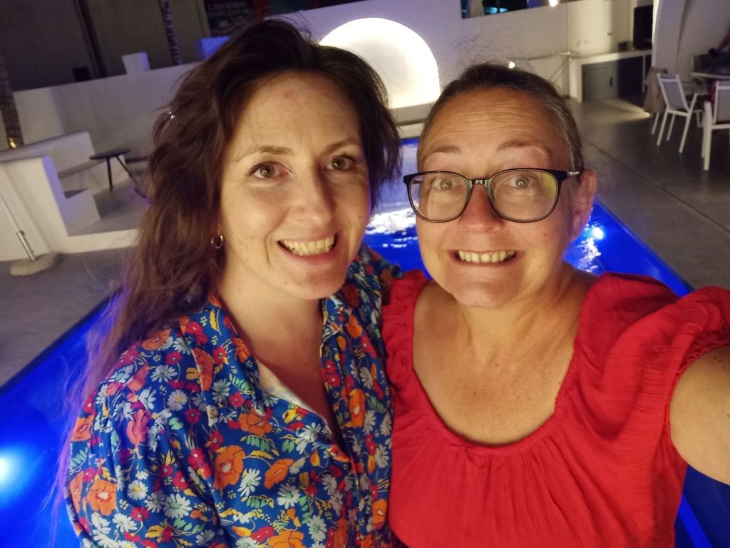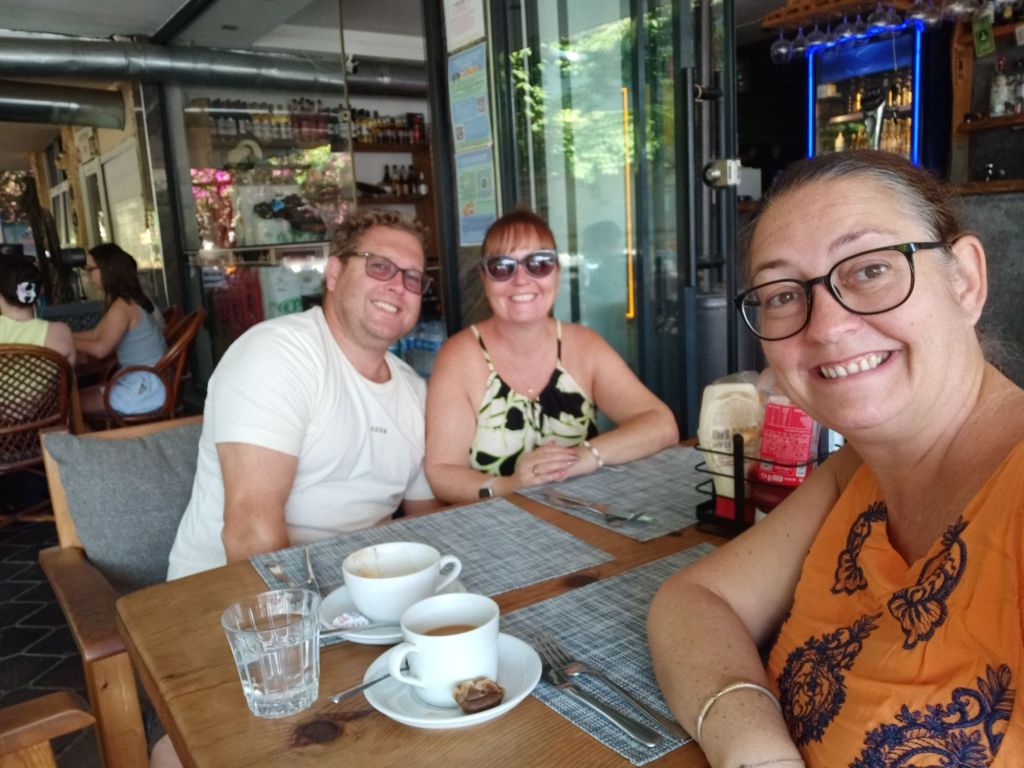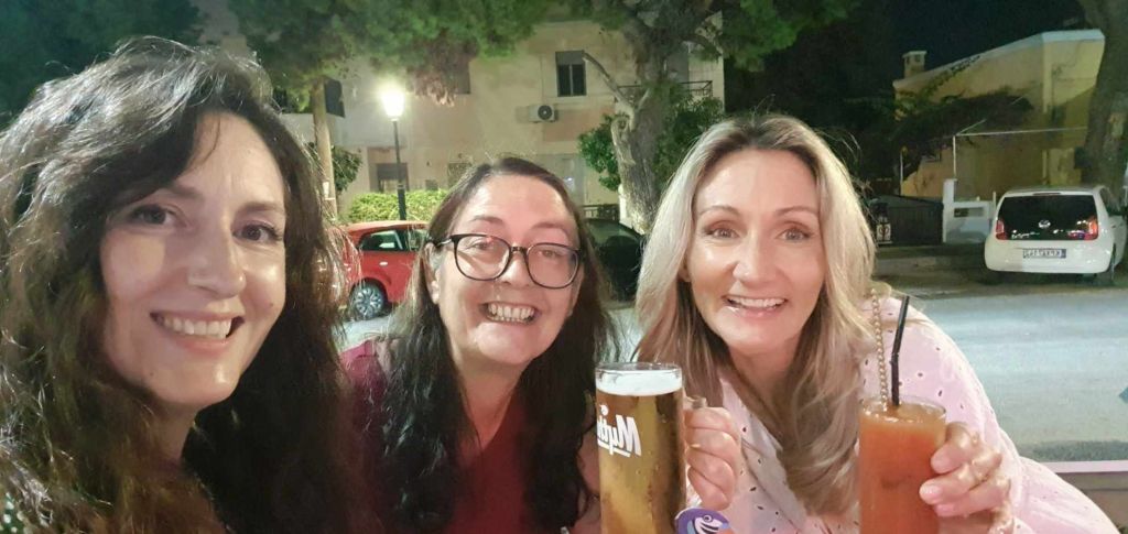 There was a bit of bad news on Wednesday 18th September and it wasn’t just that I would have put on some weight from overindulgence with my family and friends over the last week or so. I did my measurements, as usual, to find that I had put 2cm on my waist and 1cm on my hips, my bust had stayed the same. Liz and I were up and about much earlier than everyone else, she had been doing her exercises and I had already done a couple of hours work. I saw 2 big black crows on the wall of the villa and they stuck around for a while, one of them let me walk up quite close and I vaguely remembered that superstition suggests that seeing 2 crows is lucky. Apparently it means new beginnings in a relationship or career. I’d had a reply back from my boss’s wife, to say to speak to him about why I hadn’t been paid yet. It was 4 days overdue and I knew from her response that it didn’t look promising. I decided to stop work until I had spoken to my boss to find out what was going on. I had a feeling he no longer could see the need in keeping me on during the quiet winter months. I closed the laptop so that Liz and I could go for a walk, get some breakfast and a coffee for Liz. By 9.30am Liz was getting us something from The Cake Box. She had a croissant, a coffee and a detox juice while I had a sundried tomato and cheese ciabatta and a juice. It was once again lovely, although Liz didn’t reckon much to the coffee as it wasn’t a brand she preferred. We walked around and I took her to Creamland to see if the coffee was any better and, luckily, it was. It cost €5.50 (£4.58) for her Cappuccino with a Freddo Espresso in it. Our next stop was a nice walk along the beach where a lovely Dutch woman had been making a cute heart and some writing out of stones on the beach. We got talking to her and her friend then decided to have our photos taken by her over her art work – I bet she thought we were daft, but Liz and I did not care! When we got back to the villa it was gone 11am, I was hoping to get a call in with my boss, for an update on the work situation. While all the girls were busy enjoying their holiday, I got a message from him. It said ‘things were getting very quiet and he was canning our project’. He thanked me for my help, apologised for the late notice and that I had ended up working 4 days over what he had already paid me for. I already had a feeling this was going to happen so I just replied with best wishes for flood season and to let me know if there was anything I could help with in the future. It was quite a blow that, just like that, I had no further income and I would now have to wait to rely on Captain Caveman once again, until I found another job. I made a decision not to say anything to the girls, I was doing all I could to hold it together lately as it was and didn’t want to ruin their (or my) holiday. I made myself a promise to find another job within a month, though, or set up my own business. As luck would have it, only 2 days ago a friend had suggested I talk to his boss as he thought I would be a good fit for an opportunity at his place. I decided to tell the girls that I had the rest of the week off, which wasn’t exactly a lie but it wasn’t the complete truth. We only had 2 more days together and I wanted us all to have a good, and happy, time.