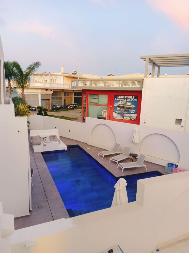 At 4.45pm I was on my way out of the port and off to the bus station, once more. There was a bus which would leave at 5.25pm and take 38 minutes to get to a hotel near to where the girls were staying in Ialyssos, on the North West of the island. My bag was heavy, the sun was strong and I was tempted to get a taxi but there were none about. The bus stop was crowded and there was only one bus coming so I decided to walk back to the taxi rank and pay the €15 (£12.50) for the 10 minute ride. Unfortunately, without a working phone, I couldn’t find the location and the taxi driver only new the approximate place. I asked a waiter at a nearby restaurant but he was too busy and unhelpful. I finally found the villa, which was about 10 metres away from where the taxi driver dropped me in the first place! Finally, after a very long and eventful day, I was reunited with Clare, Kelly & Louisa at the extremely lovely villa. I was welcomed with hugs and rum which was nice and then given a little tour of the premises, logged on to the internet and I shoved my bag in the twin room. Even though I still had to work while I was there, I was sure I would get lots of time to enjoy being with my friends again. Dinner was a fantastic buffet of meats, feta cheese, salad and bread which went down very well. I hardly took any photos as my phone was on charge after today’s jaunts. We stayed up chatting and catching up on who was doing what, while drinking. I stuck to just rum with ice as I had got so used to not drinking any fizzy drinks or juice most of the time and didn’t want to dilute it. That night, I was so tired I could’ve slept on a washing line and I did not need any help nodding off.