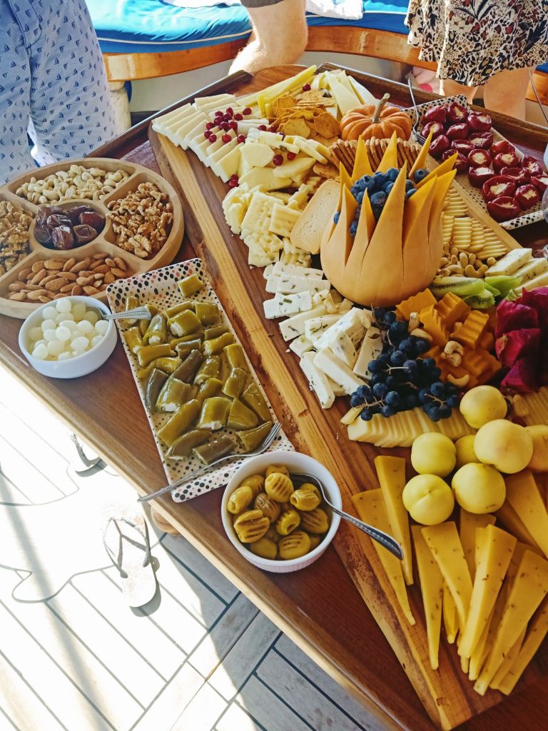 Gayle & Neil had wanted to book on to one of the Captain Boris’s Cheese & Wine boat trips and had tried to get a space before they arrived in Dalyan. Rebecca and Basrı had been fully booked but I’d asked them to let us know if they had any late availability. We were very lucky to get on the trip although the timings were cutting it a bit fine for me, to say the least, but I was determined not to miss it. On board there were no other people we knew but that was quite nice as it meant the 3 of us could relax and enjoy what would probably be our last night together. The boat trip departed at 2pm and was 5 hours of absolute bliss. There was so much cheese, meats, fruit, nuts, olives, jams, honey, gherkins, breads and crackers, as well as the wine now being included in the £50 price tag per person. We got talking to some of the other guests and everyone seemed lovely, especially after a few wines. We even got to see a gorgeous sunset before heading back to Dalyan around 7pm.