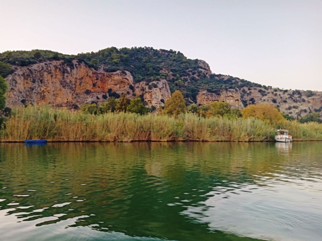 I felt like I was incredibly lucky on Friday 20th September as I said goodbye to the villa and got in the taxi, with Liz, to go to the port in Rhodes Town. In my bag, as the girls had insisted, was the bottle of red wine we didn’t drink and my leftover ham and mushroom calzone. My ferry back to Marmaris wasn’t until 9am but check-in rules are to be there an hour before. Liz had planned to explore the old town and wait for the other girls to get up and join her for the day. I took my sea sickness pill expecting that it could be as choppy going back as it was coming, and that was not doable for me without medication. Liz and I said our goodbyes and had the privilege of a couple of knights to see us off. It was an emotional goodbye and I had been so grateful for being able to spend time with Liz, Clare, Kelly and Louisa. We had laughed and talked so much and I even had more ideas for my book which they were all very supportive of. I felt I had a renewed energy and belief in myself that, although things were tough at the moment, I was going to be ok. The ferry left over 30 minutes late and there were no fresh sandwiches on this one so I had a peanut bar from my bag and a bag of salt & vinegar crisps with a cup of black tea. I wasn’t quite up to cracking open the wine and eating the calzone for breakfast as I didn’t think it would be too pleasant if I couldn’t keep it in. I fell asleep and woke up as we approached Marmaris, realising that I did not have very long to get my bus connection. The crossing had been relatively calm too so there were no sick bags out. The queue to get off the boat was long and I wasn’t at the front of the immigration queue. I got through and found that there was only 1 remaining taxi and jumped in it. I used my best Turkish to ask to go to the bus station and established it was 200 lira (£4.41) which turned out to be less than a 5 minute journey. I was so lucky to make the bus from Marmaris to Ortaca as it pulled out. It was a small dolmus type bus with only one seat remaining right at the back corner and it was hot and very full! I still had the ham and mushroom calzone which was now in the top of my rucksack as I tried not to offend any muslim passengers who might be getting a whiff of pork products. When I got to Ortaca there was no time to waste as the Dalyan bus was also in and about to set off so I squeezed on, also on the back seat. I made it back to Dalyan just in time to drop my laptop and bag at Gayle & Neil’s and grab my travel towel and swimmers because we were off on one of my favourite things to do in an afternoon.