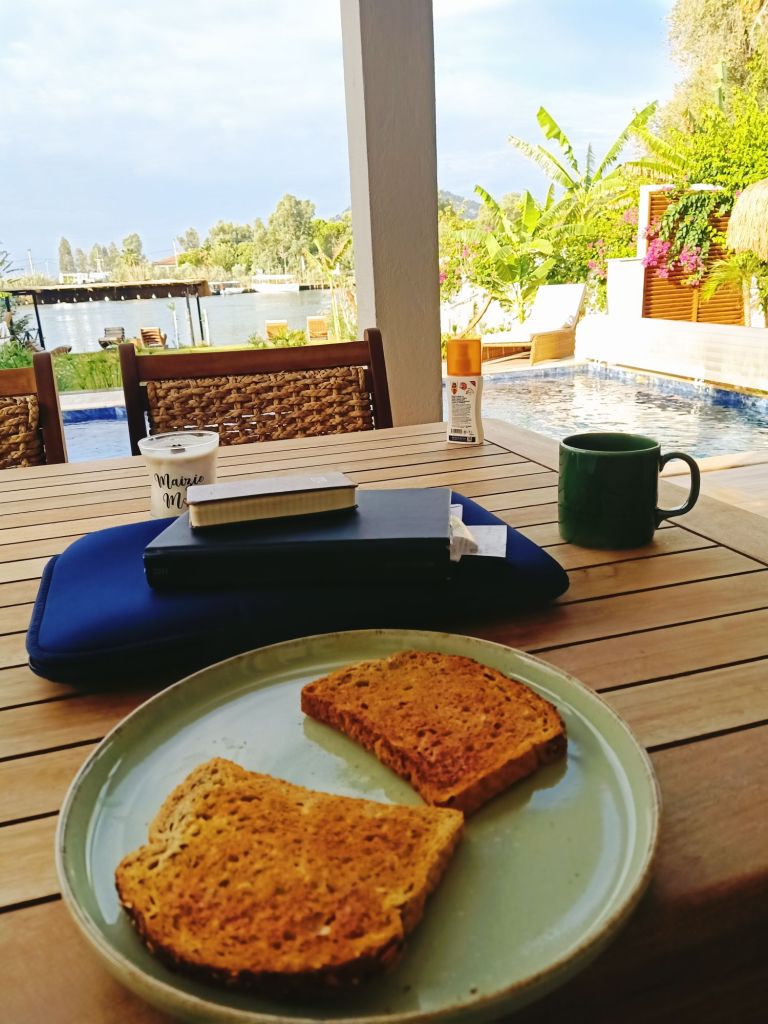 I helped myself to a delightful sage tea on the morning of Tuesday 24th September after feeding Norman, Edna, Coco & Bebe who were all just so cute. I was outside before the sunrise and it was really lovely to enjoy the river views at Julia’s while the dogs had a good sniff about in the garden. I’d not heard from my parents yet, but they arrived in Dalaman about 12.30am and were probably sleeping. I did finally hear from Captain Caveman and he gave me a call from The Villas in Phong Nha, where he had popped in for an early lunch. I told him I got the residency, he was pleased that I had got the result I needed. He was a bit distracted, though, as he was planning his leaving party for tonight at the floating restaurant on the Son River. It would be at 5.30pm Vietnamese time, so 1.30pm Turkish time. I told him I had some wine left so I would do a video call to join the party and do a cheers with him and everyone to commemorate leaving Oxalis. I also messaged Tatas to say I would do this and to ask her to ring me to facilitate – she agreed. I finally got some breakfast down and noticed a great tip if you’re trying not to eat too much; all 4 dogs were always the other side of the fridge door when I opened it, or if the toaster was in use they would wait for a little morsel. They looked at me with those puppy dog eyes every time I opened that fridge door as if to ask what I was eating (again)! I sat some more outside and ate some plums. After breakfast, while the dogs napped, I did some preparation for a course I was starting this afternoon. It was a free course on Planner Ideation with Claire Clarke, who has a business producing planners, journals and such like to enhance businesses. I thought this would be a good idea for the future if I decided to set up my own business. I was very much sure that I would be going back in to the travel industry in some way and I just needed to figure it out.